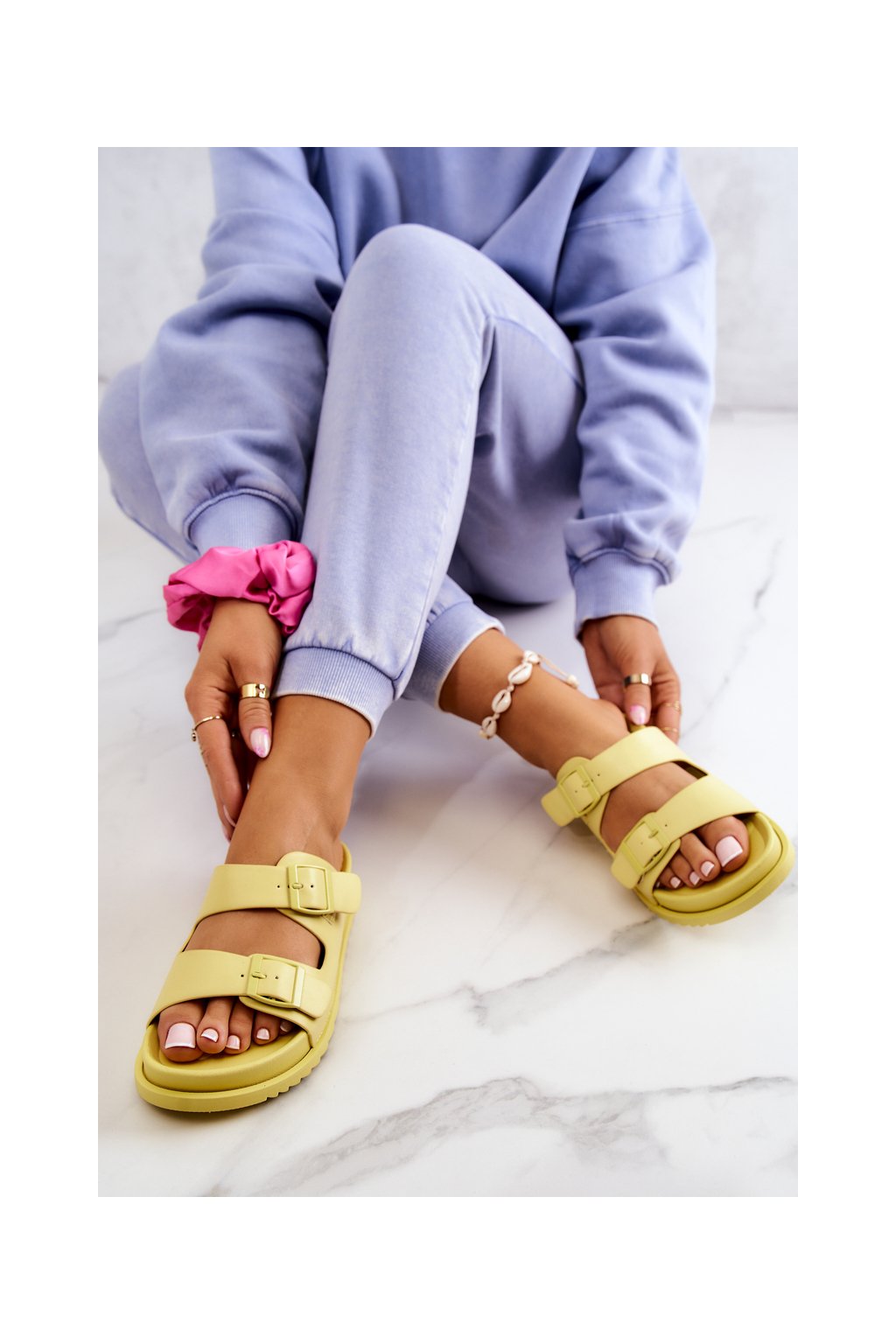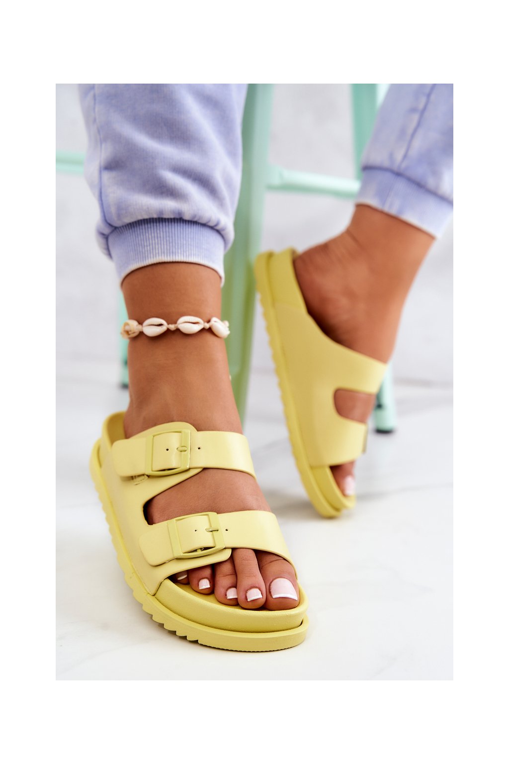 Zlaté dámske šľapky na plošej podrážke HY87-17A YELLOW