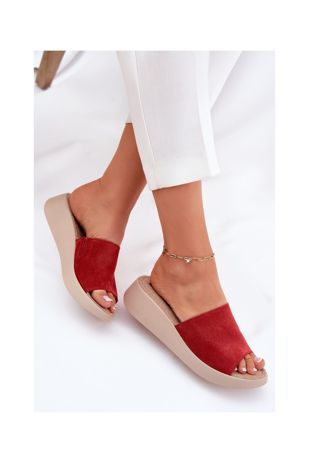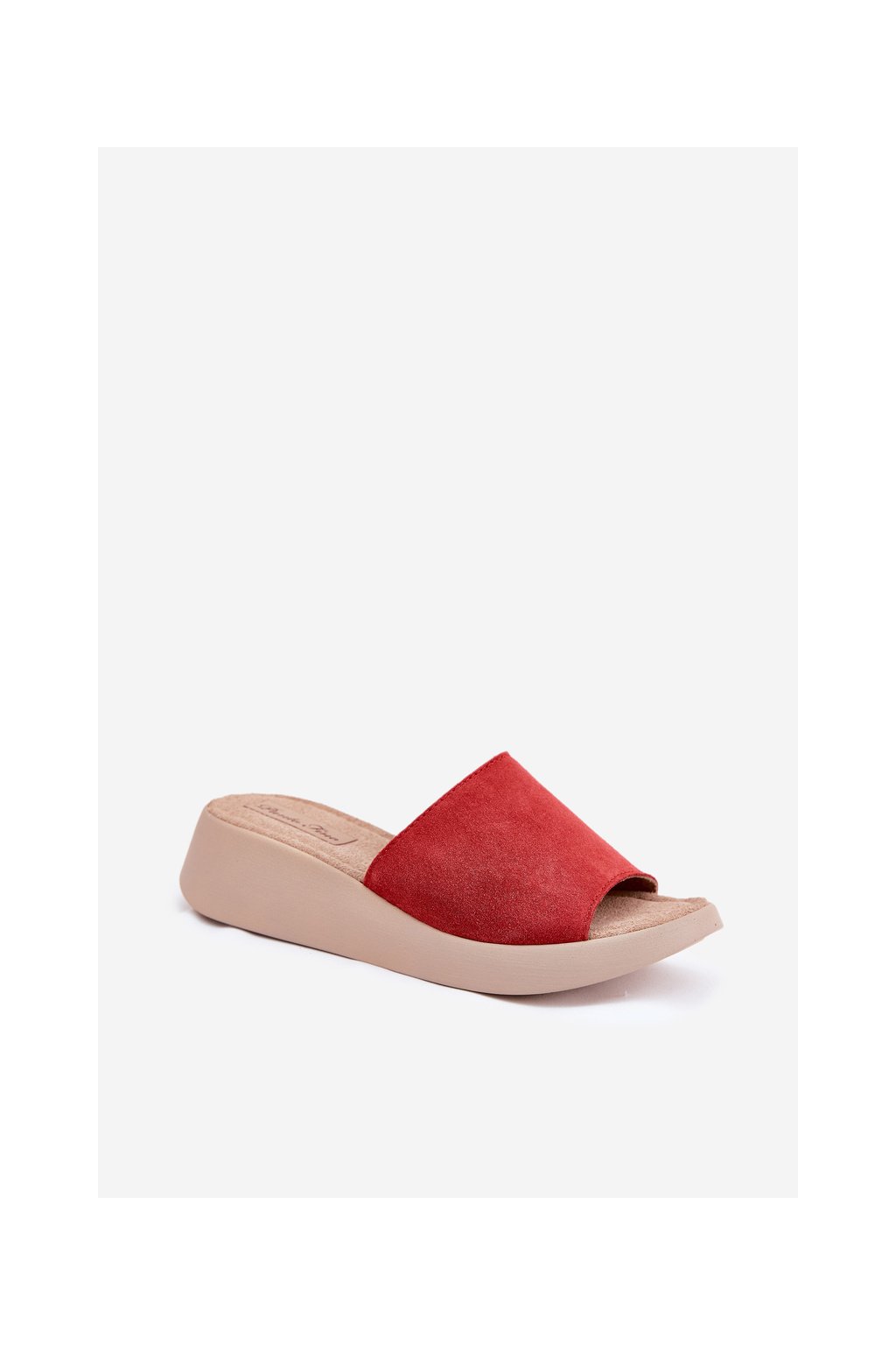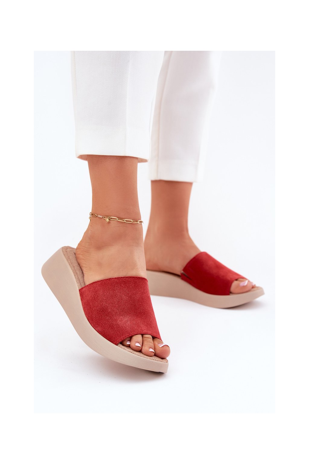 Červené dámske semišové šľapky na platforme s rovnou podrážkou, kód produktu RR267040