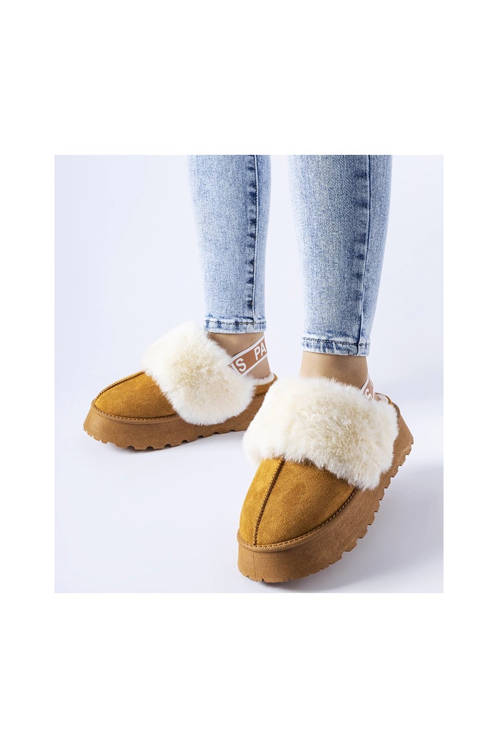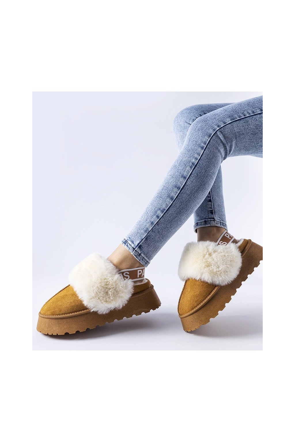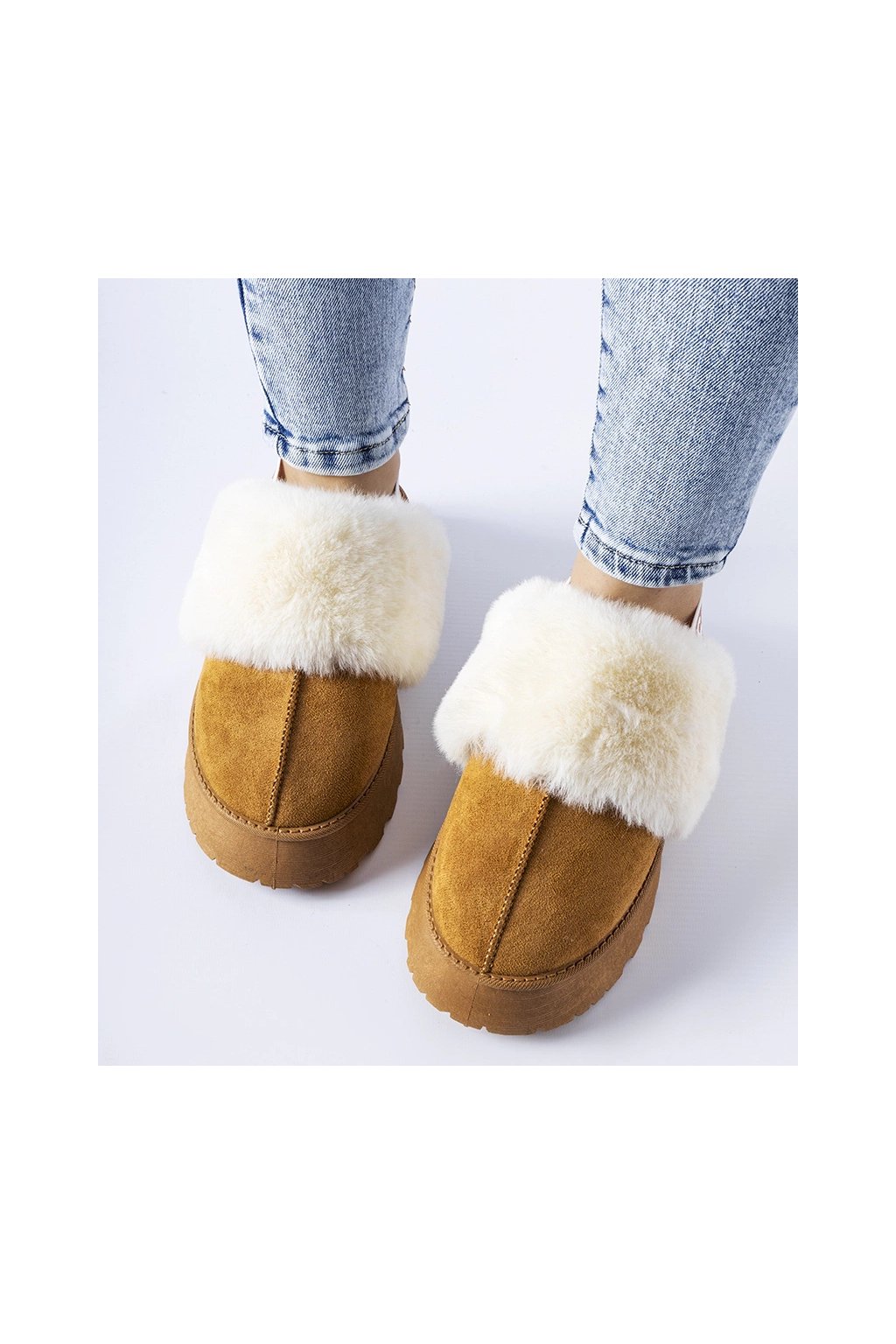Hnedé dámske šľapky s futerkom, kód produktu QZ23312 - GM