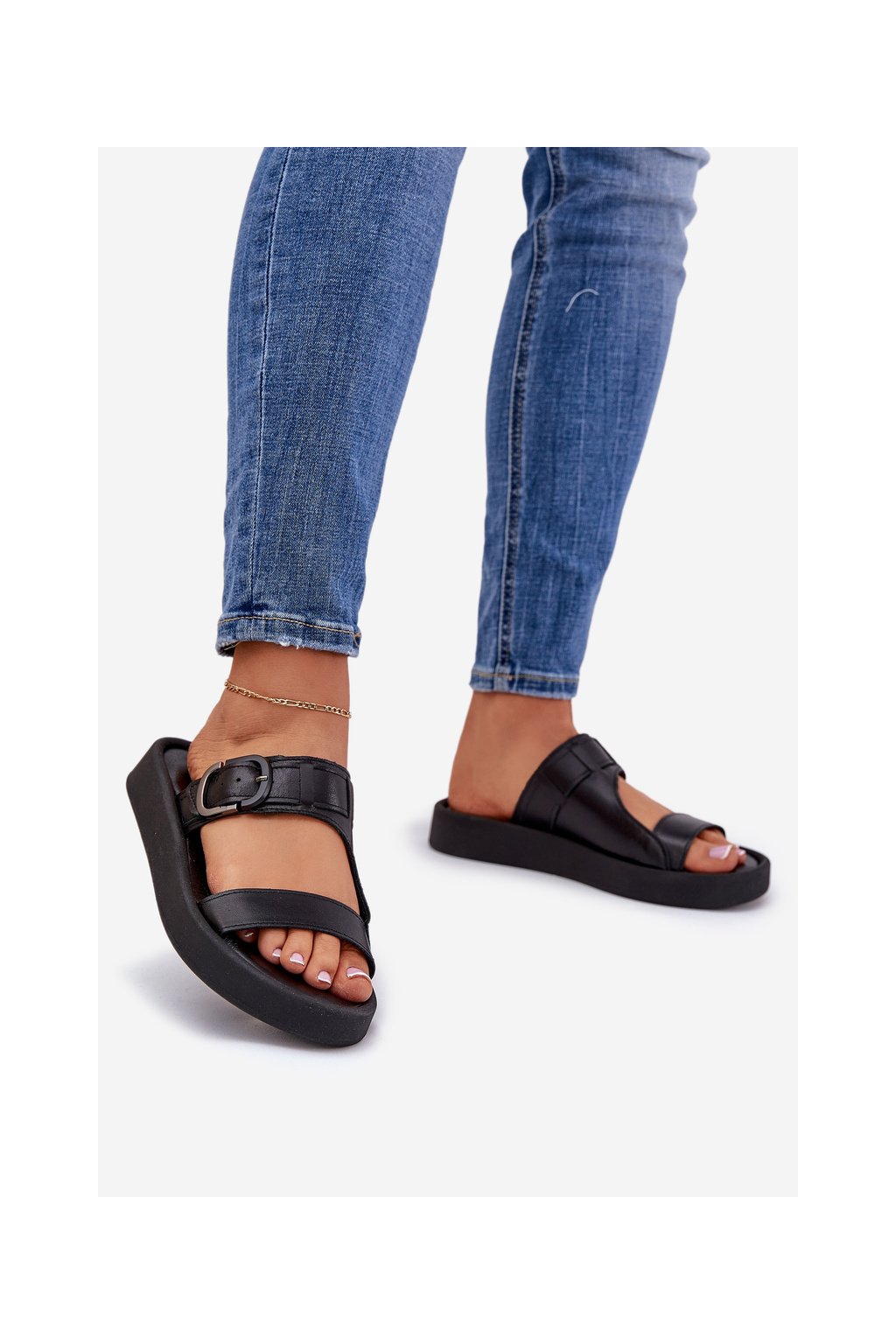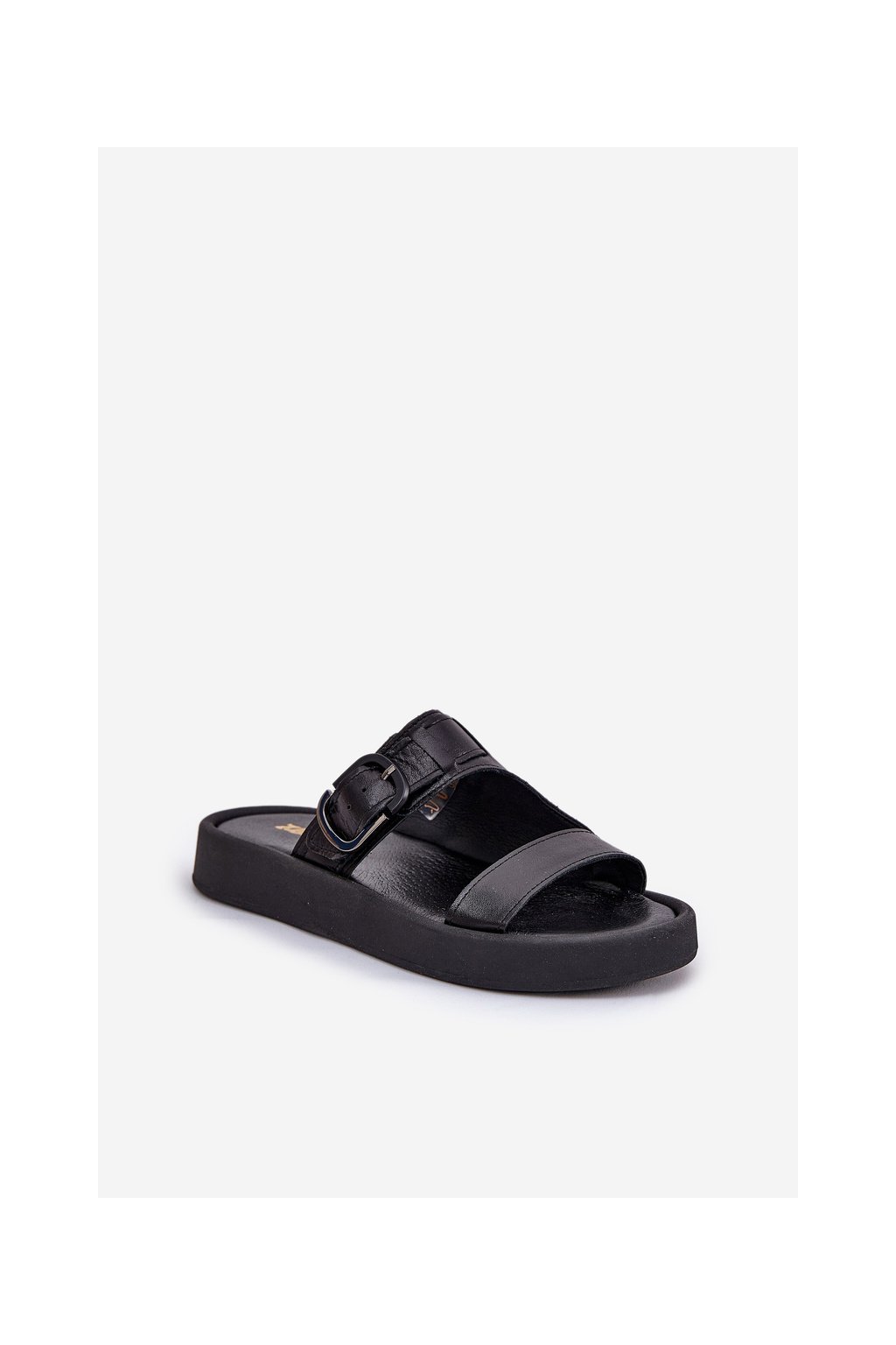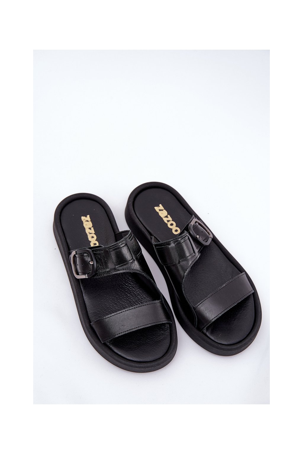 Čierne dámske kožené šľapky na plošej platforme Zazoo 3024