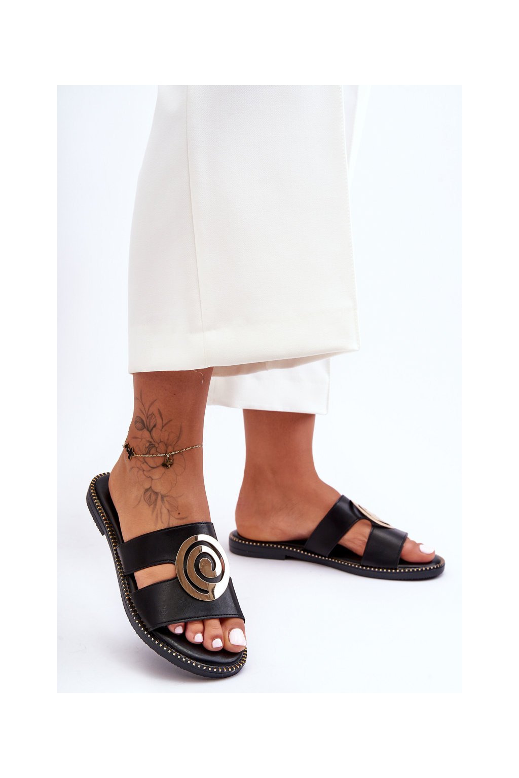 Módní papuče s lesklou ozdobou čierne deep breath / ML269 BLACK