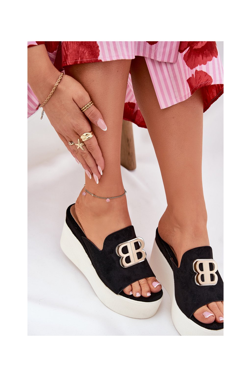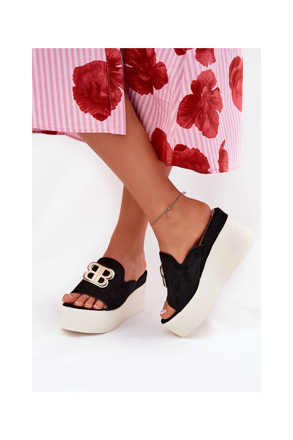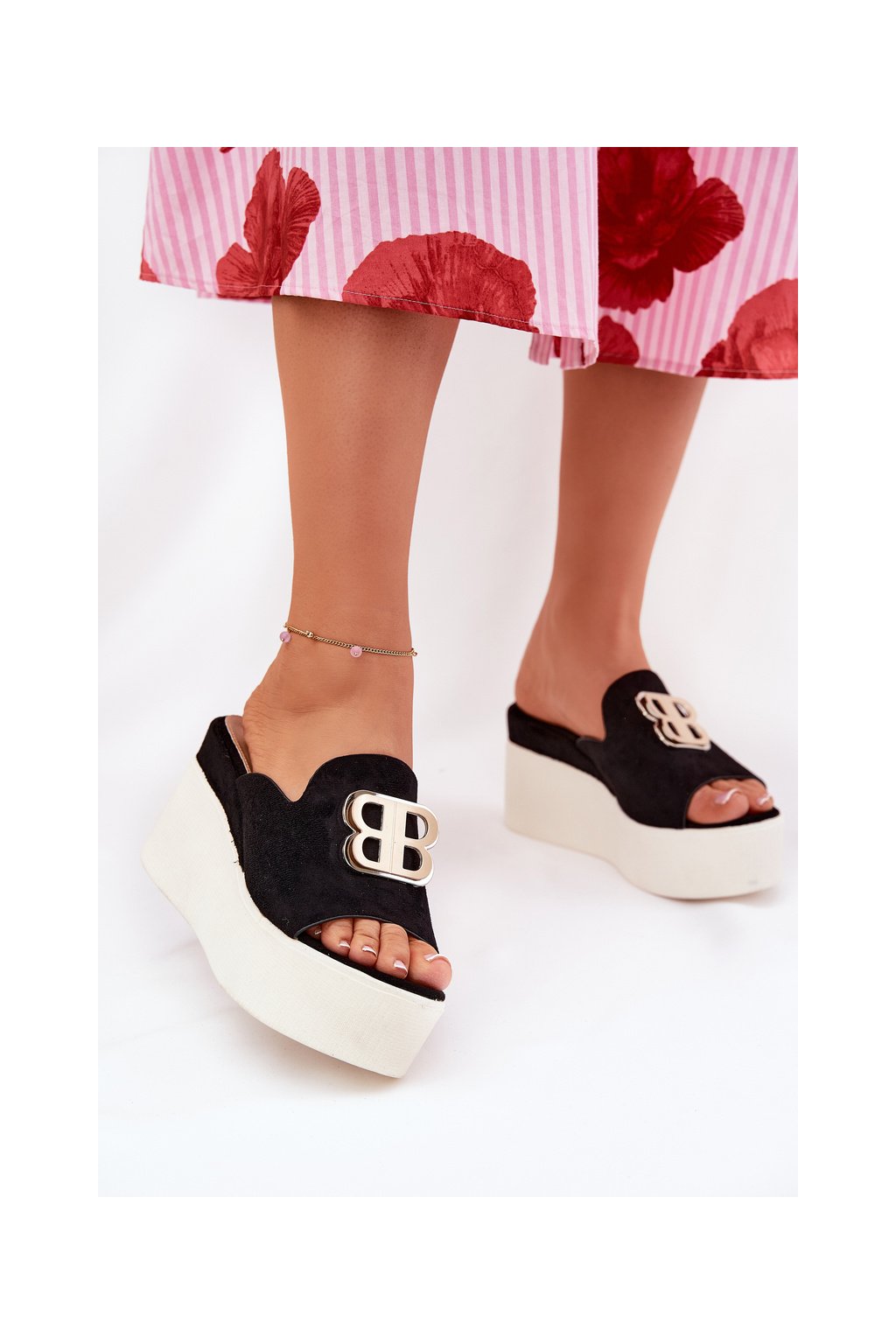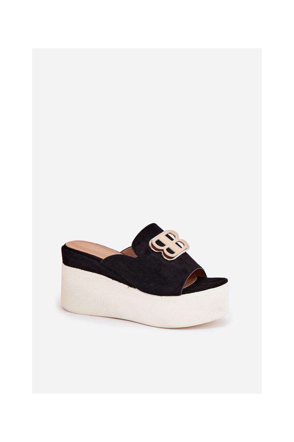 Čierne dámske papuče z EKO semišu na platforme a klínku, kód produktu 2283 BLACK