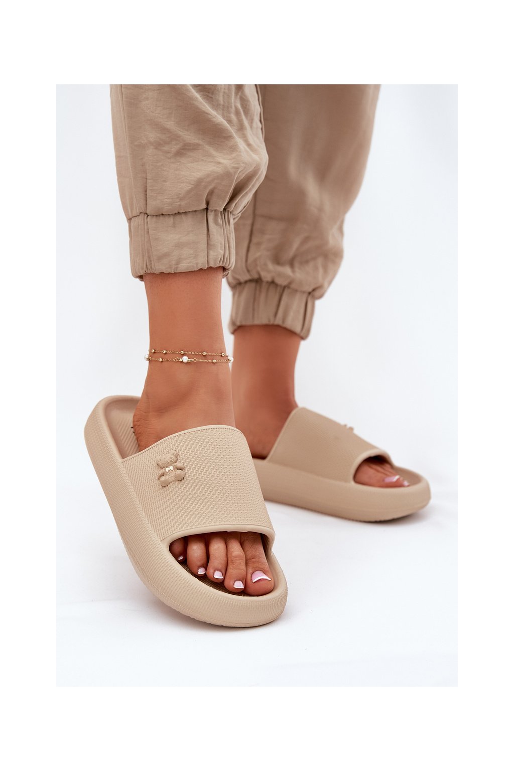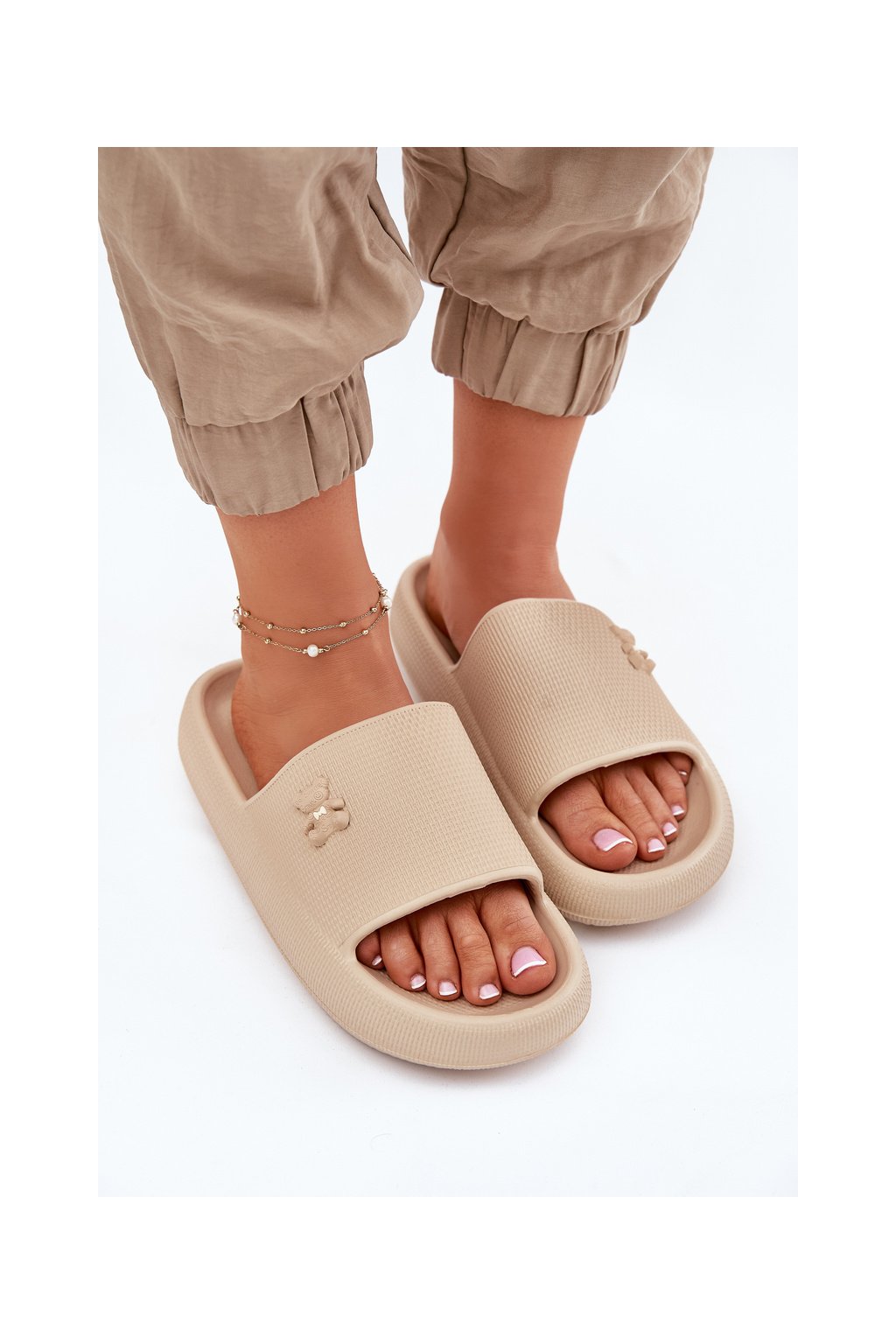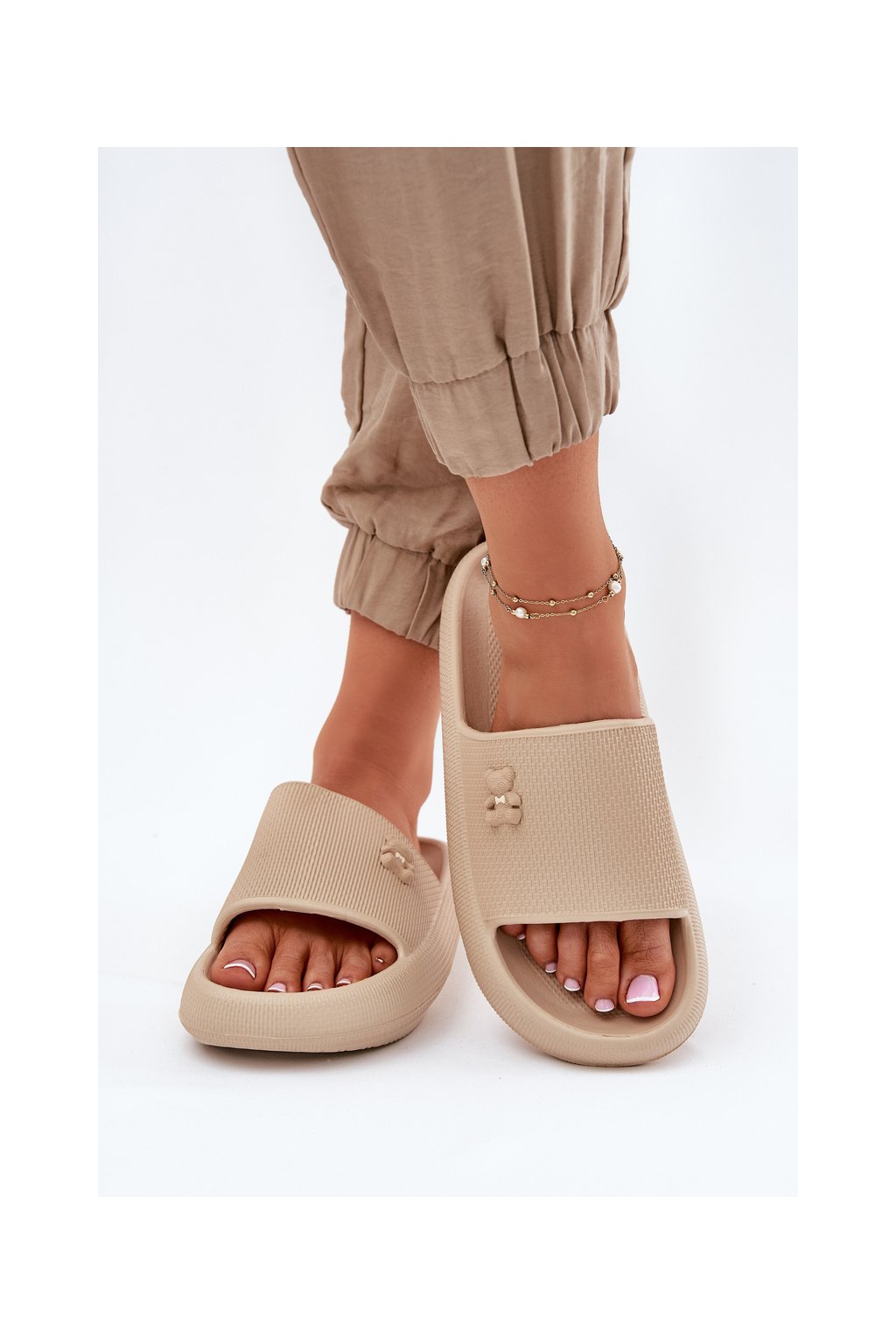 Béžové dámske penové sandále na platforme s medvedíkom, kód produktu 75210 BEŻOWY