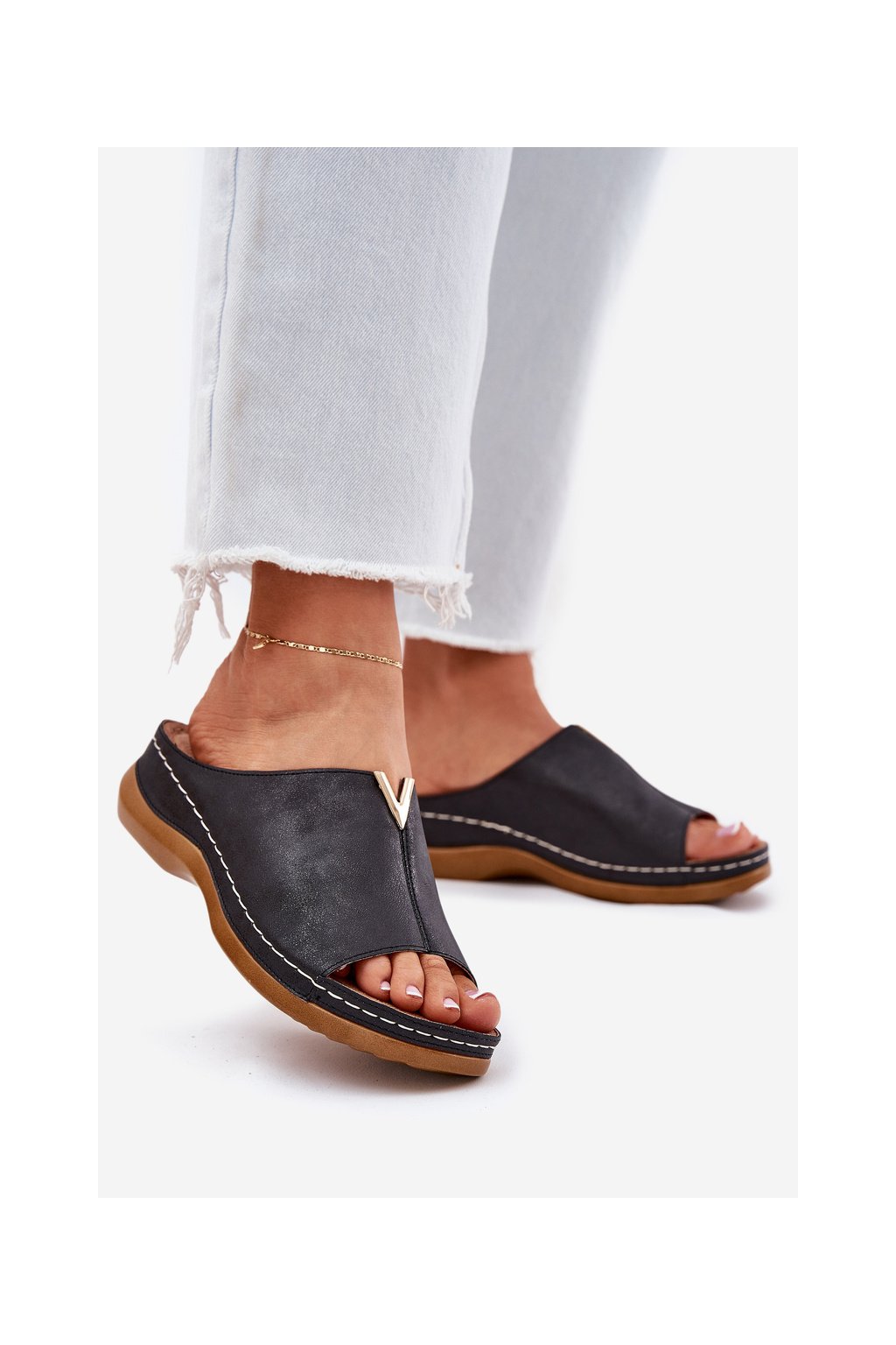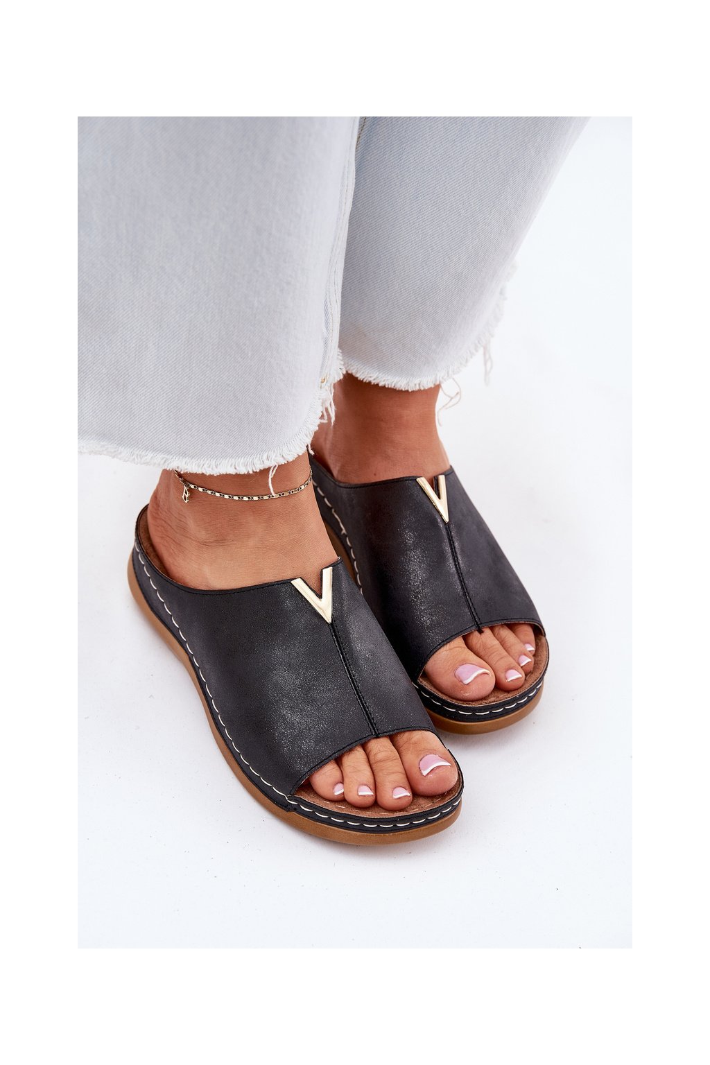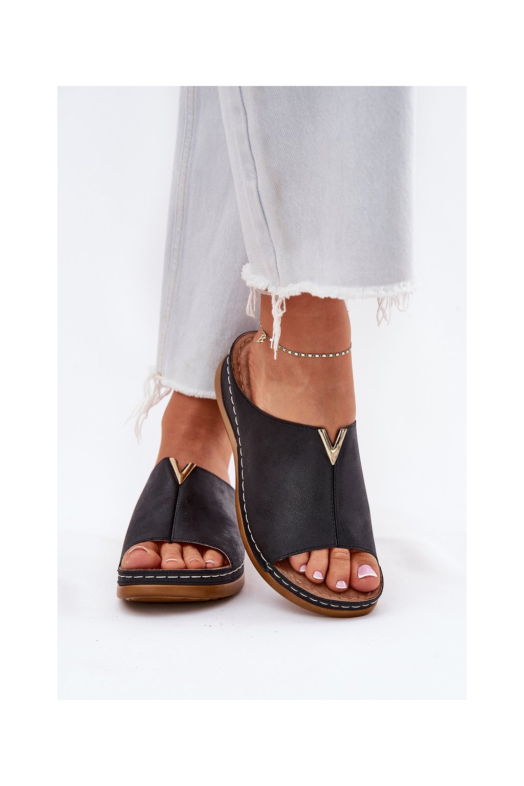 Čierne dámske papuče na platforme s klínkom z eko kože, kód produktu 25SD98-8996 BLACK