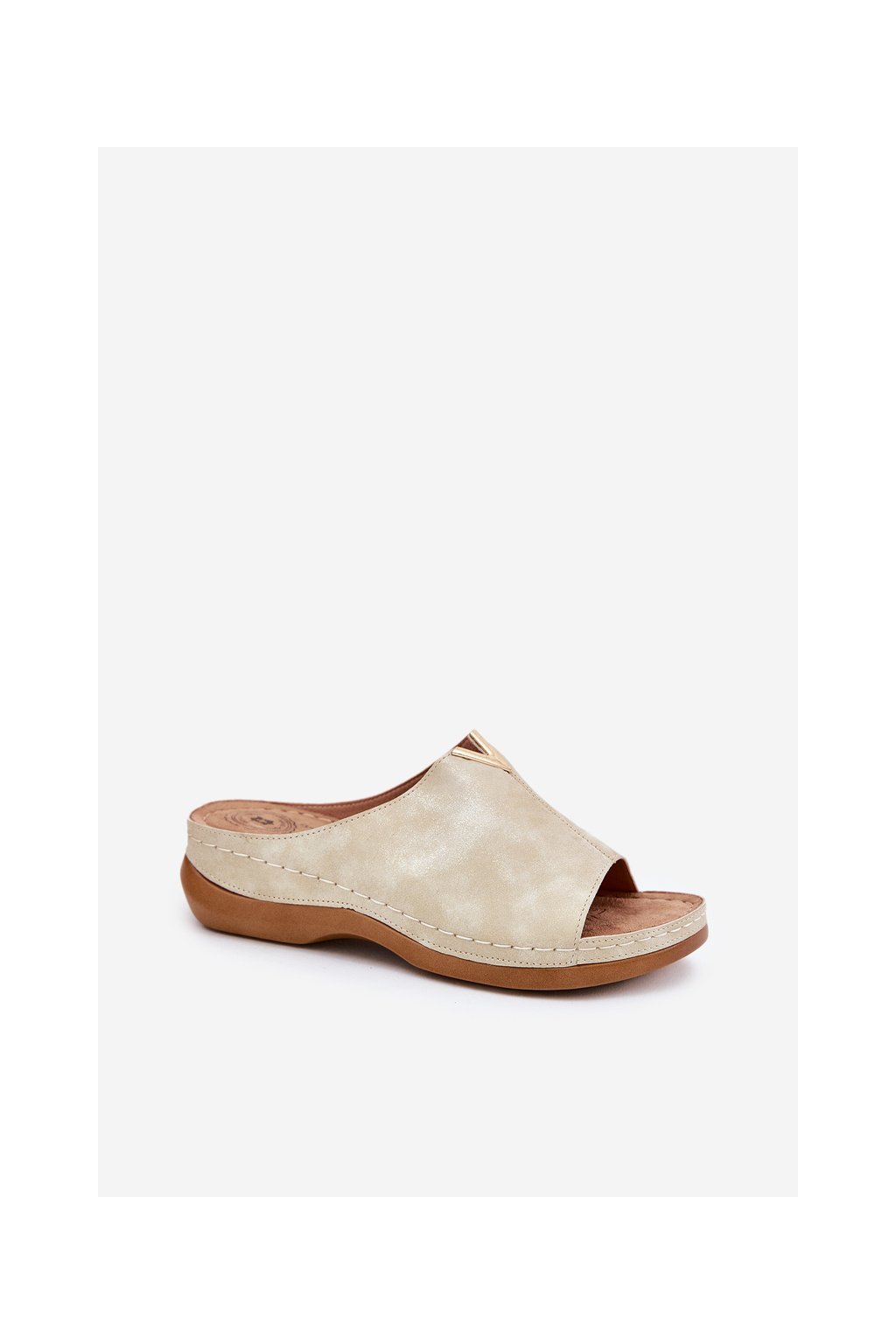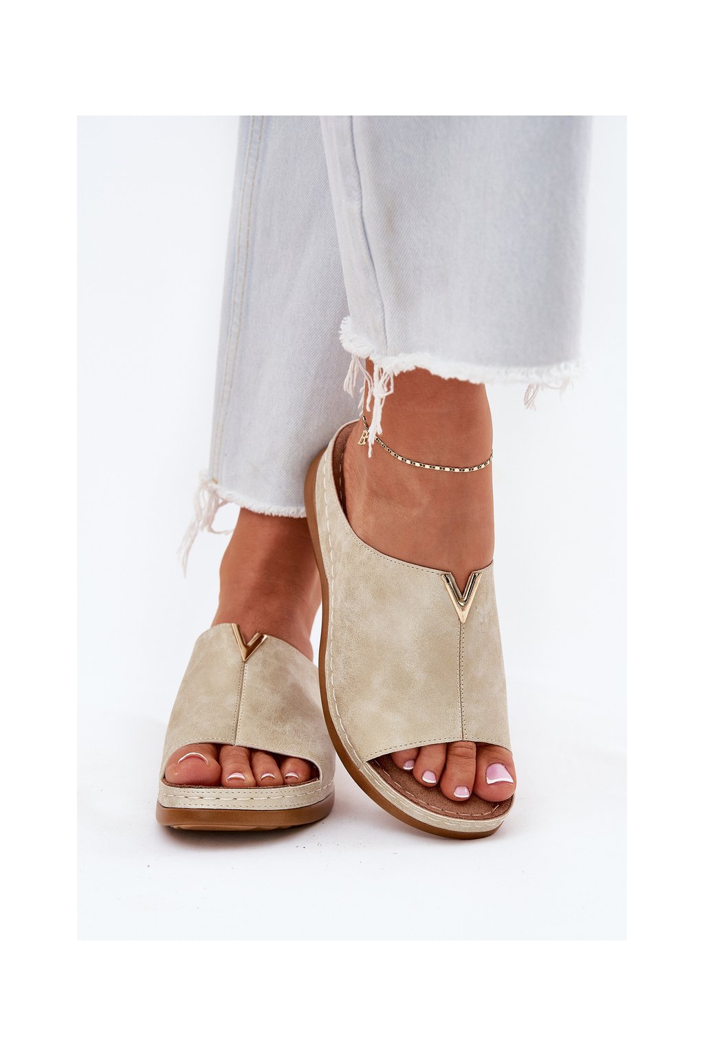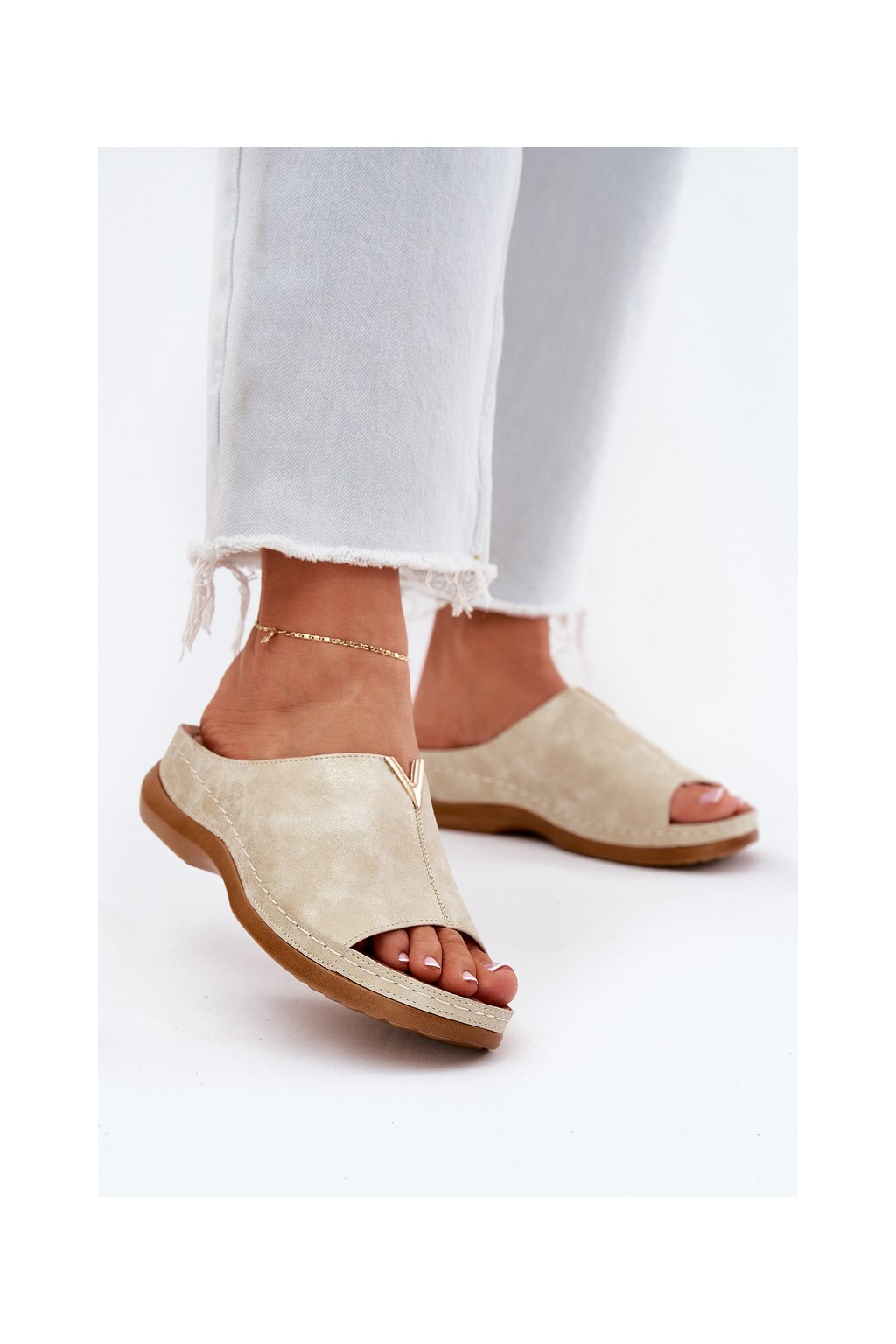 Zlaté dámske šľapky z eko kože na platforme s rovnou podrážkou, kód produktu 25SD98-8996 GOLD