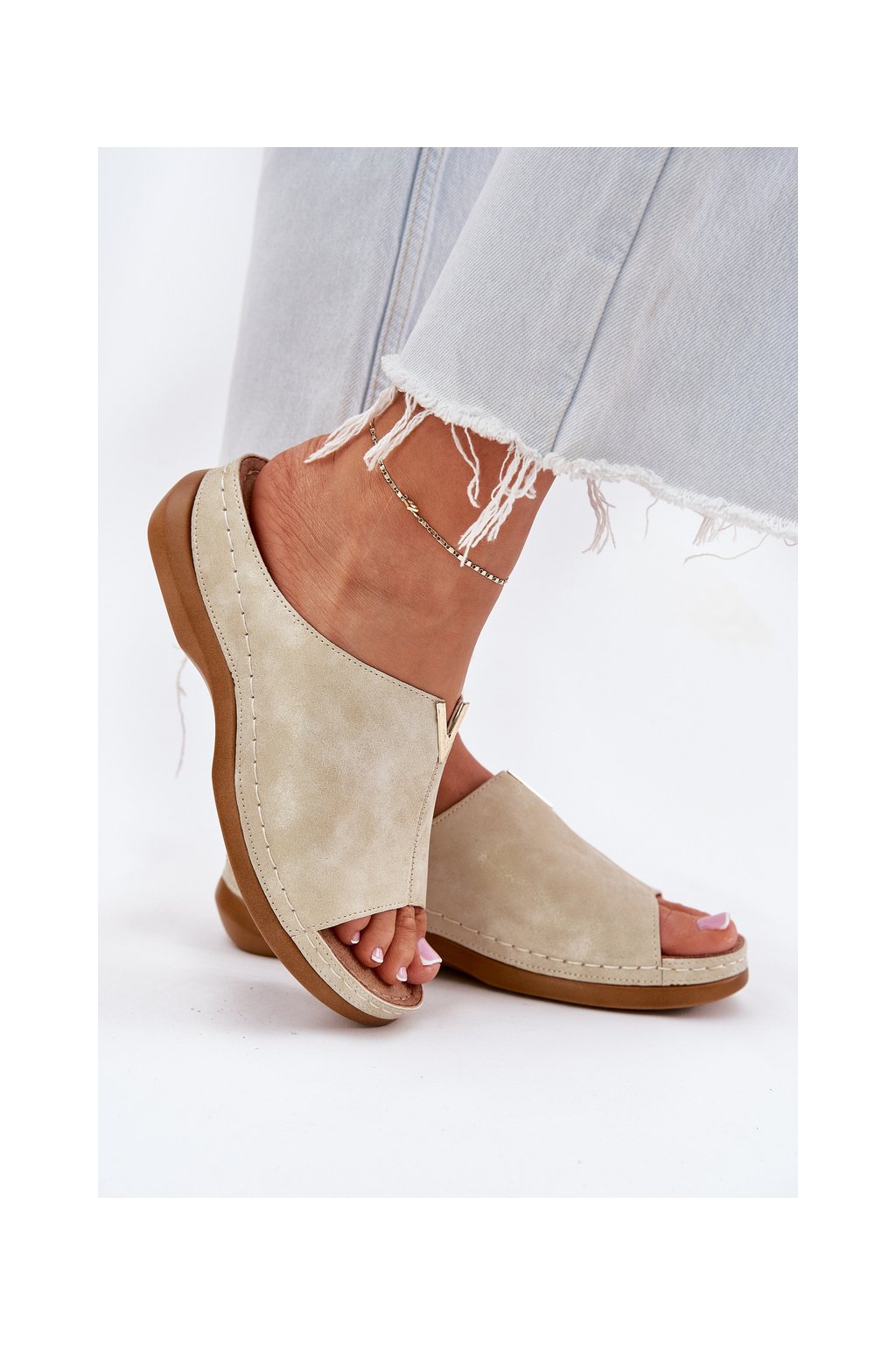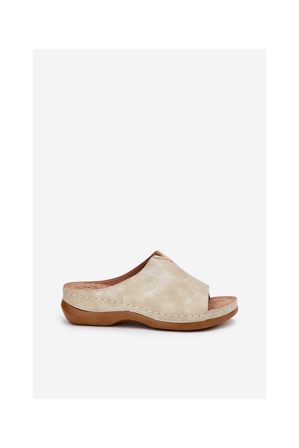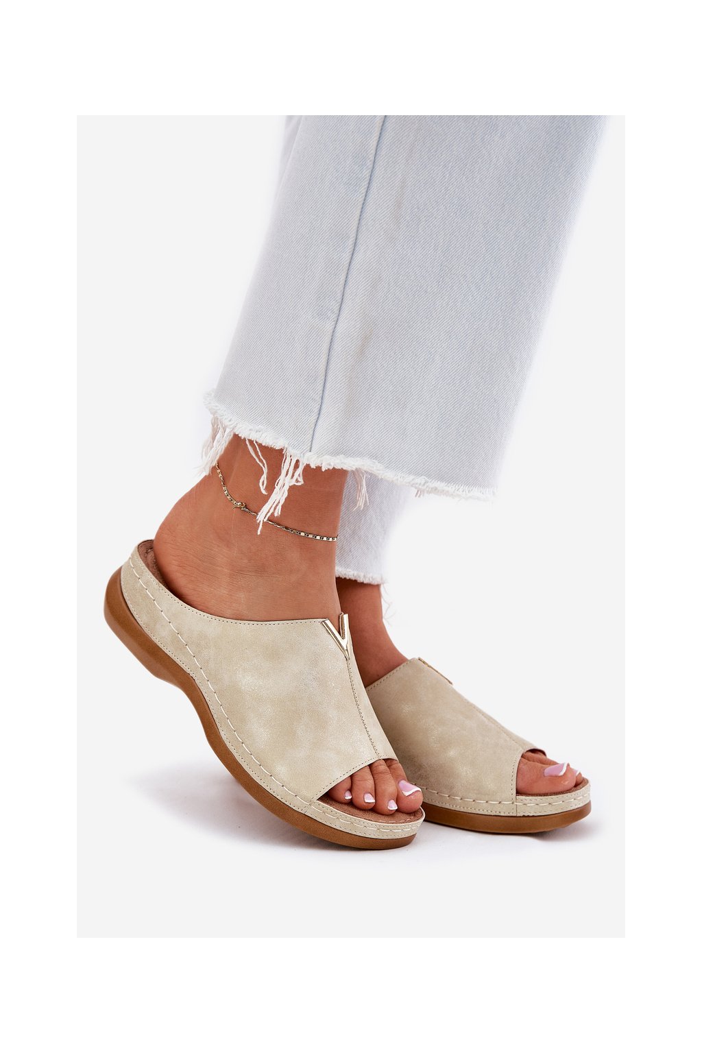 Zlaté dámske šľapky z eko kože na platforme s rovnou podrážkou, kód produktu 25SD98-8996 GOLD