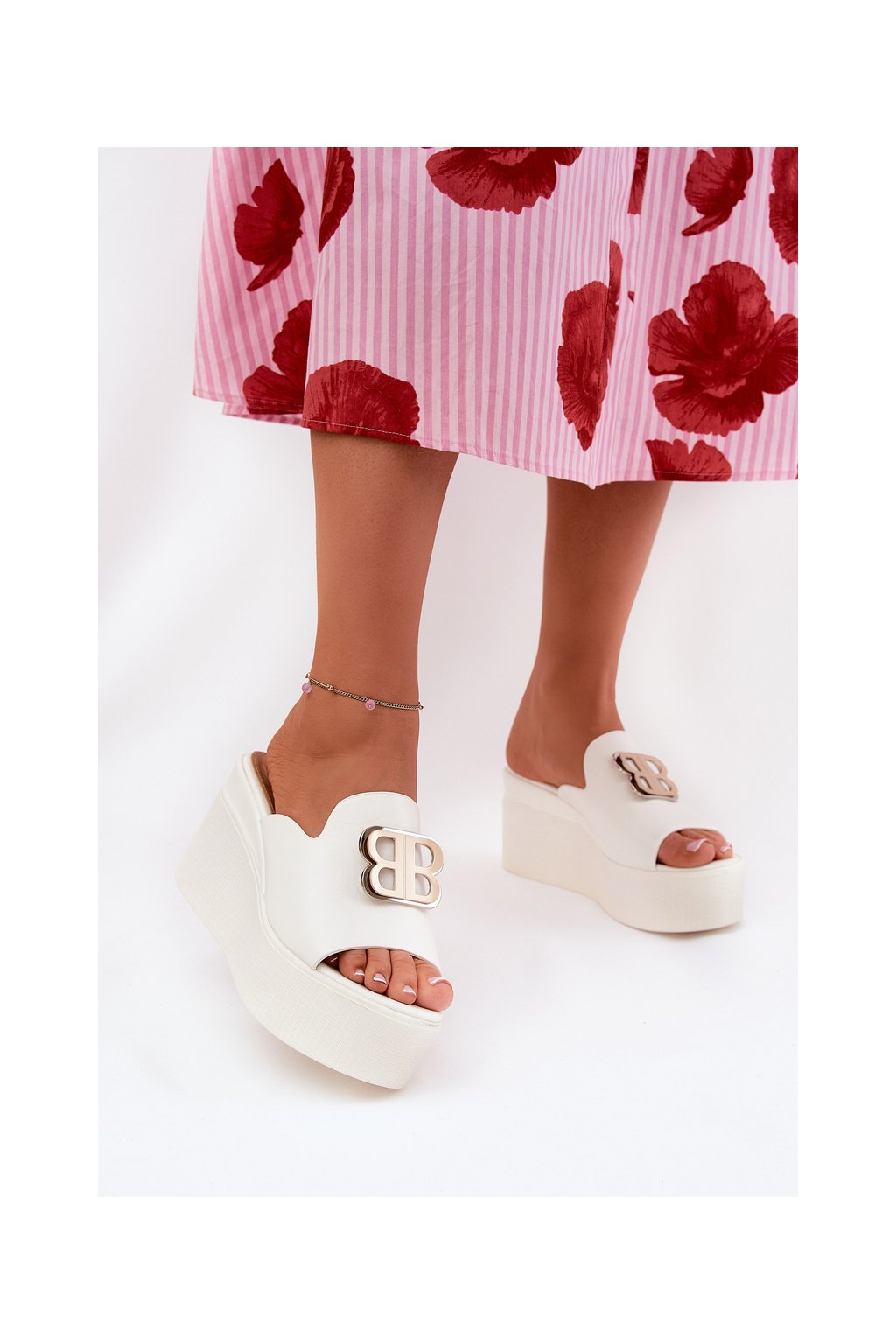 Dámske papuče na platforme a klinovom podpätku, biele, 2283 WHITE