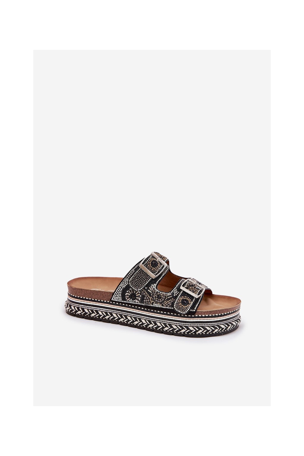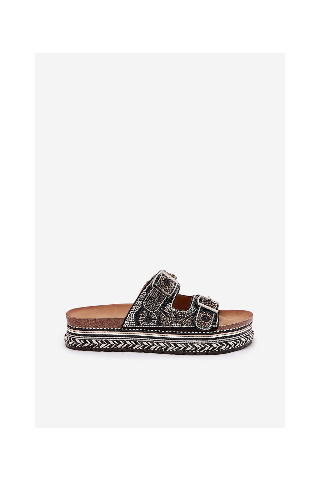 Sandále so zdobením a sponami na platforme čierne mellene / W249 BLACK (Veľkosť 36)