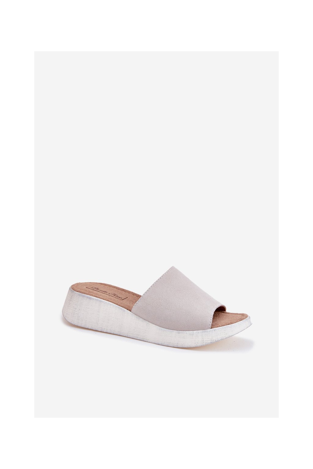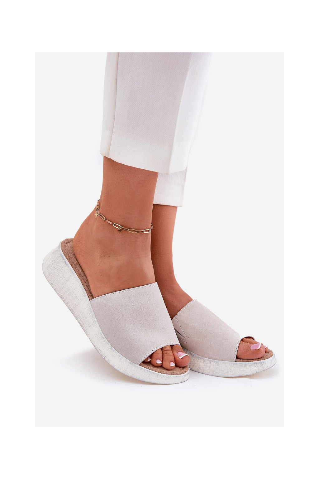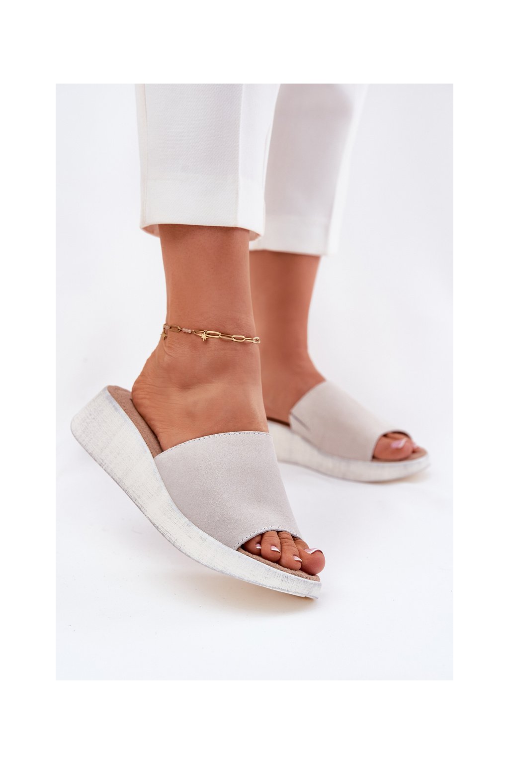 Sivé dámske semišové šľapky na platforme s klínkom, prírodná koža, kód produktu RR267044