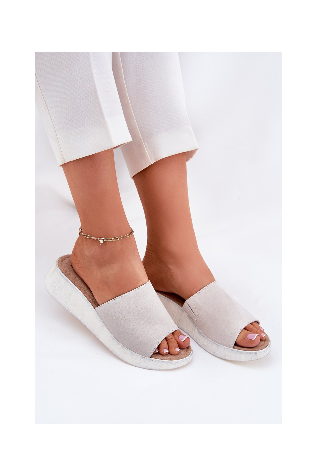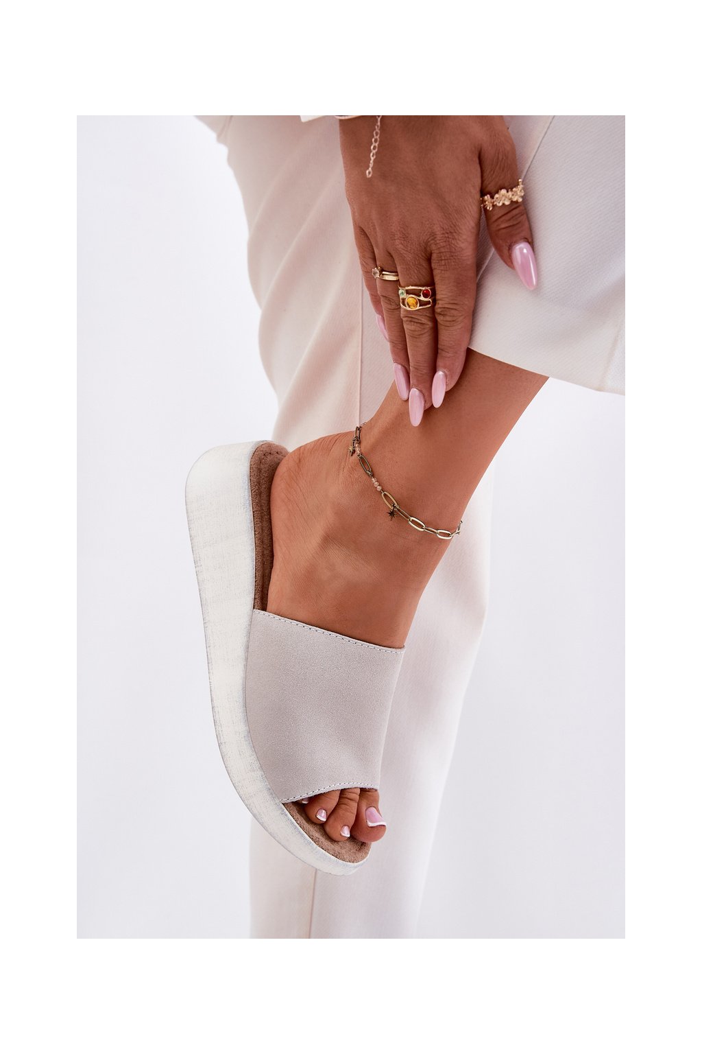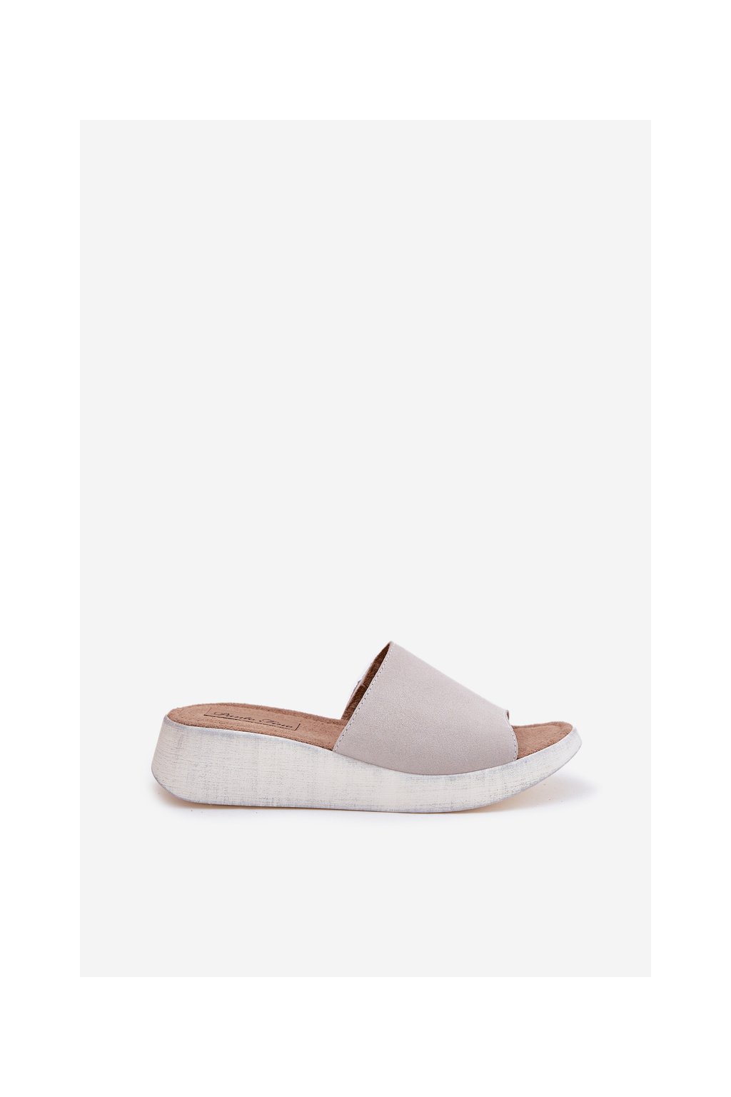 Sivé dámske semišové šľapky na platforme s klínkom, prírodná koža, kód produktu RR267044