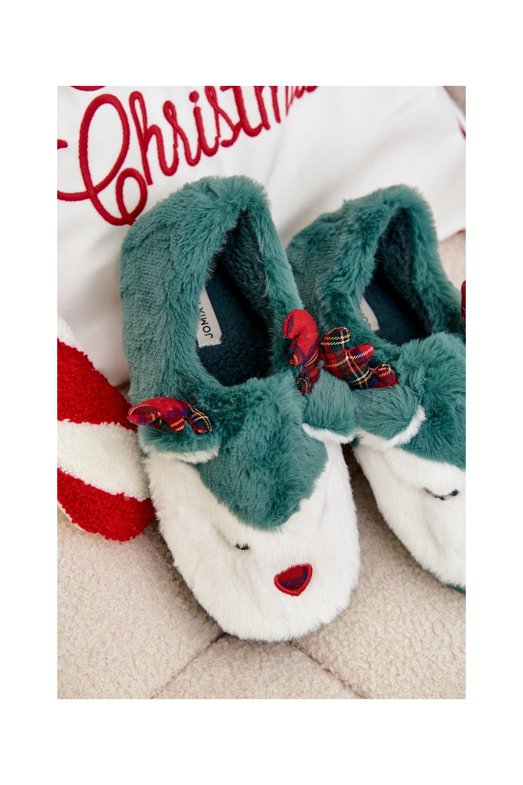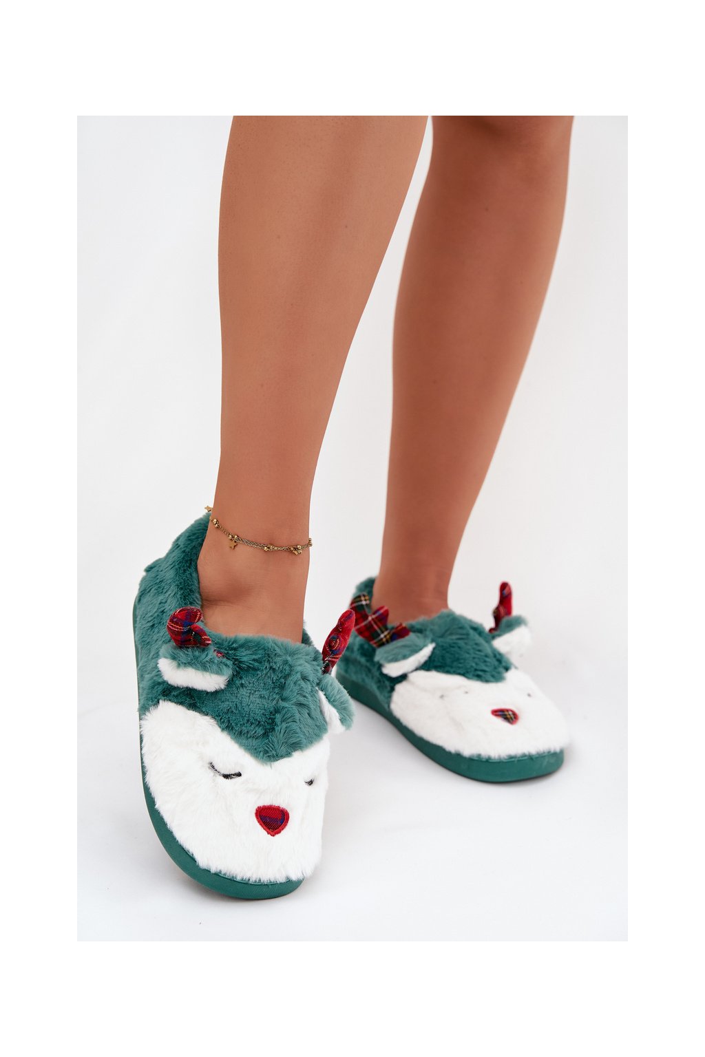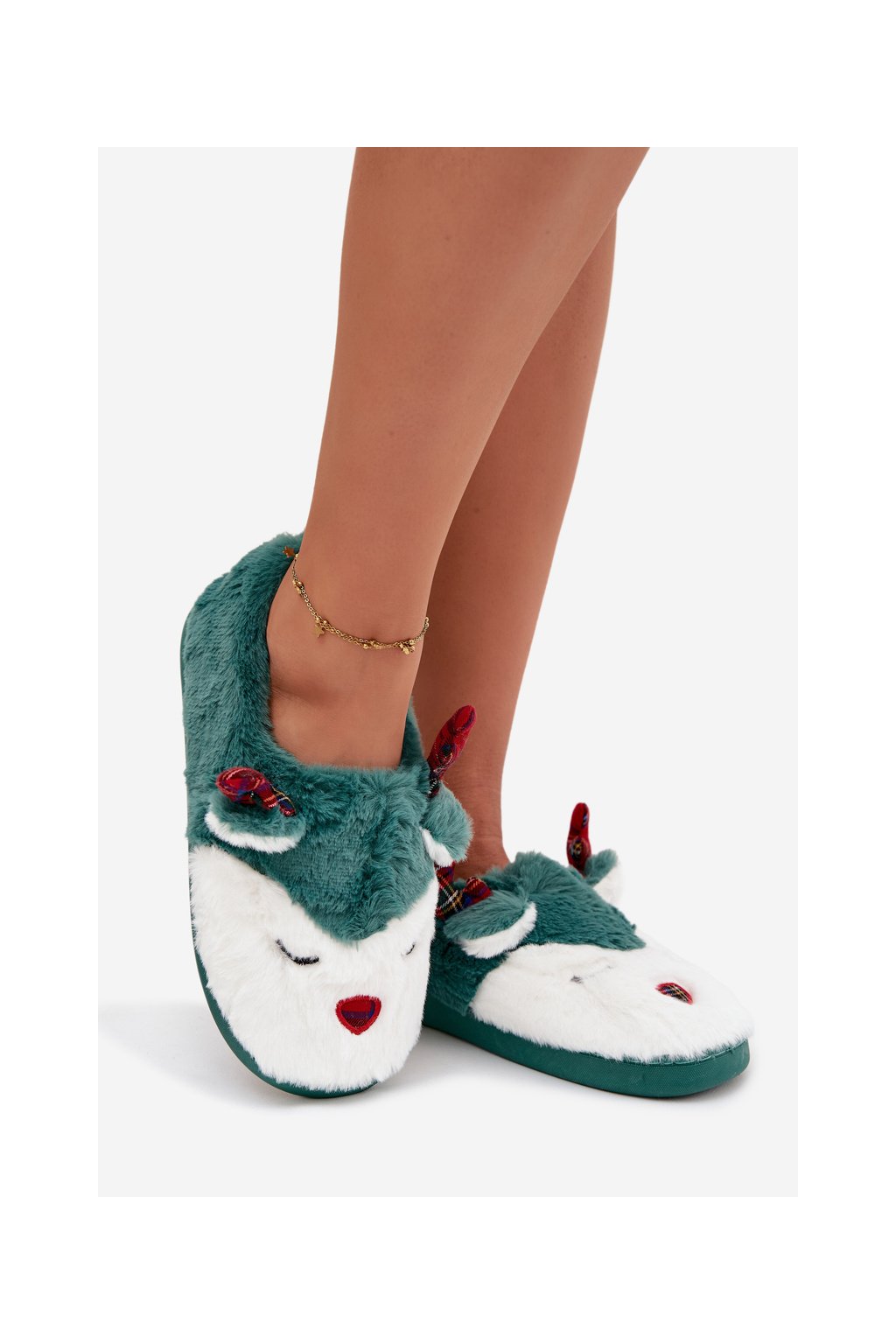 Vánoční Dámske papuče s motivem soba kožené zelené orsella / MD9693 D.GREEN