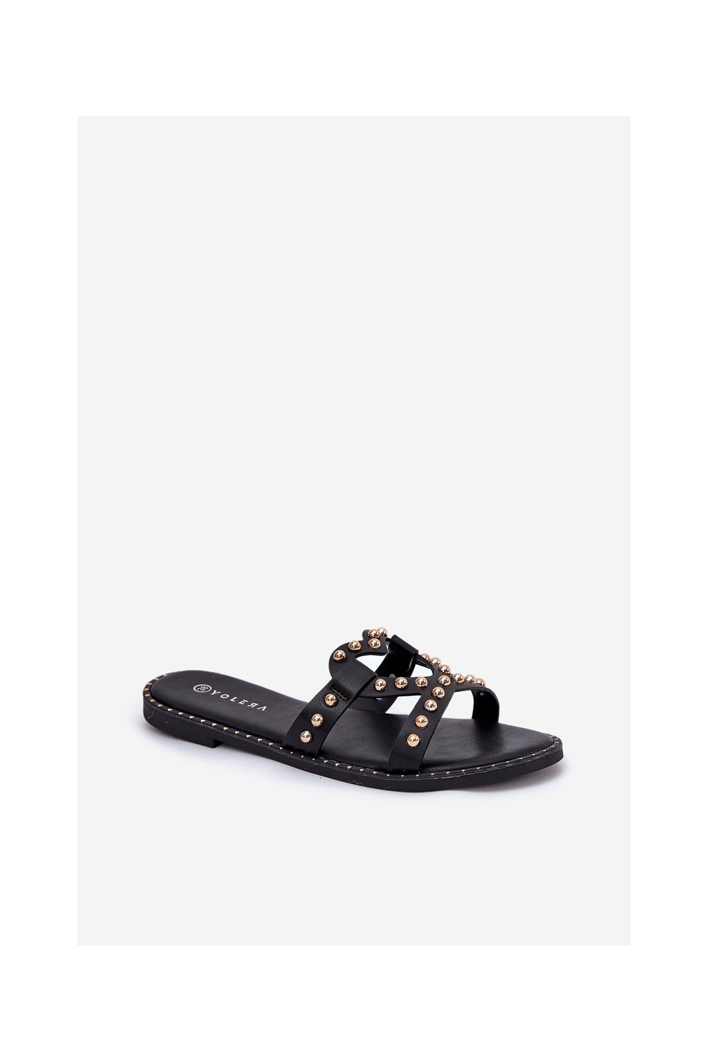 Čierne dámske elegantné šľapky z ekokože na rovnej podrážke, pohodlné letné žabky, kód produktu GH5173-1 BLACK