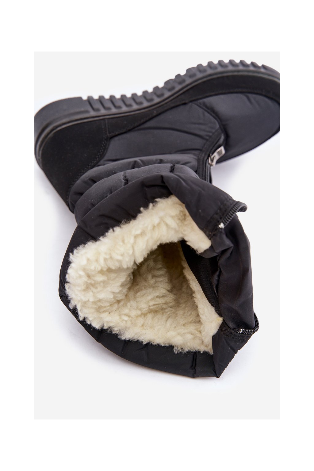 Čierne dámske zateplené snehule s hrubou kožušinkou na rovnej podrážke, kód produktu PROGJ-24-149
