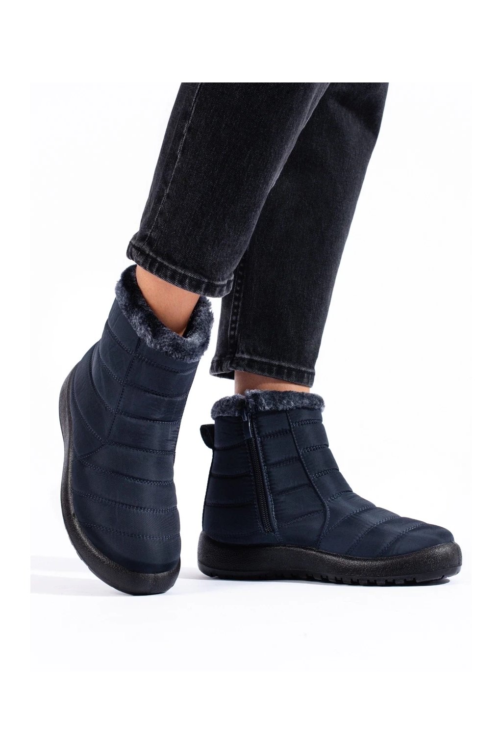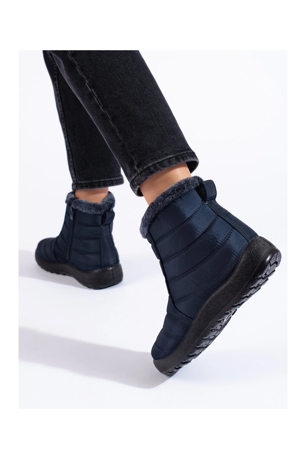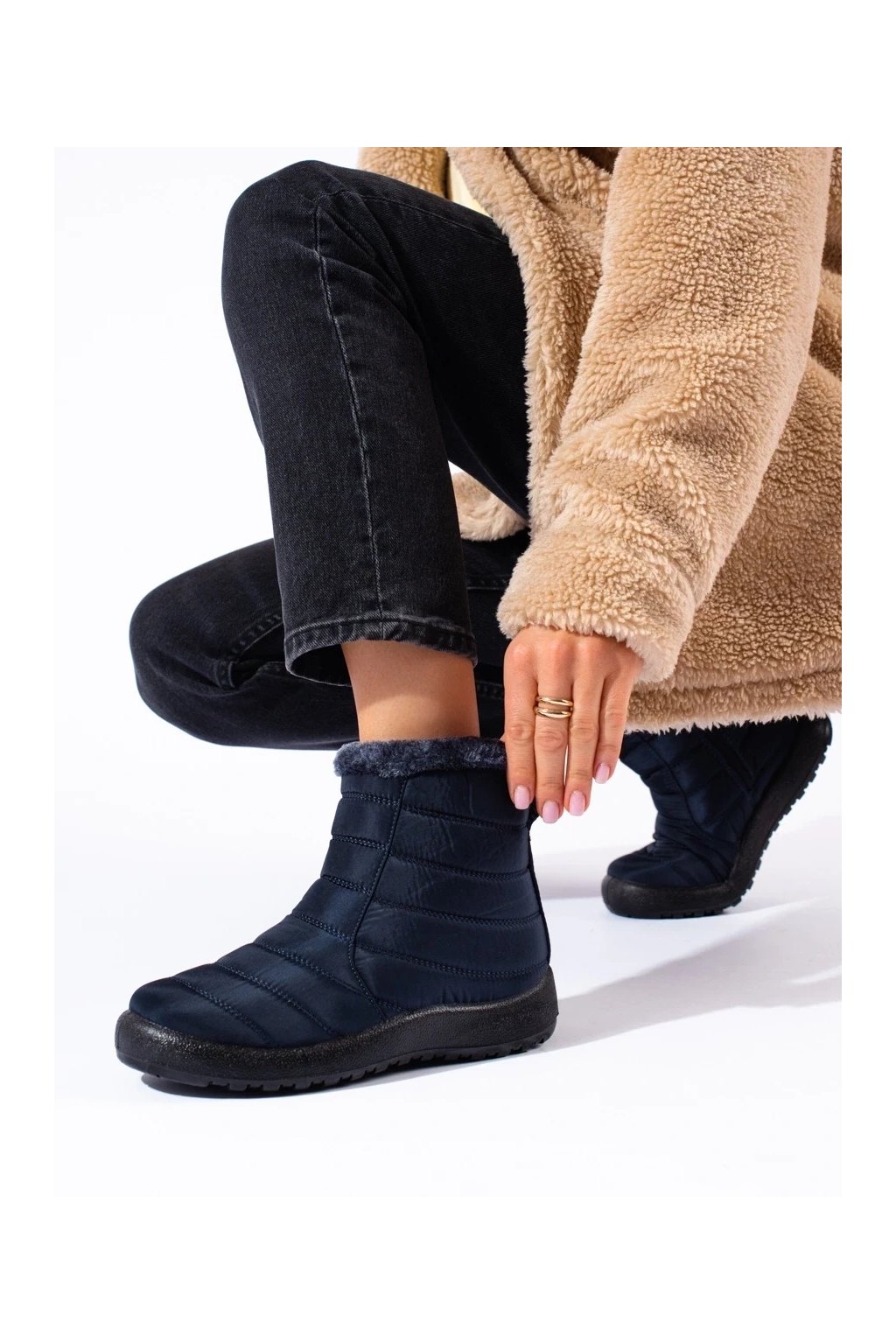 Dámske modré tekstylné snehule na platforme W. Potocki 23-33069N