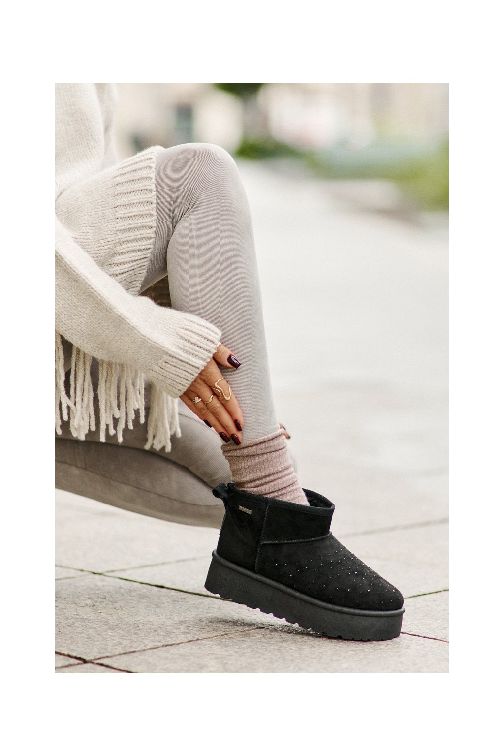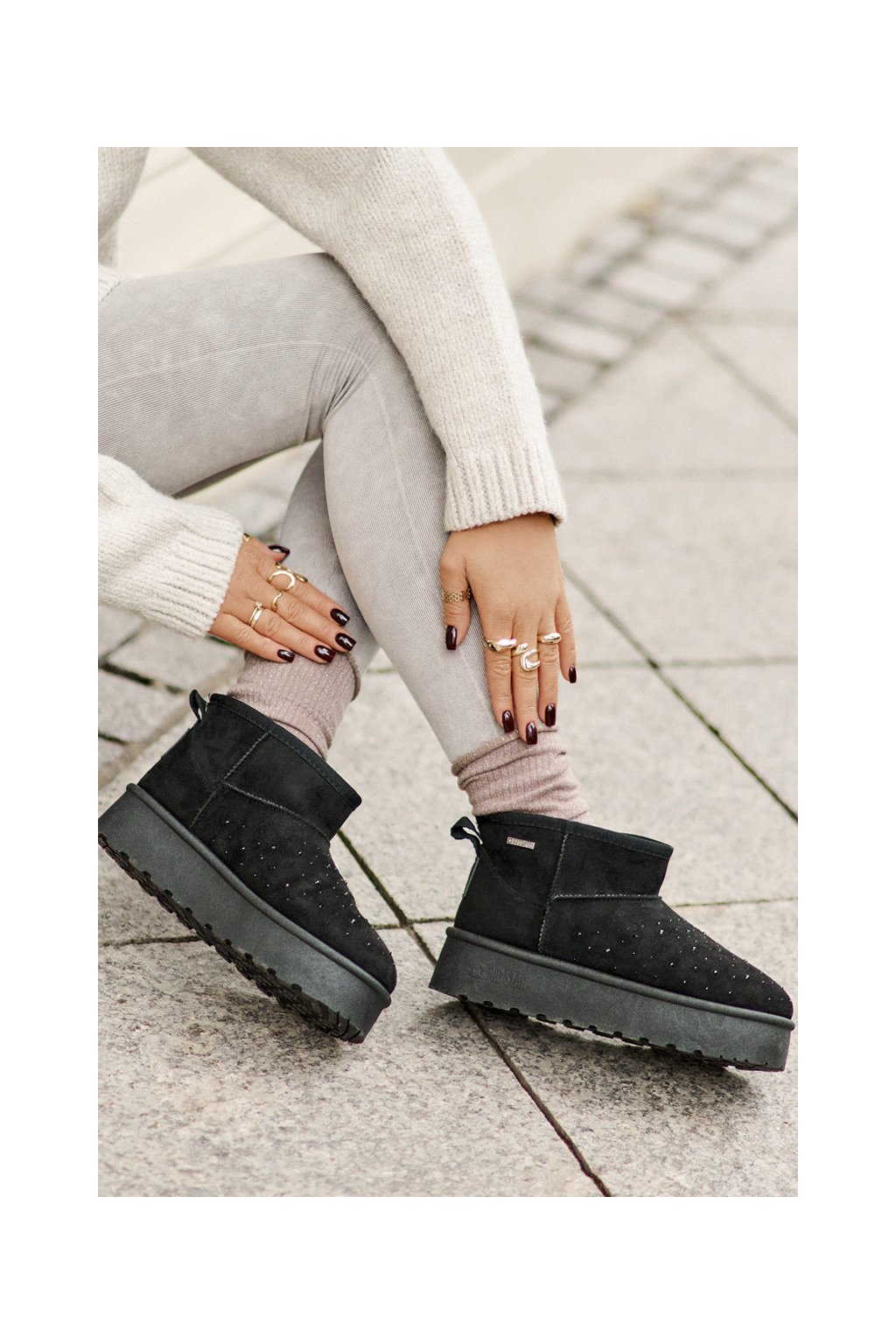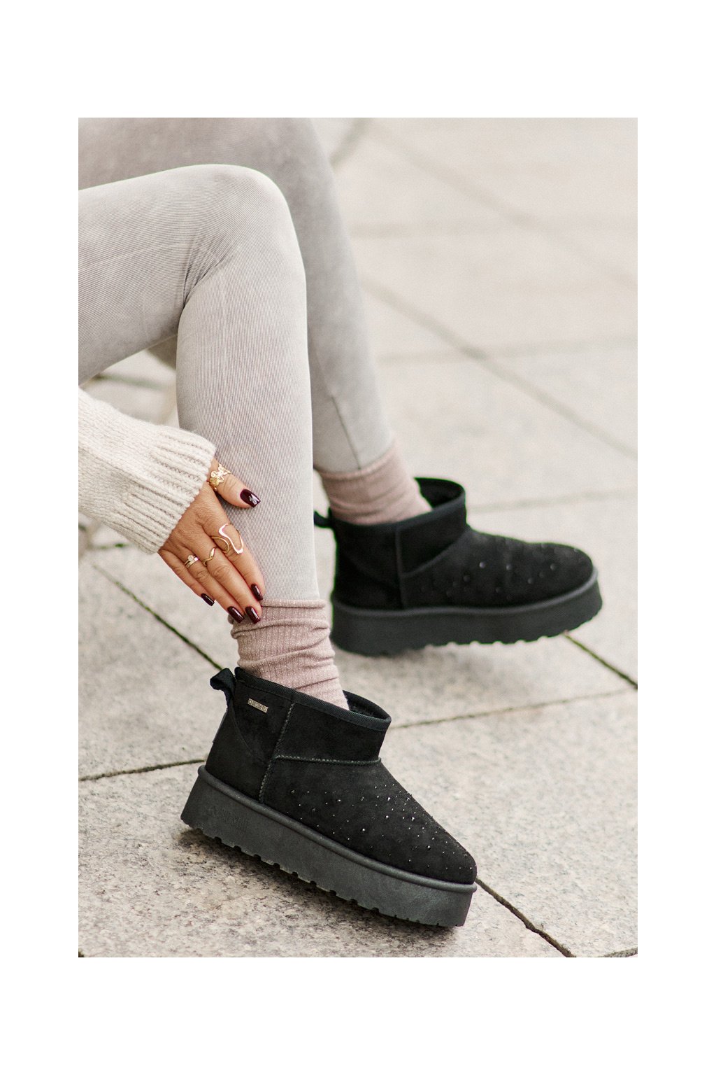 Model s nízkou platformou, zdobený na zvršku, priťahuje pozornosť a dodáva štýl. Zateplené mäkkou kožušinou zabezpečujú teplo a pohodlie počas chladných dní. Okrem toho má tento model nepremokavú membránu. Dokonalá kombinácia módy a pohodlia na zimné prechádzky. Pri výbere veľkosti sa riaďte tabuľkou veľkostí.