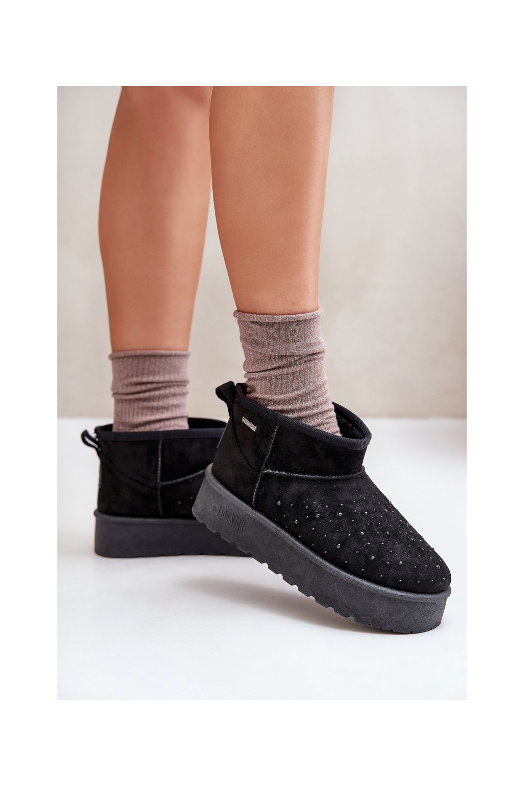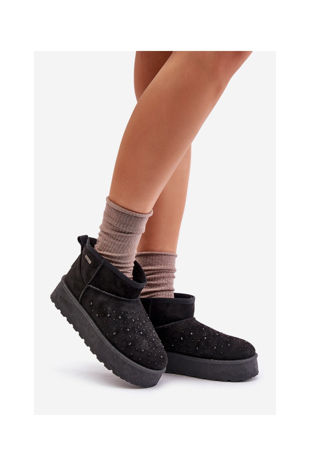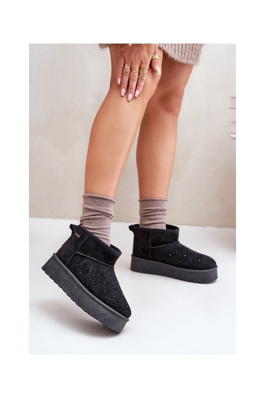 Čierne dámske EKO semišové snehule na zips s hrubou podrážkou, kód produktu OO274A105