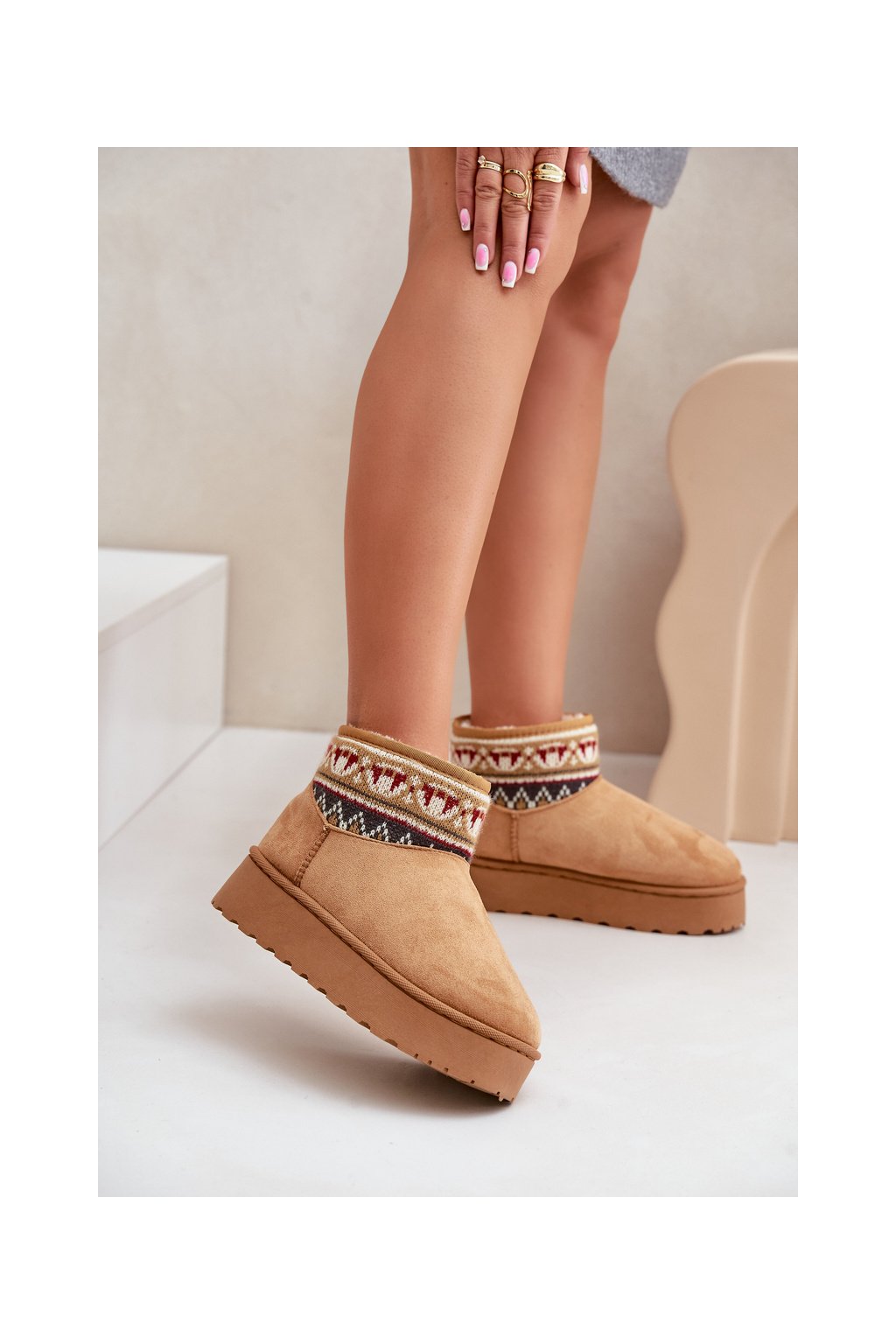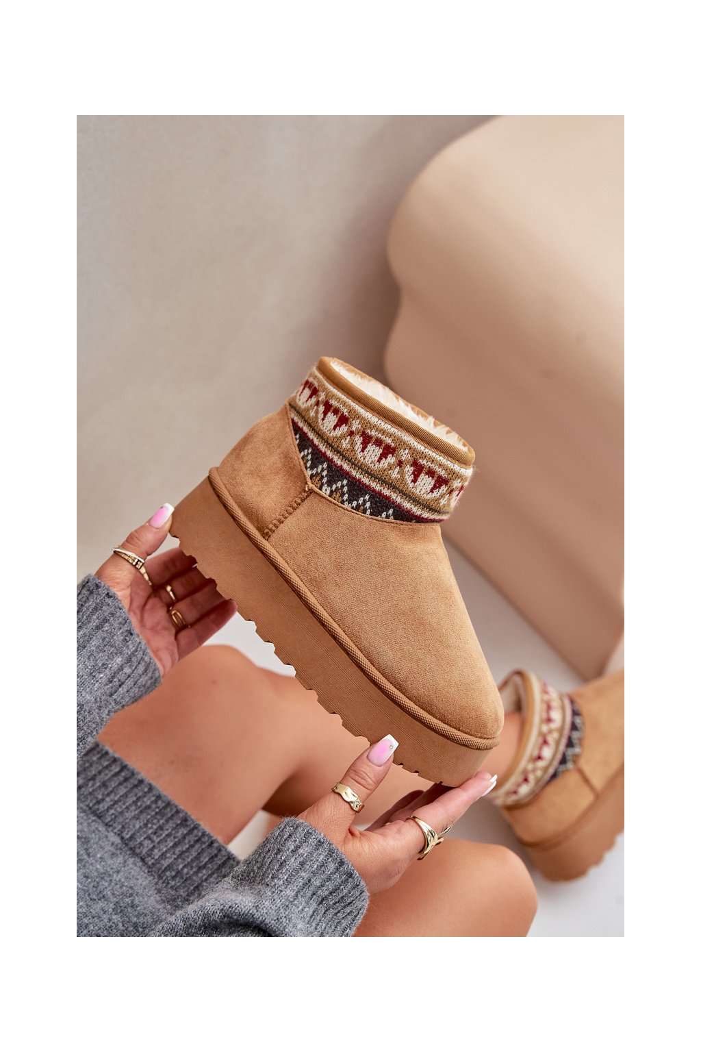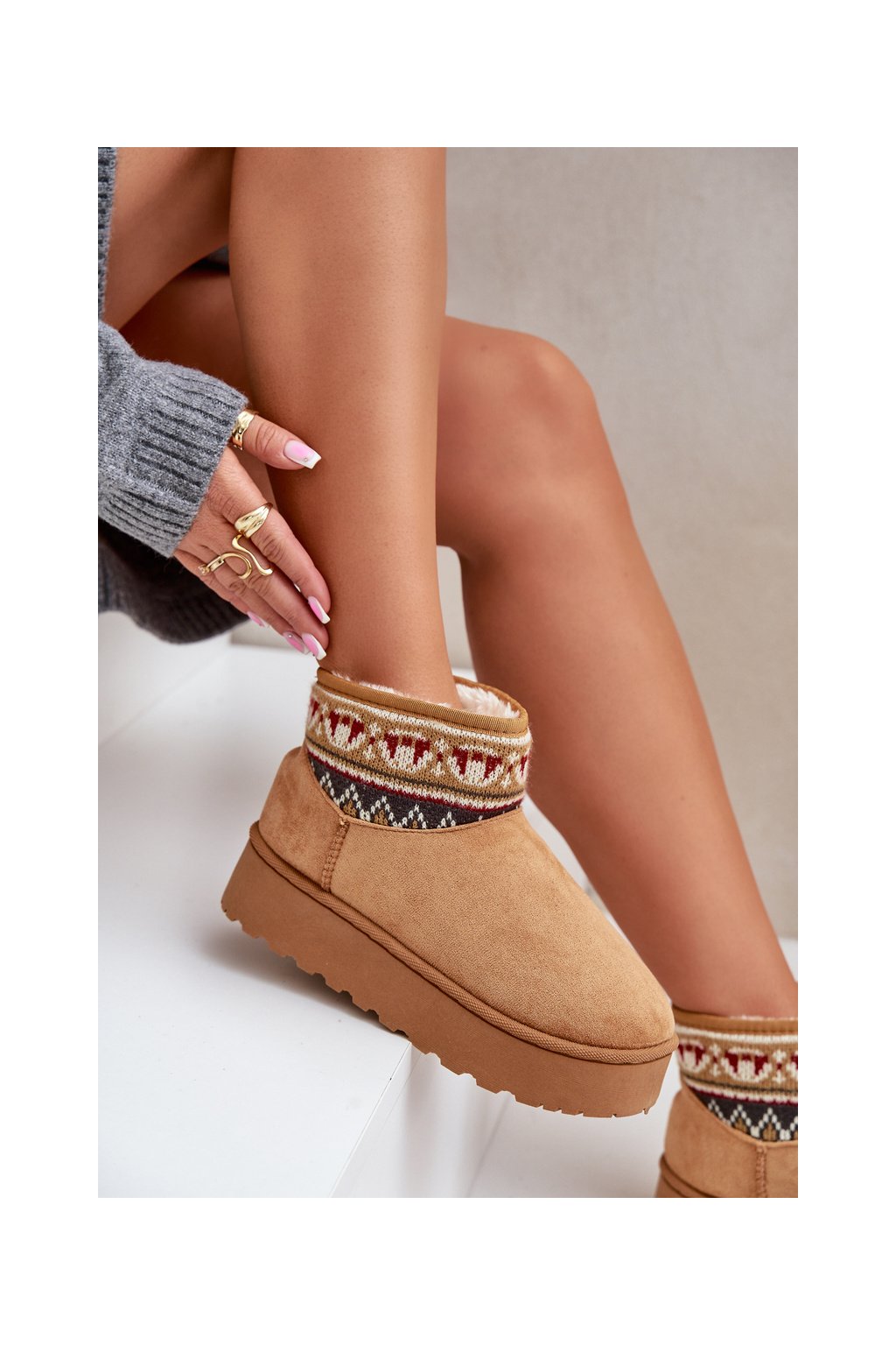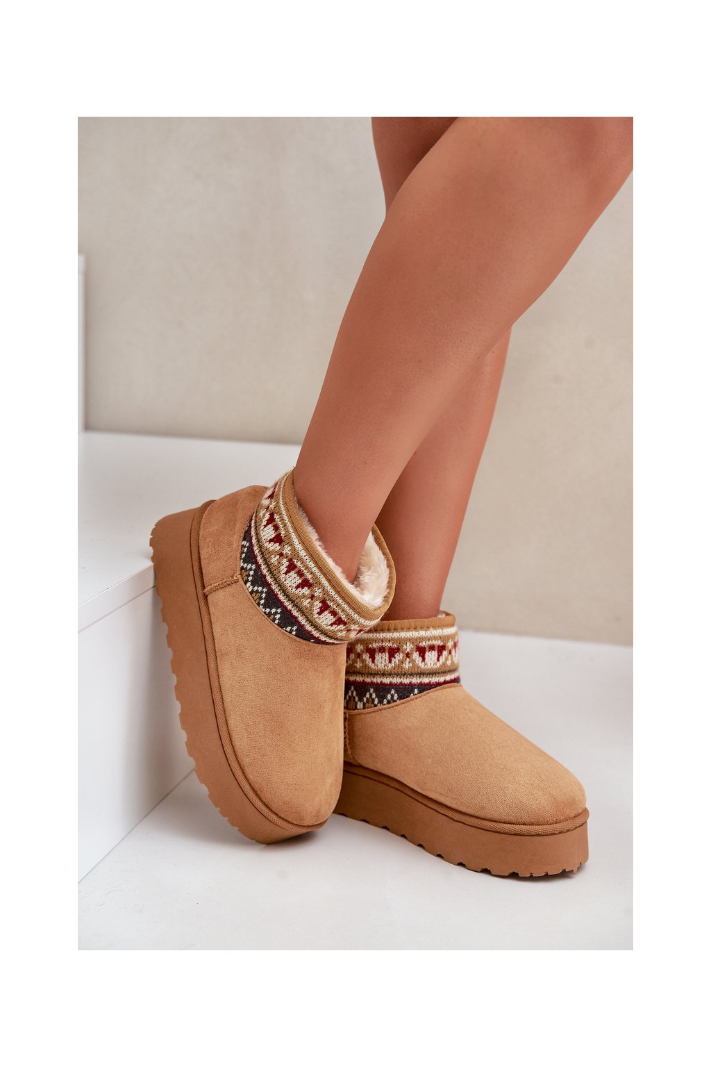 Dámske hnedé eko semišové snehule s hrejivou kožušinou na zimu, kód produktu 20226-4B CAMEL