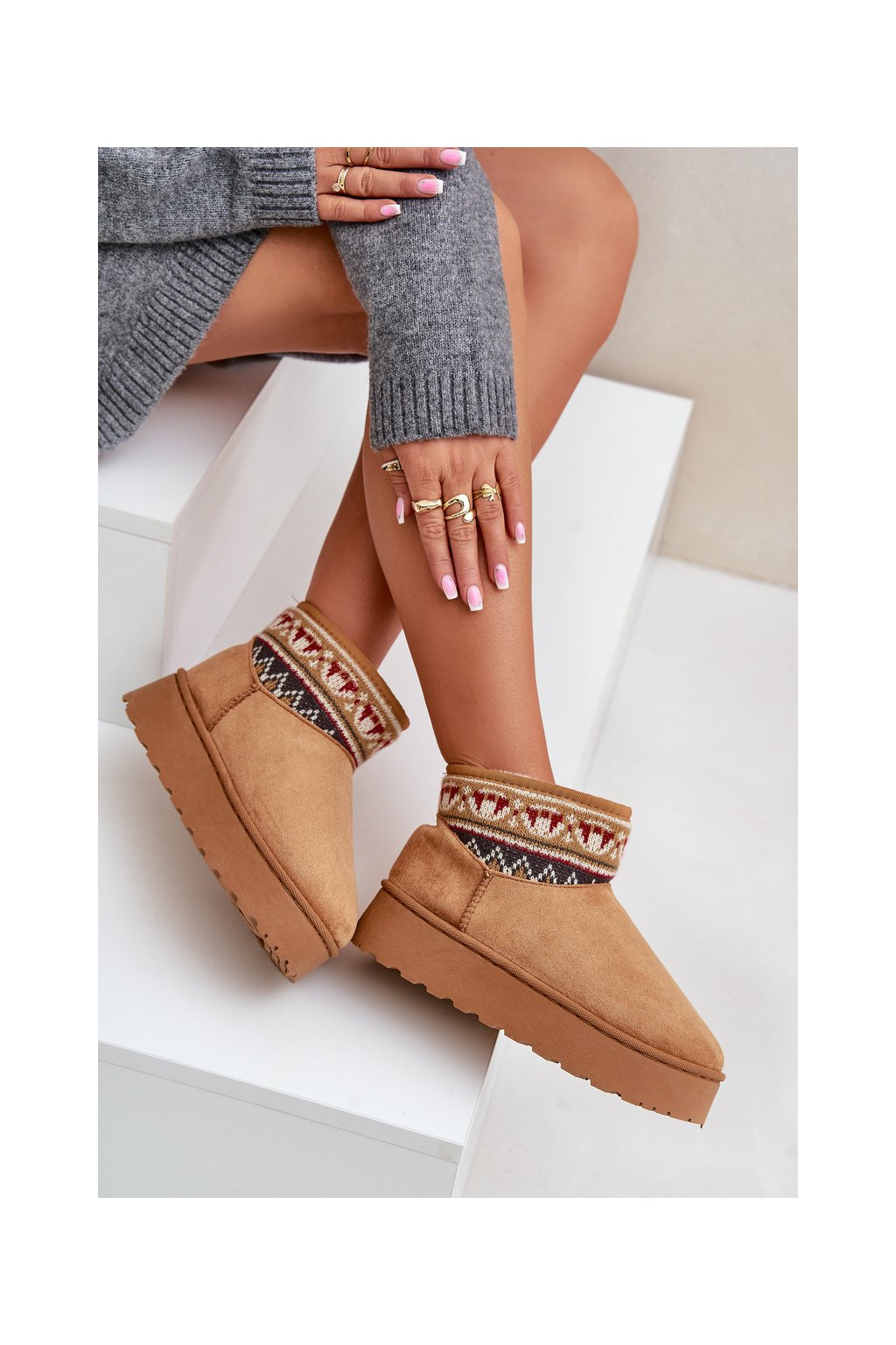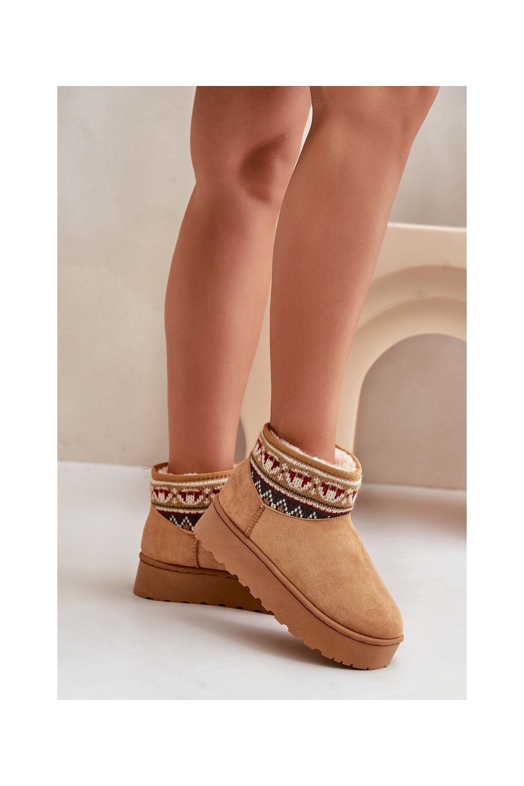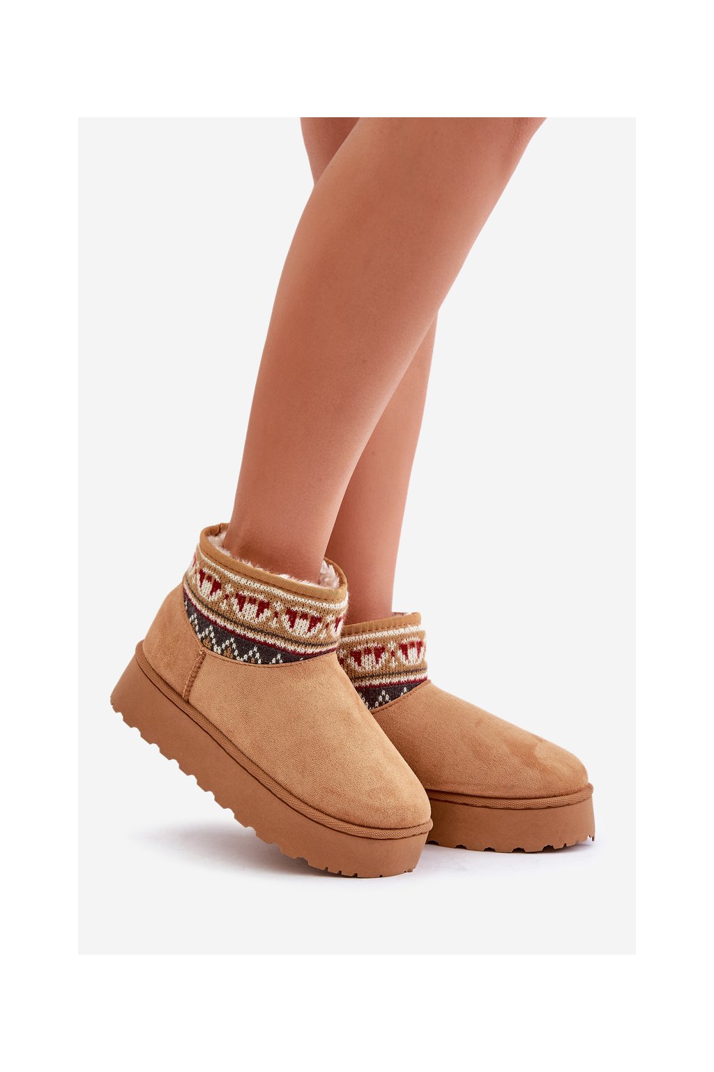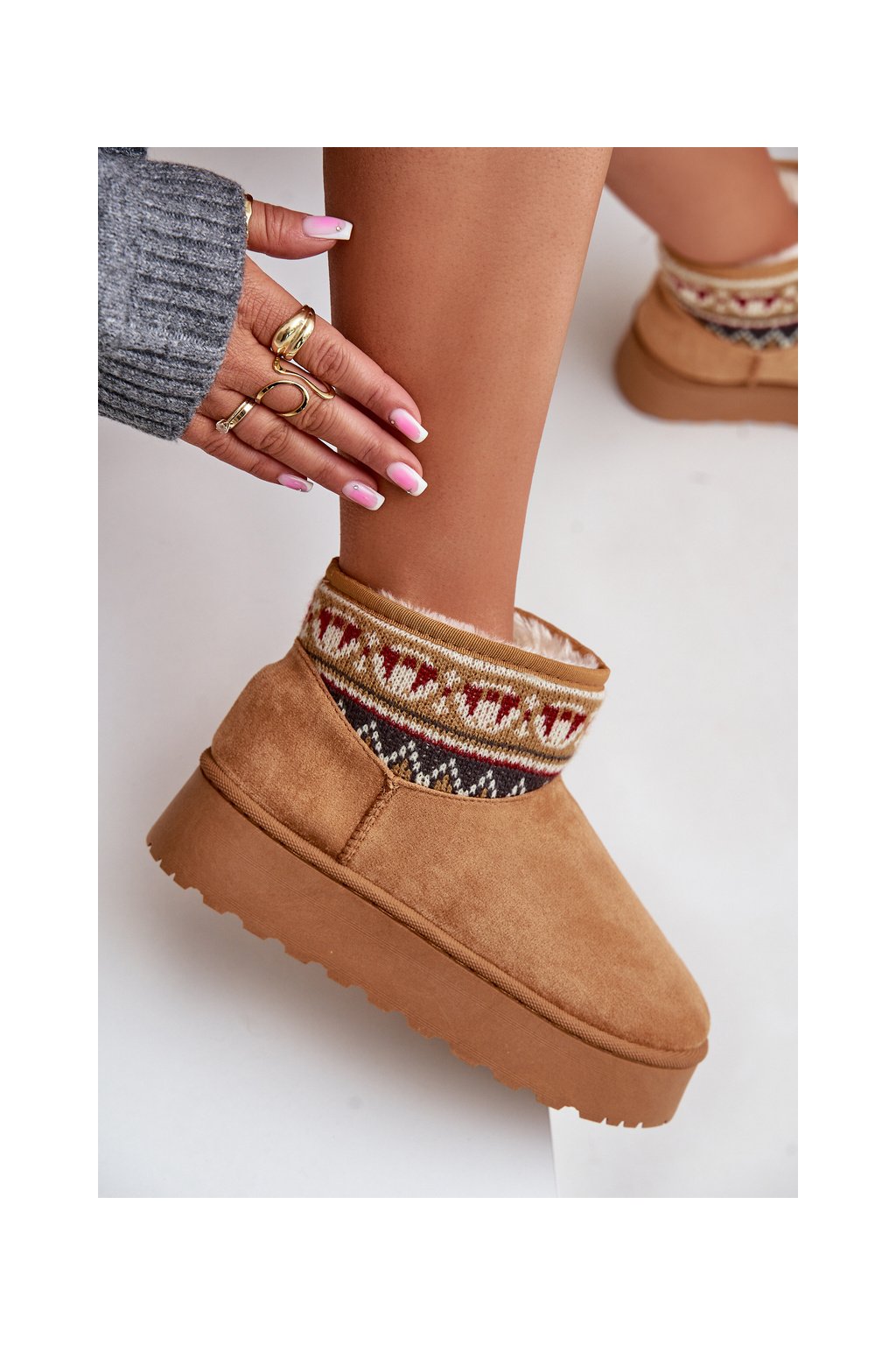 Dámske hnedé eko semišové snehule s hrejivou kožušinou na zimu, kód produktu 20226-4B CAMEL