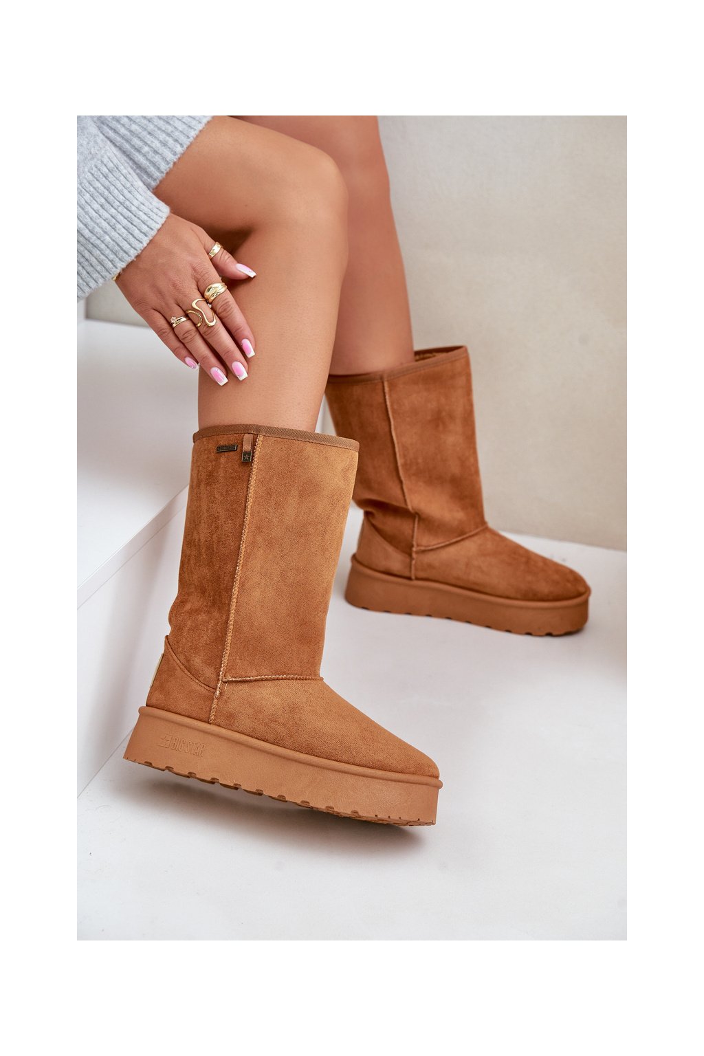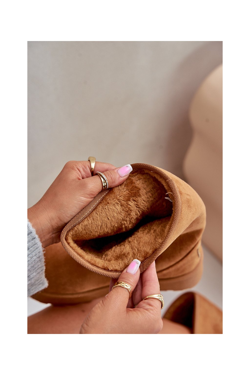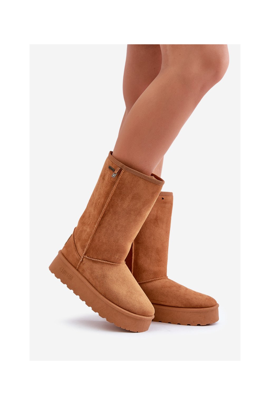 Hnedé dámske EKO semišové snehule s hrubou podrážkou, zateplené kožušinou, kód produktu OO274893