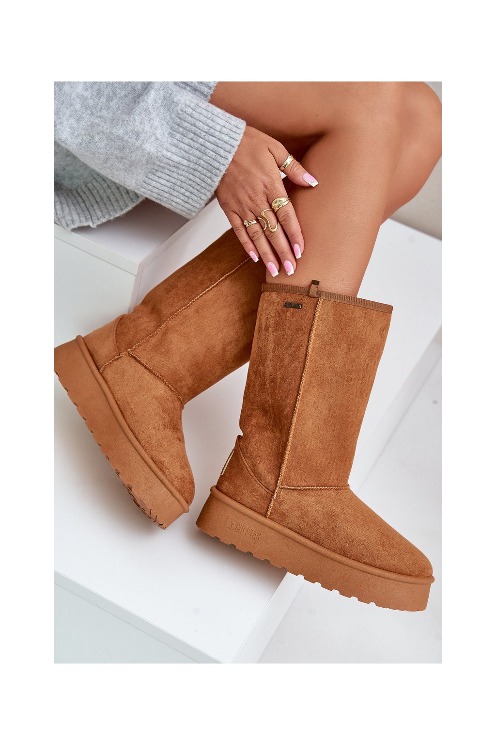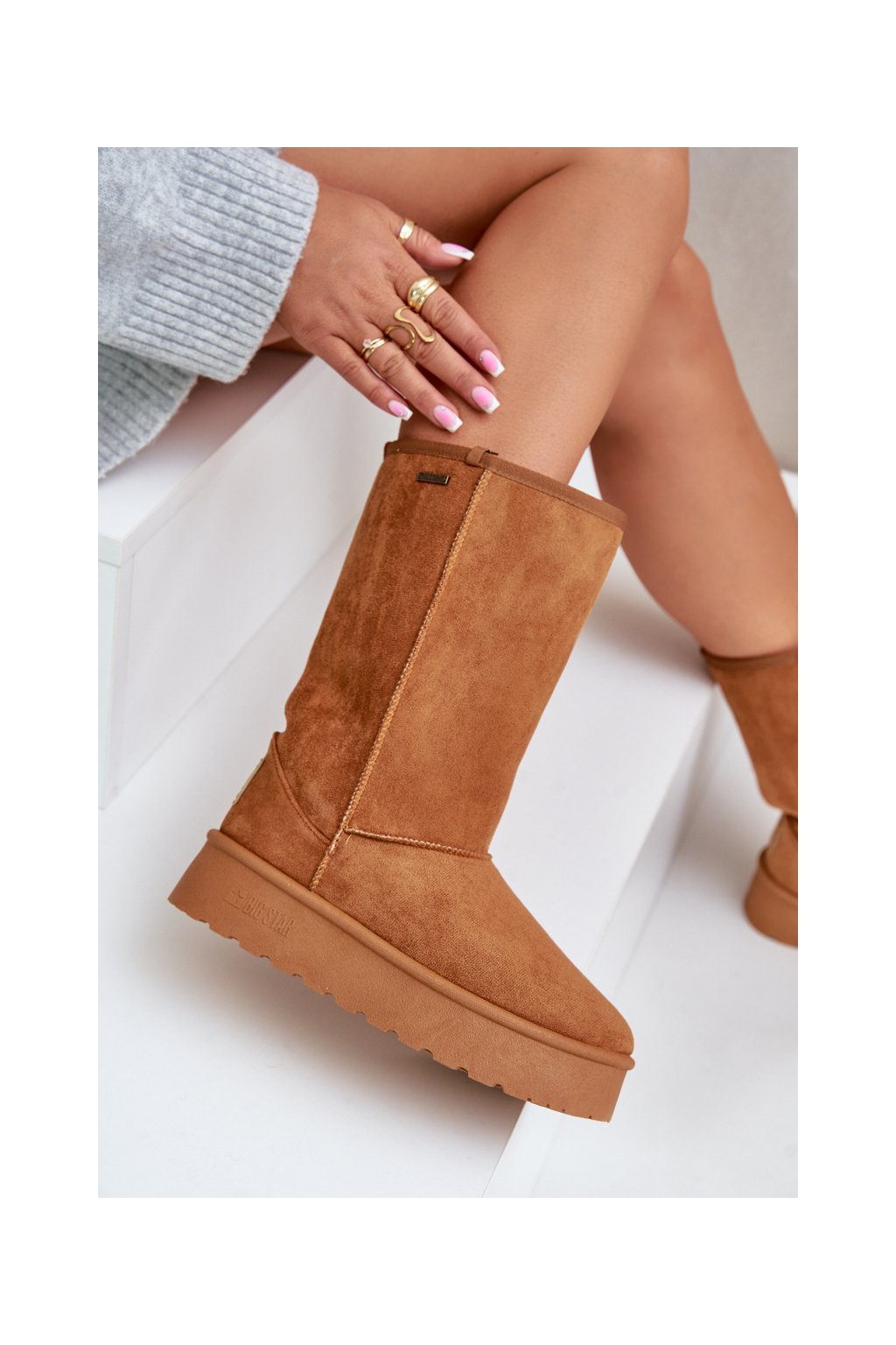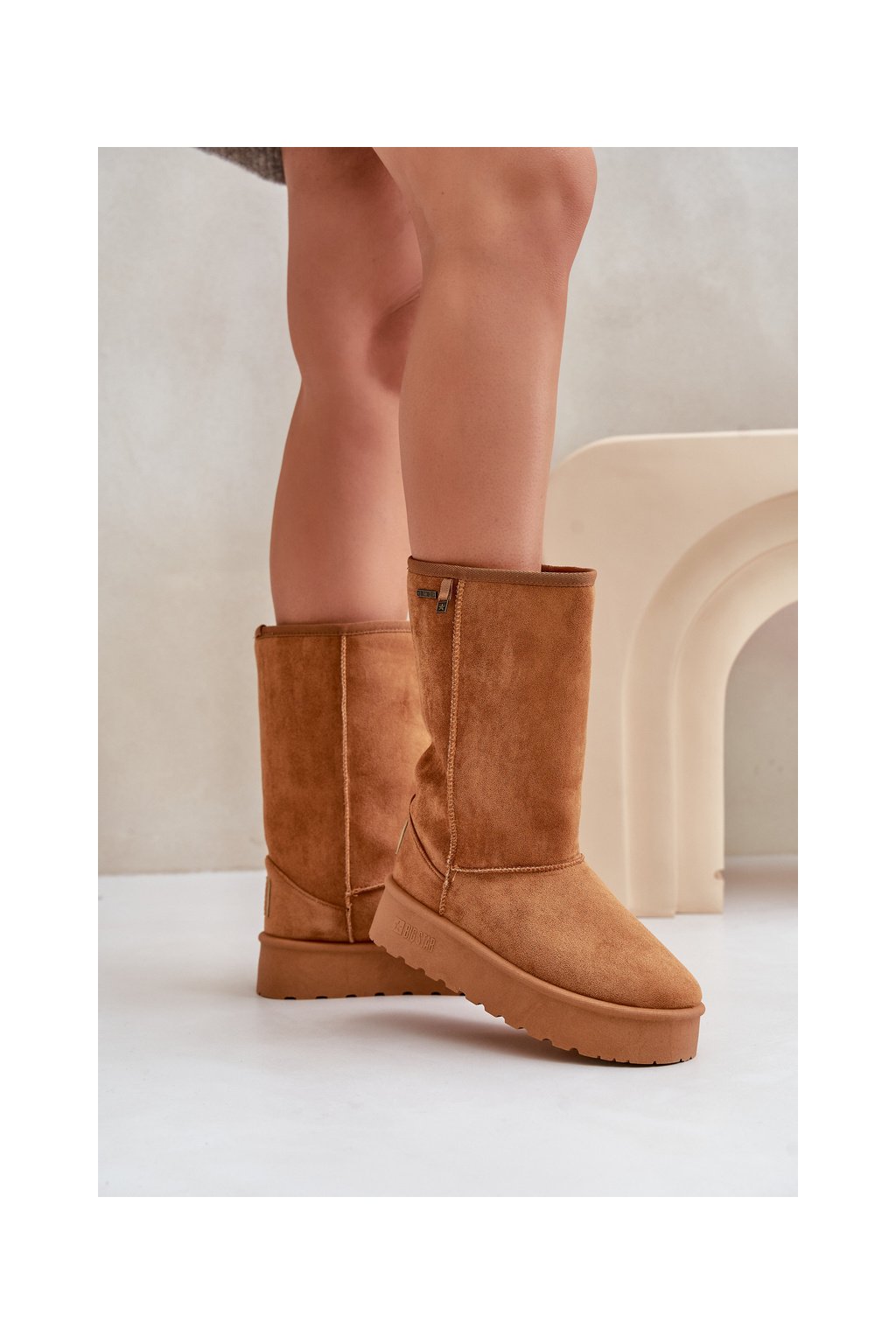 Hnedé dámske EKO semišové snehule s hrubou podrážkou, zateplené kožušinou, kód produktu OO274893