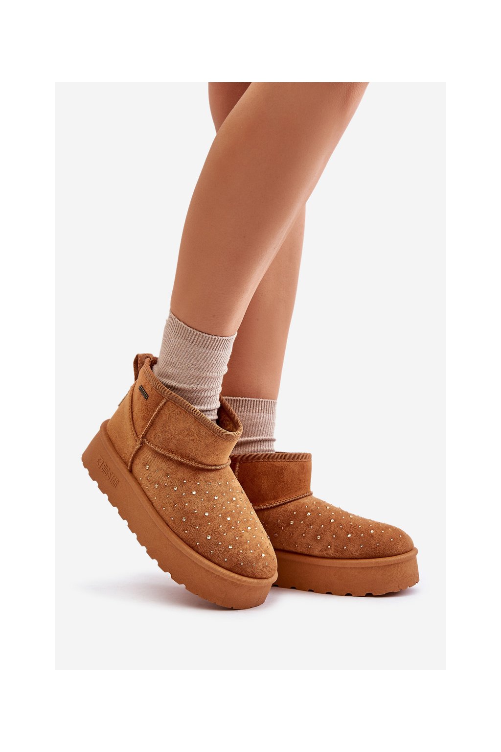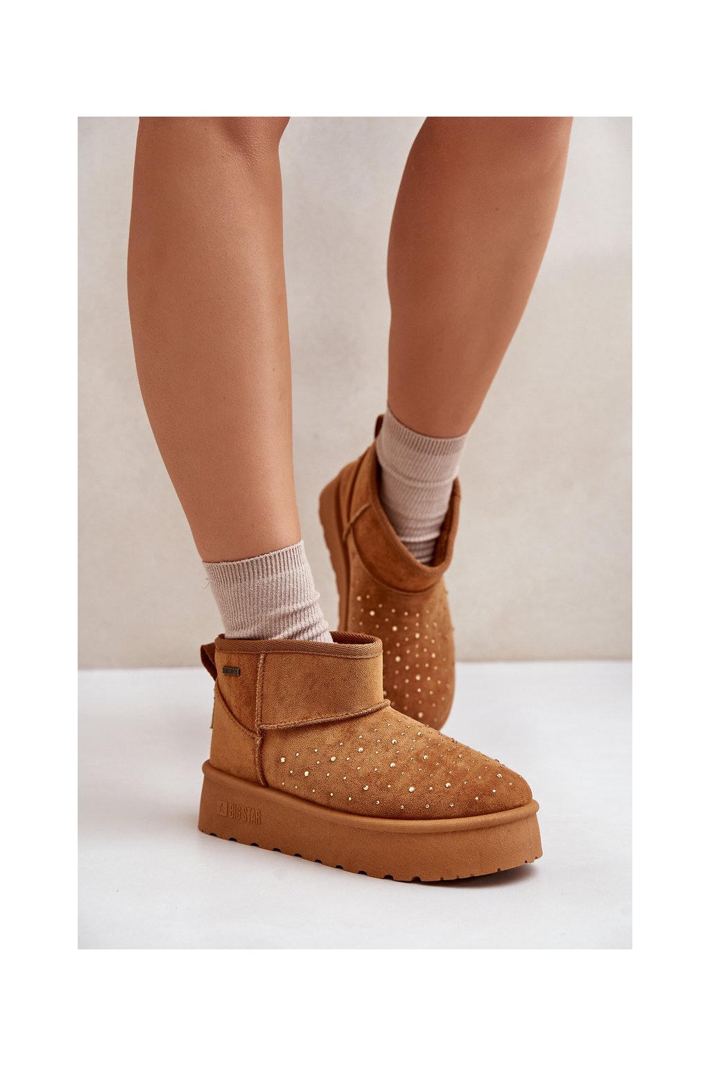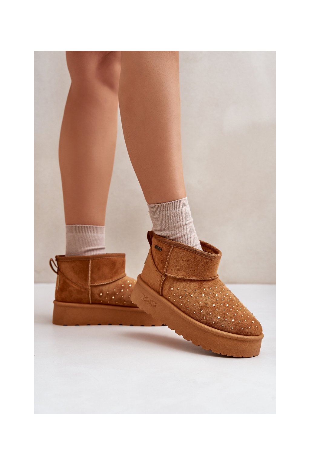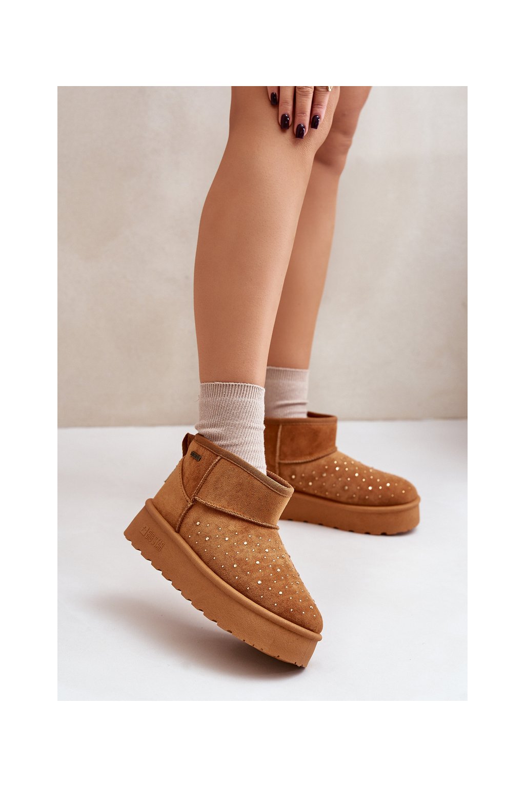 Hnedé dámske eko semišové snehule s hrejivou kožušinou na zimu, kód produktu OO274A104