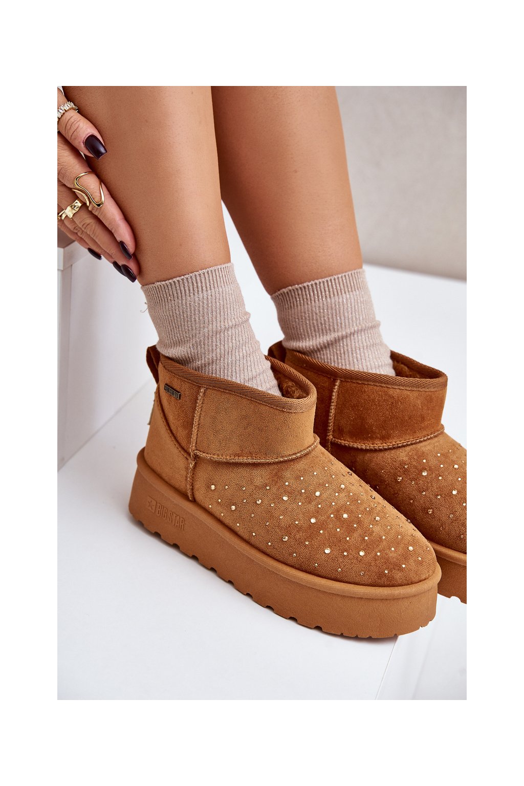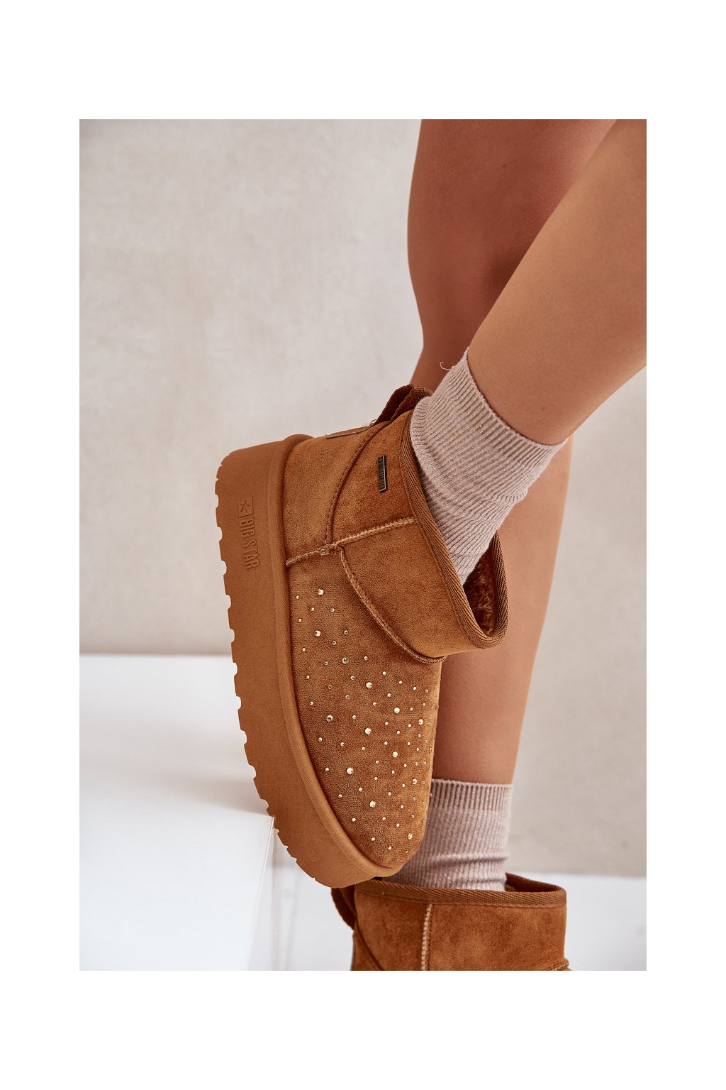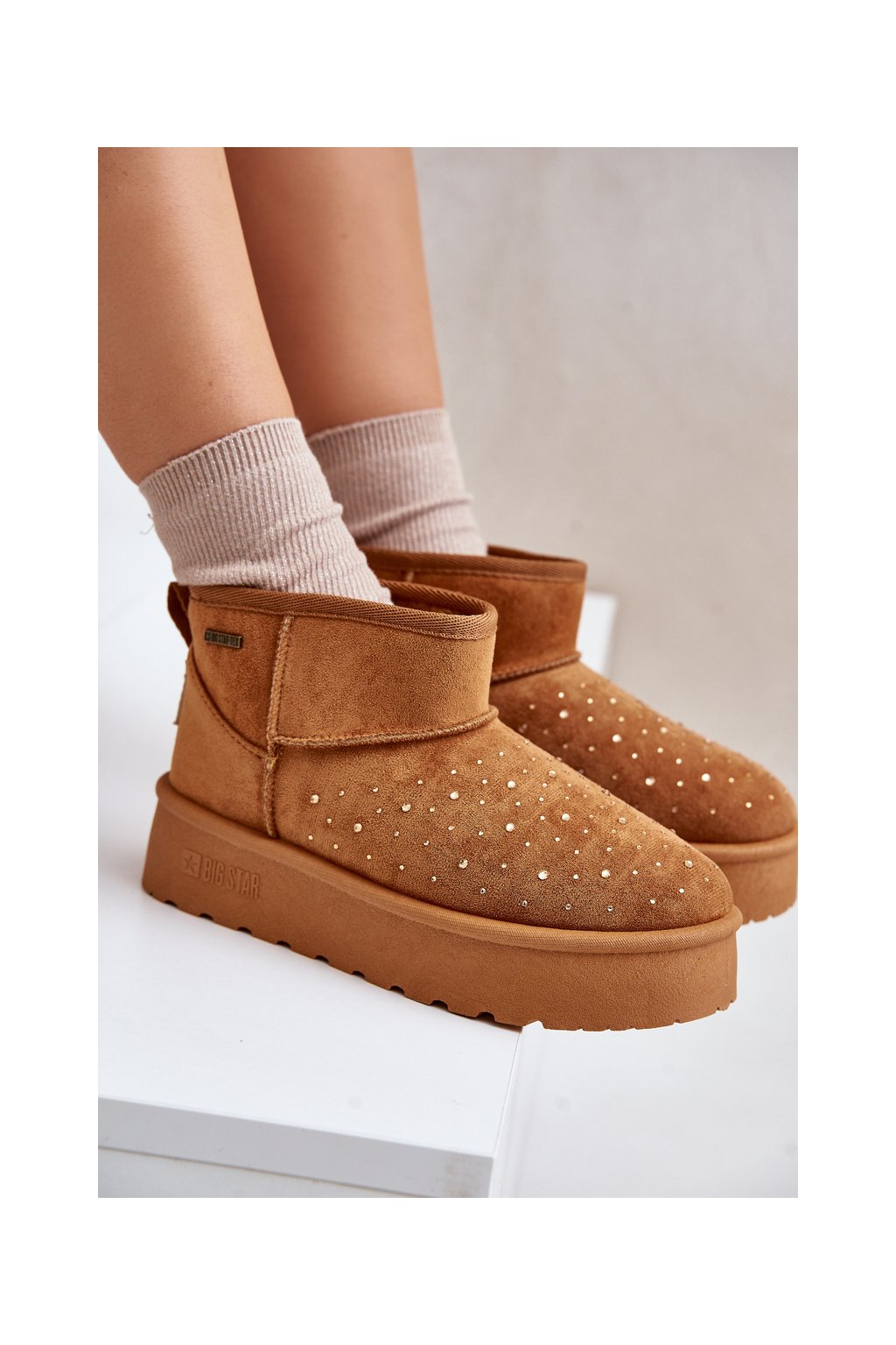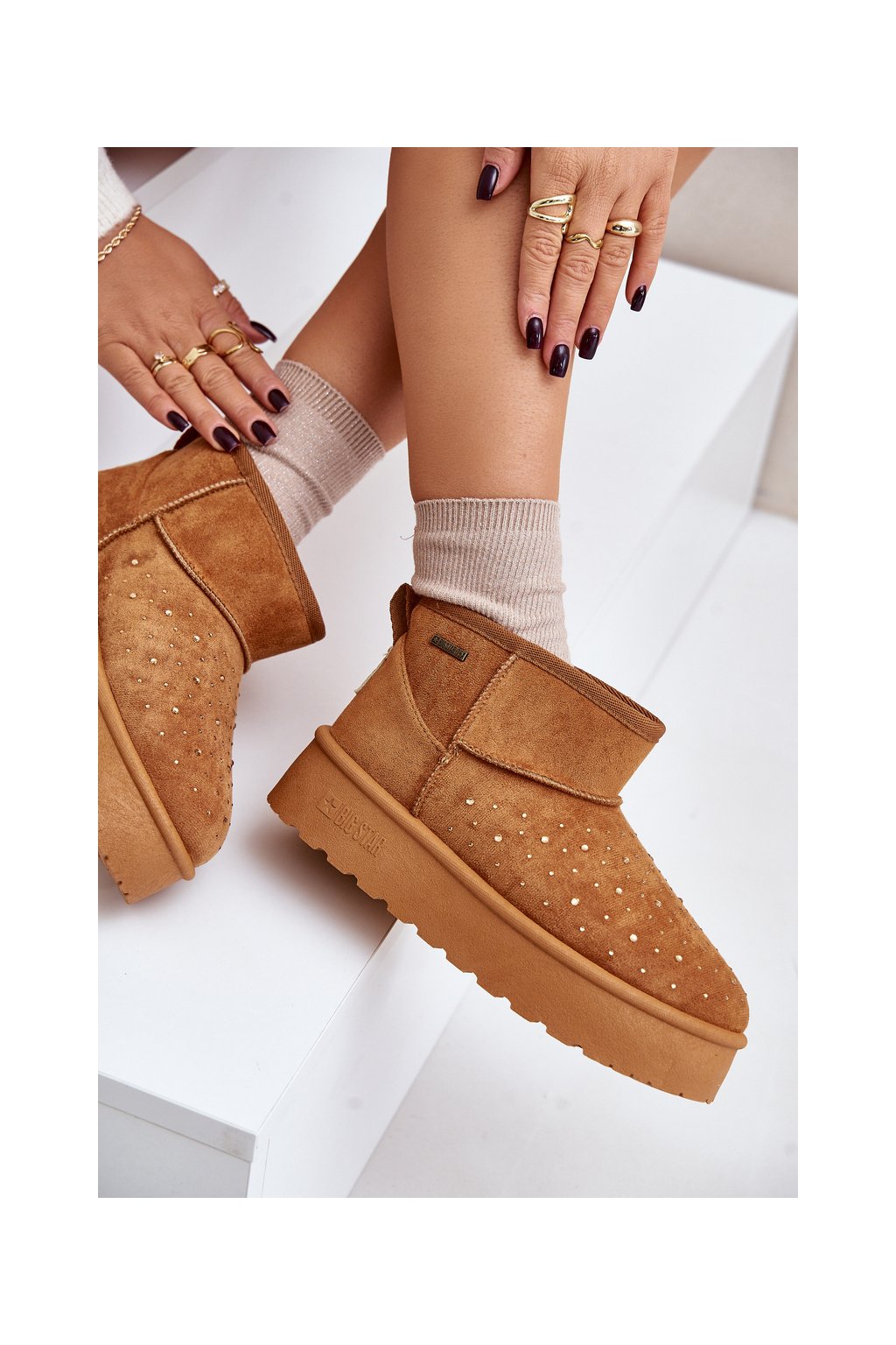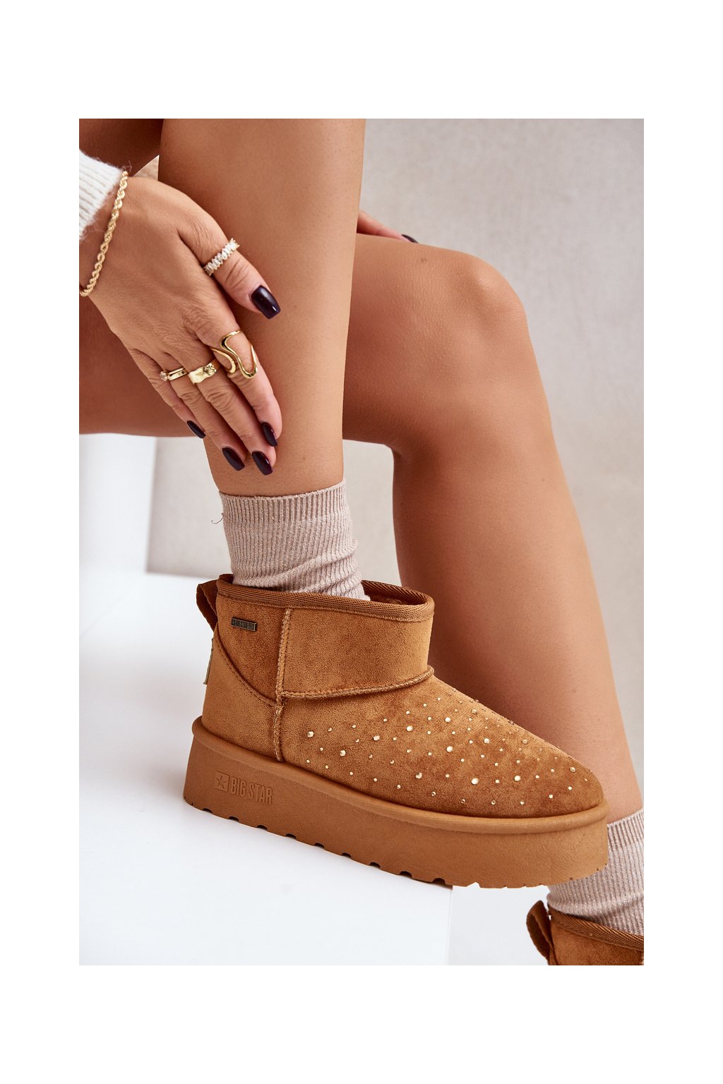 Hnedé dámske eko semišové snehule s hrejivou kožušinou na zimu, kód produktu OO274A104