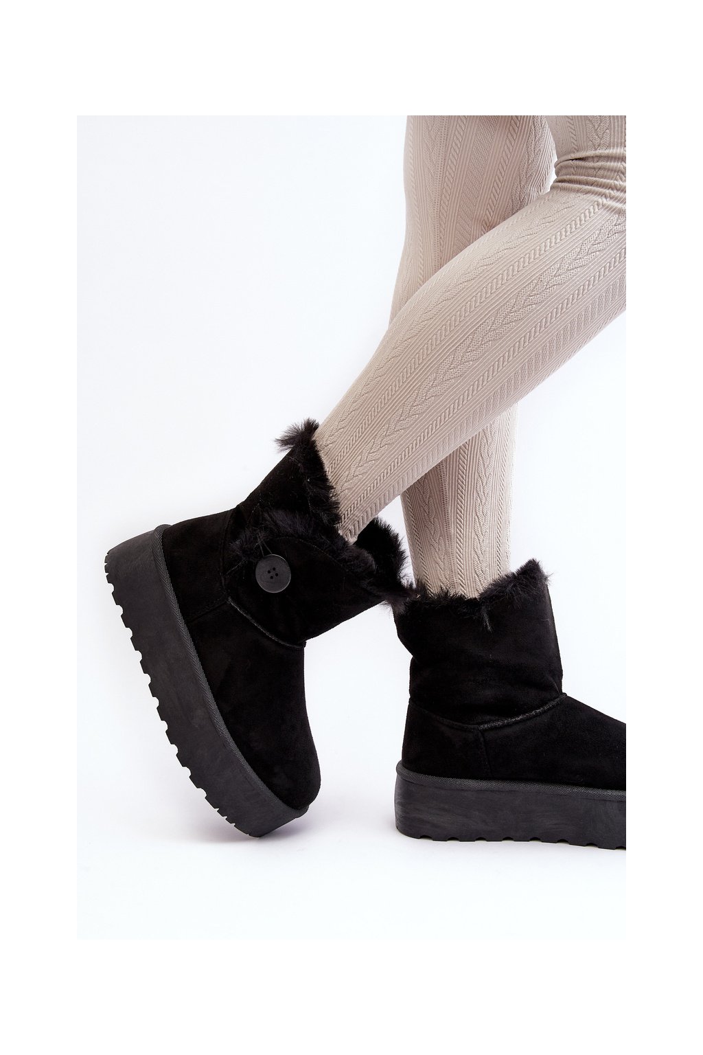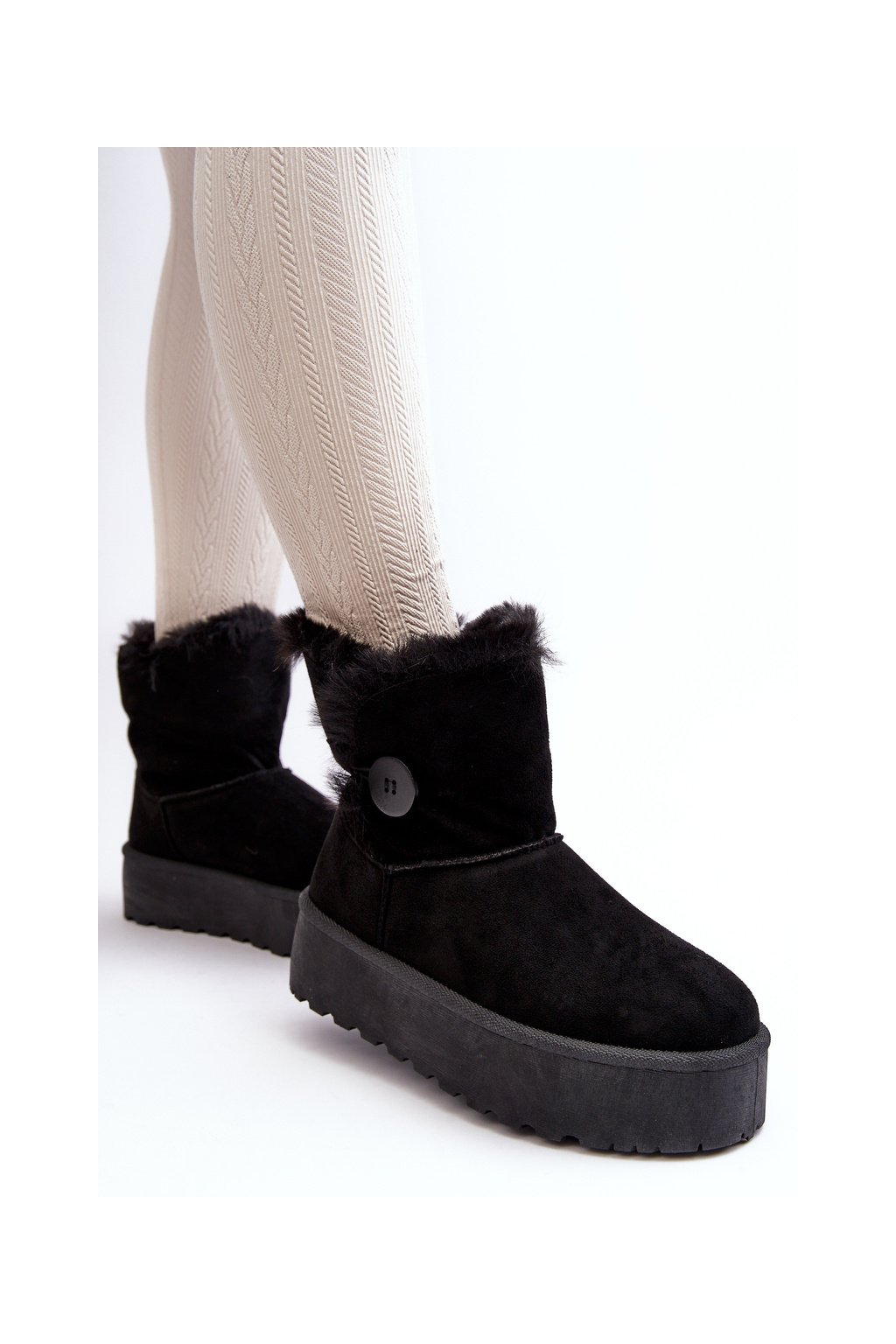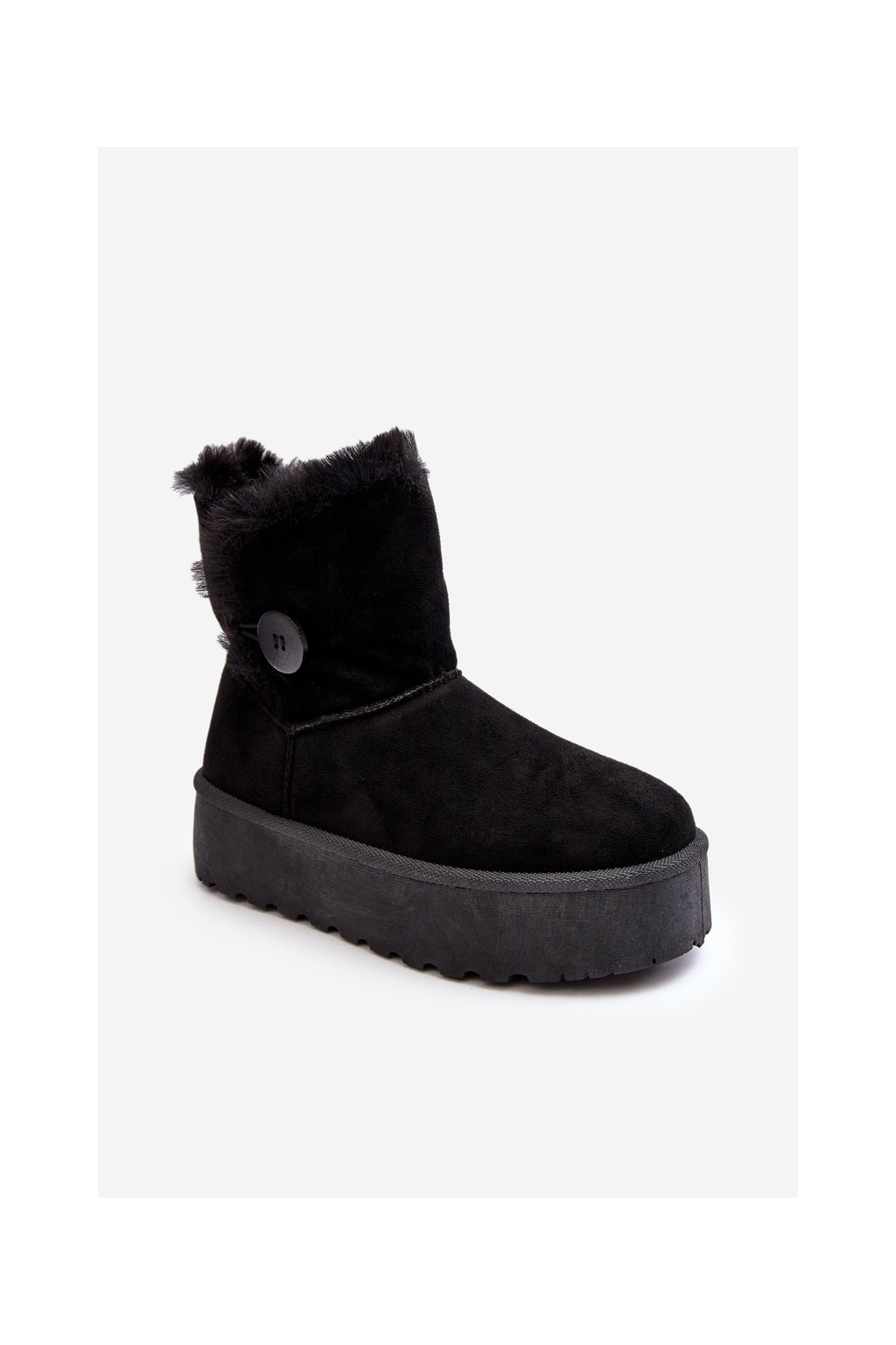 Dámske snehule na platforme s kožušinou čierne wikasem / 85-925 BLACK