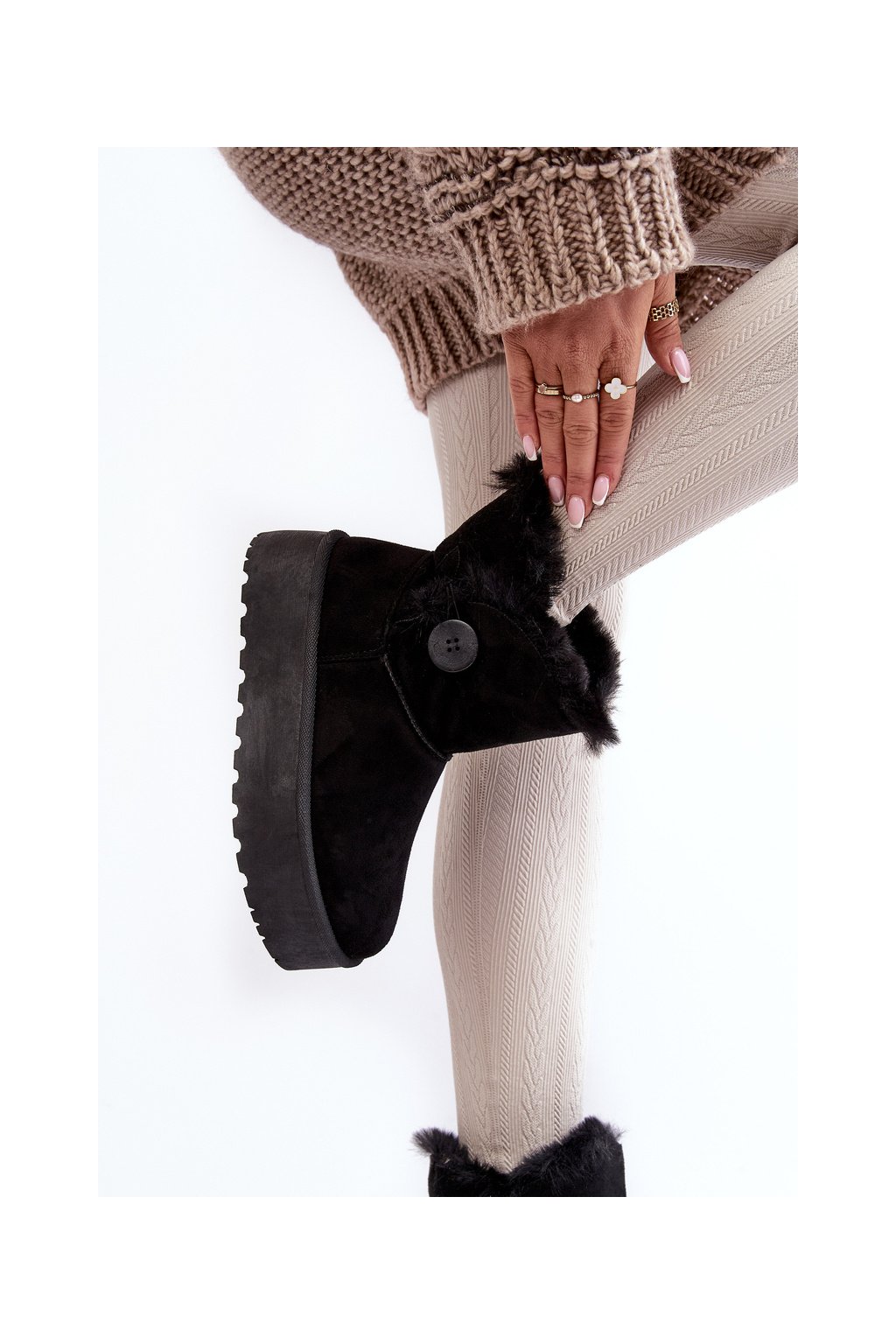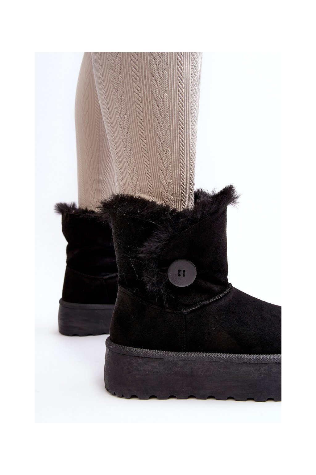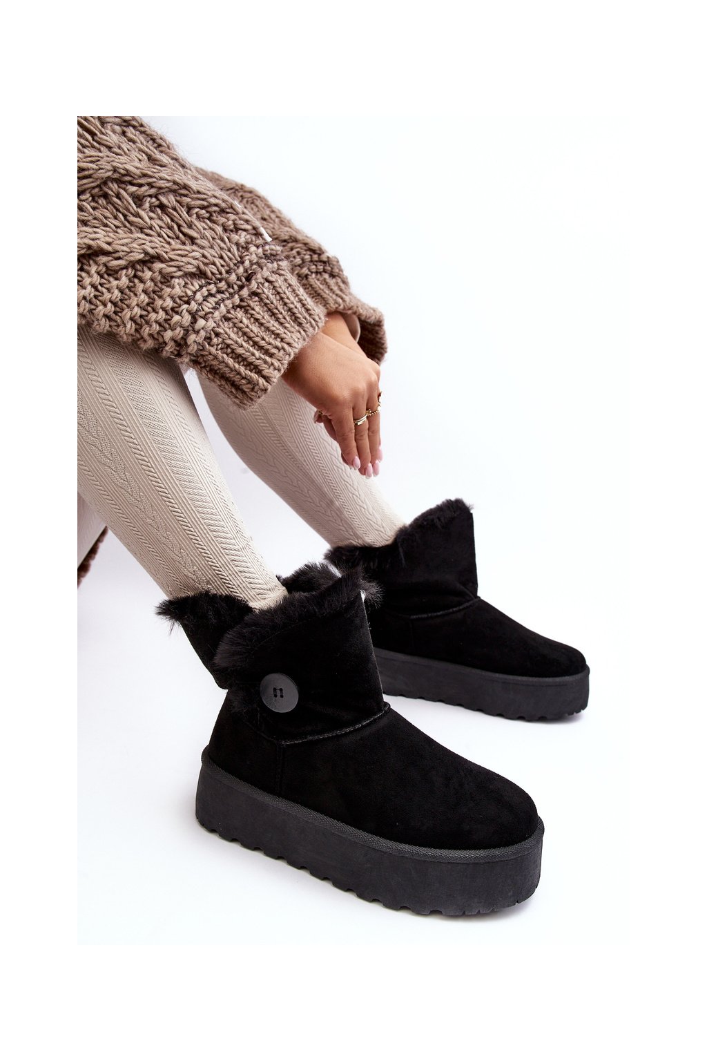 Dámske snehule na platforme s kožušinou čierne wikasem / 85-925 BLACK