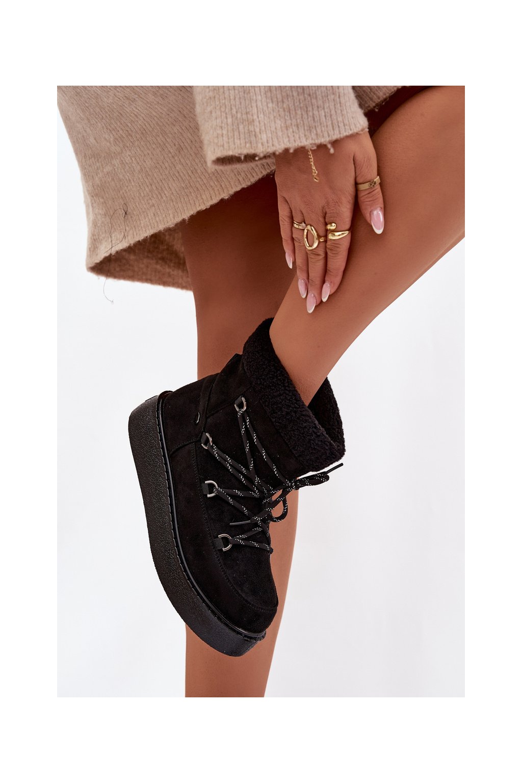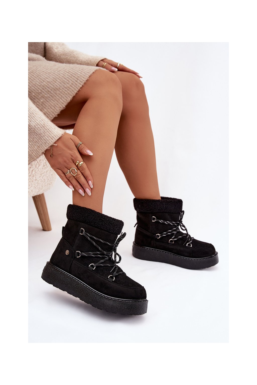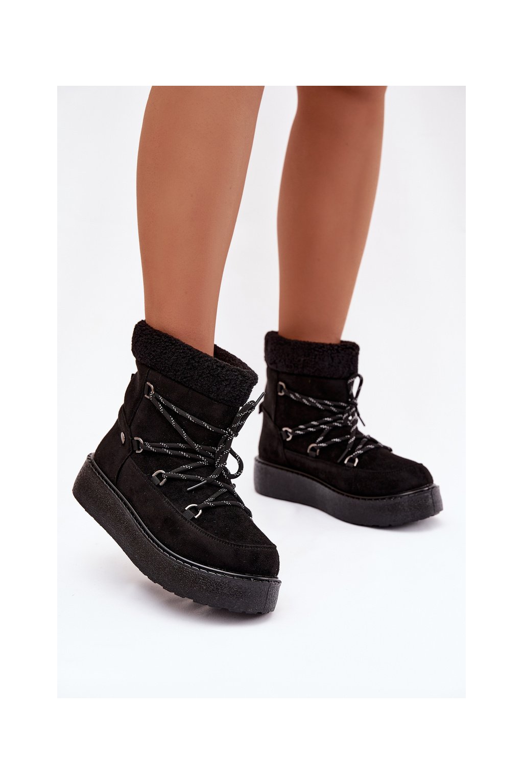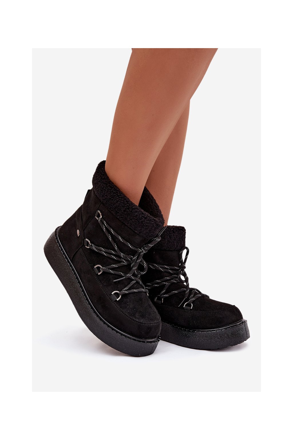 Dámske snehule na platforme so šnúrovaním čierne roselya / WSB255308-1 BLK