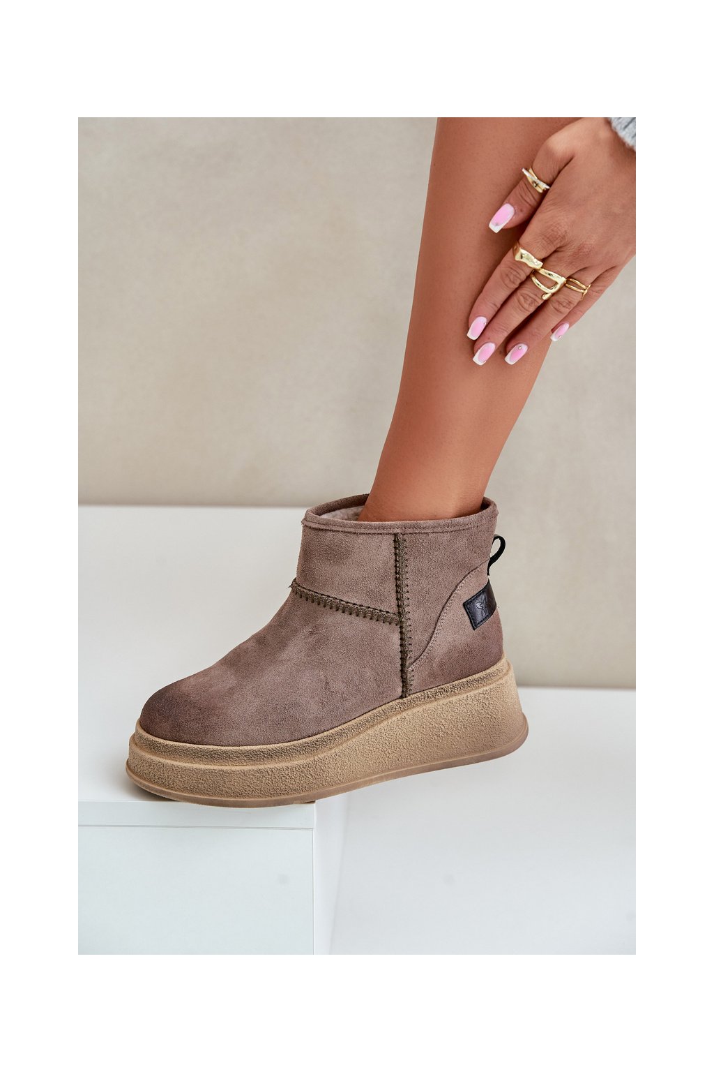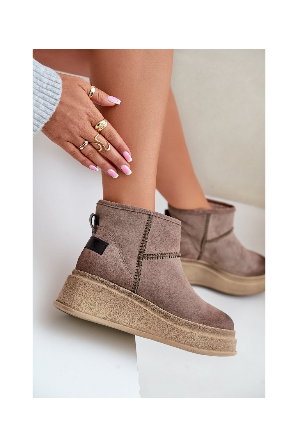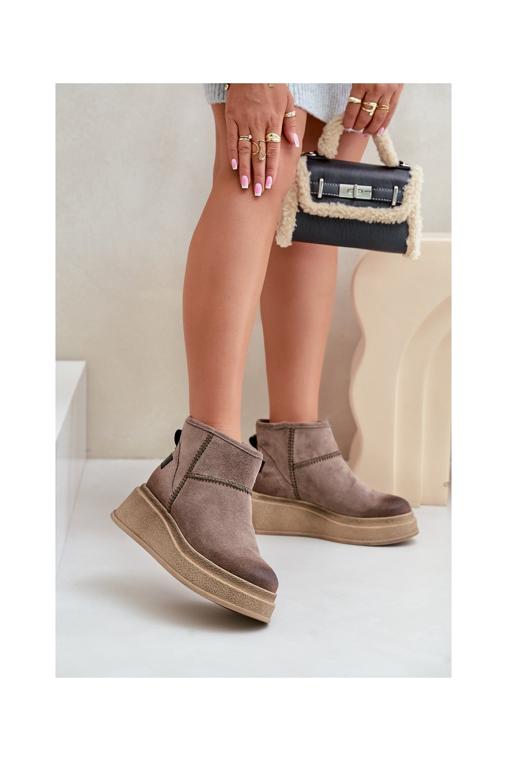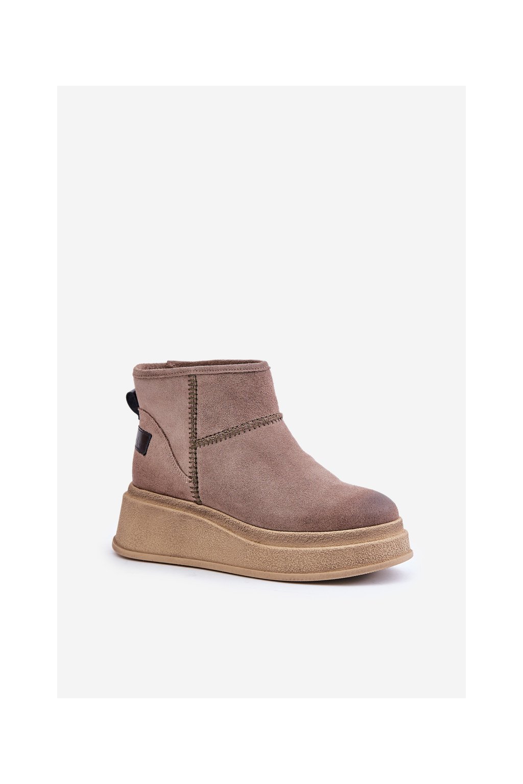 Hnedé dámske semišové snehule na platforme a podpätku s ovčou kožou, kód produktu 06769-02/00-4 ZIEMIA