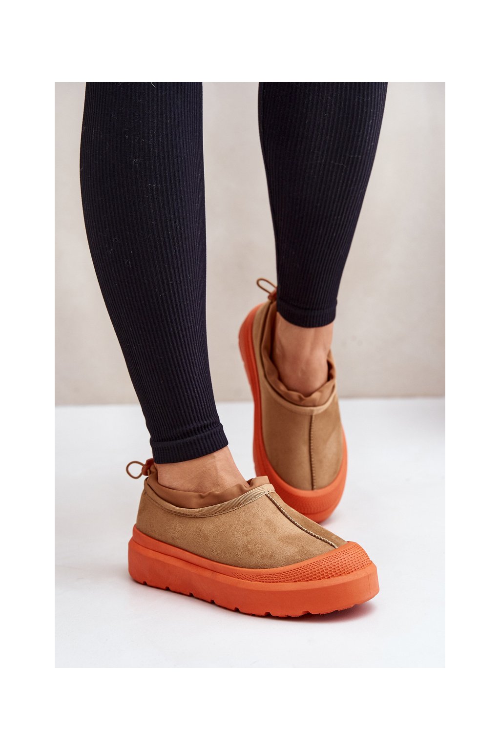 Dámske snehule na platforme s nízkým svrškem camel izamine / VL238P CAMEL