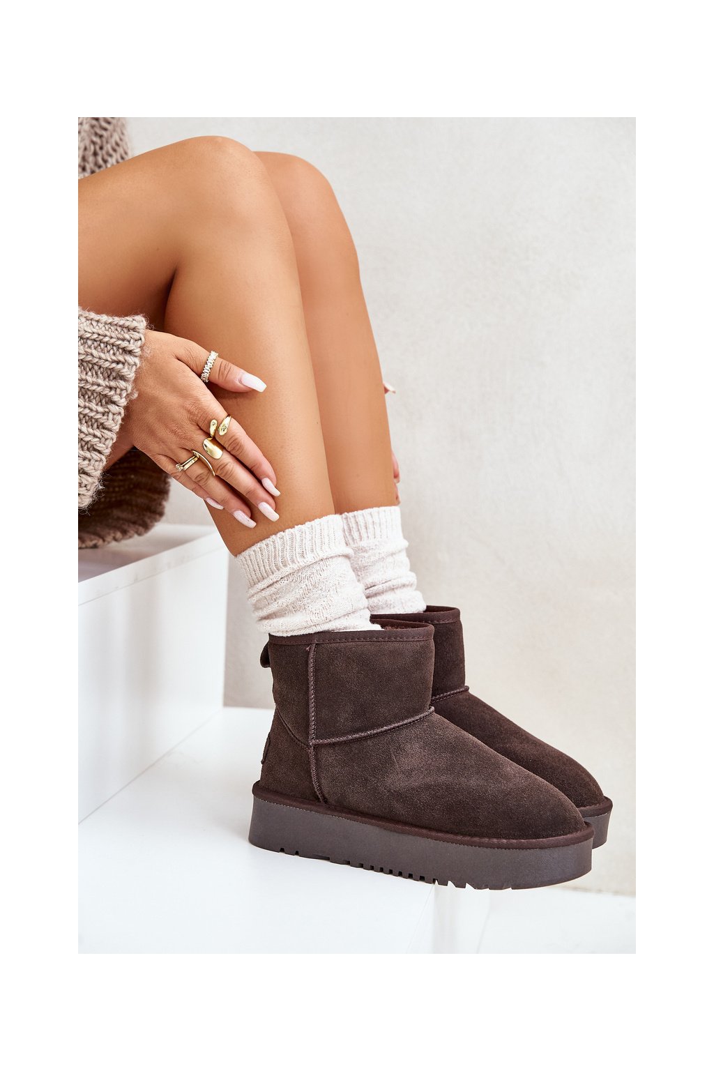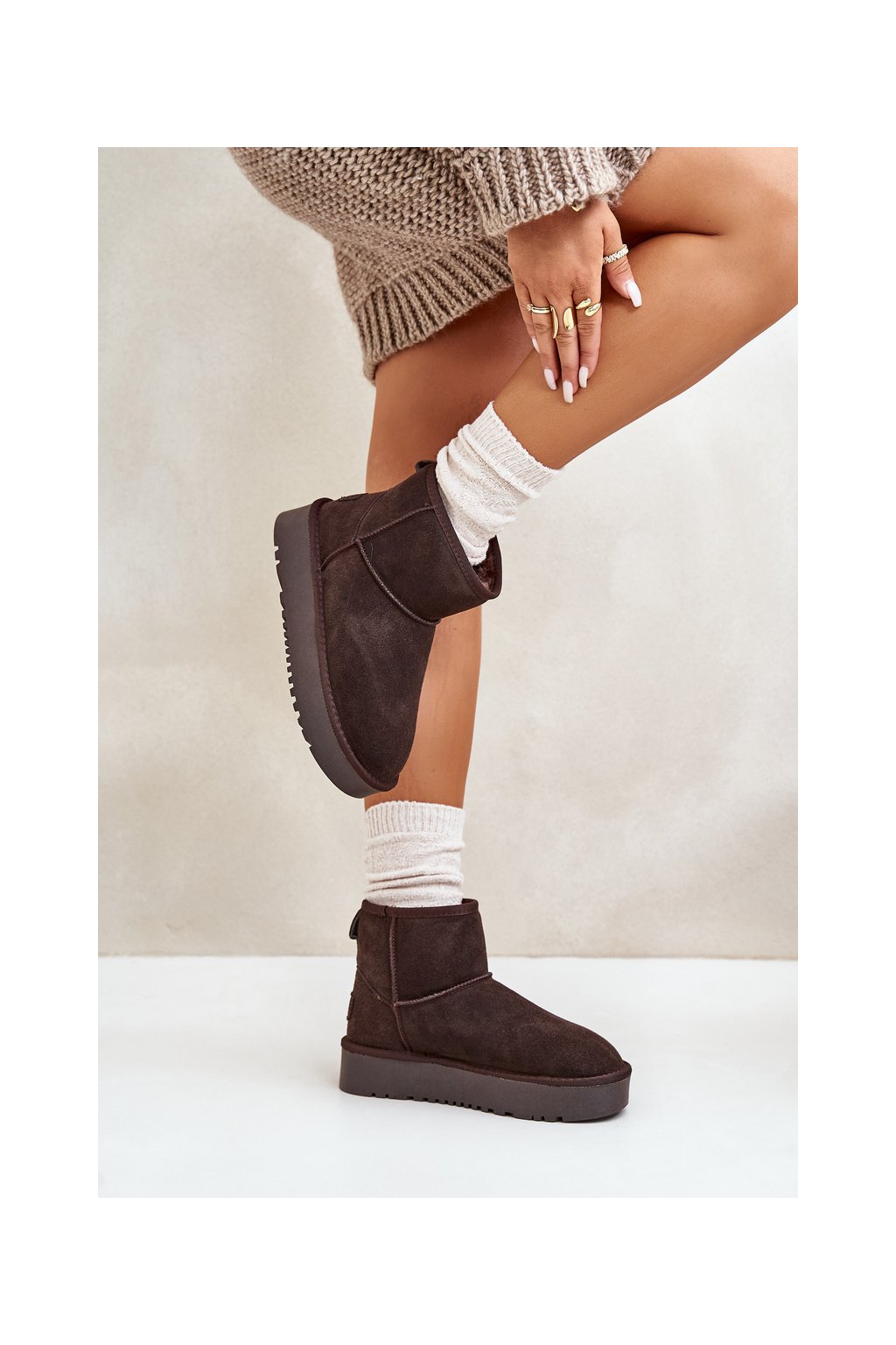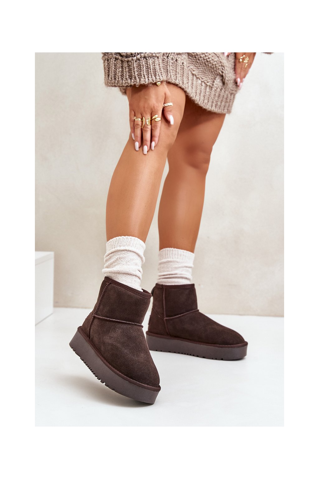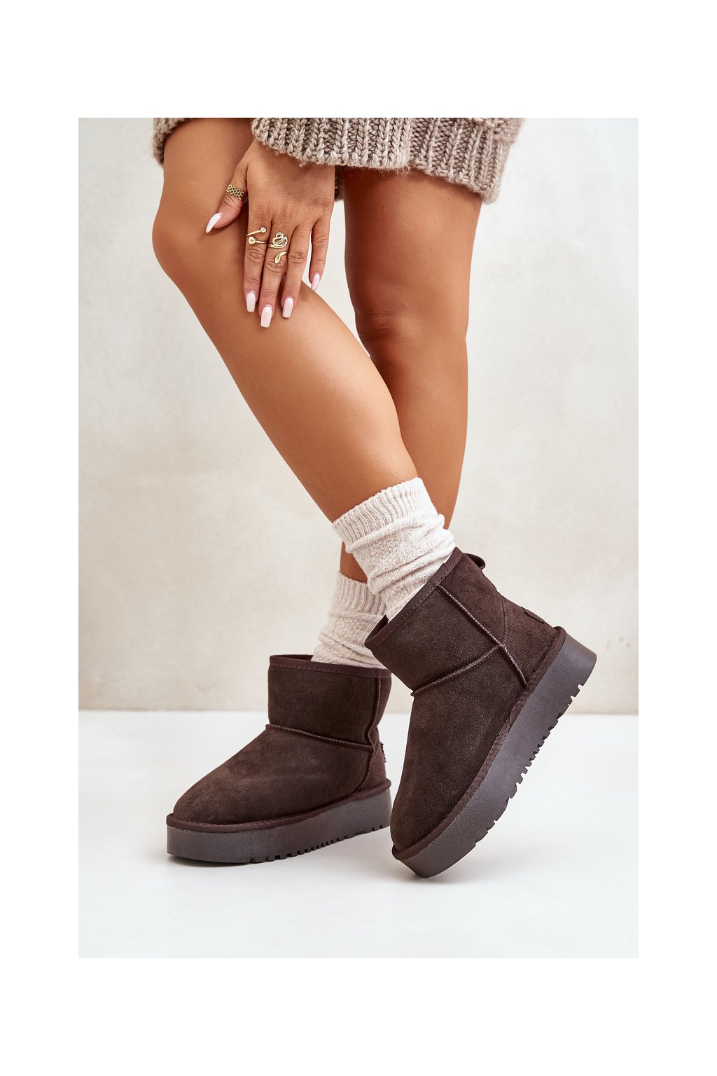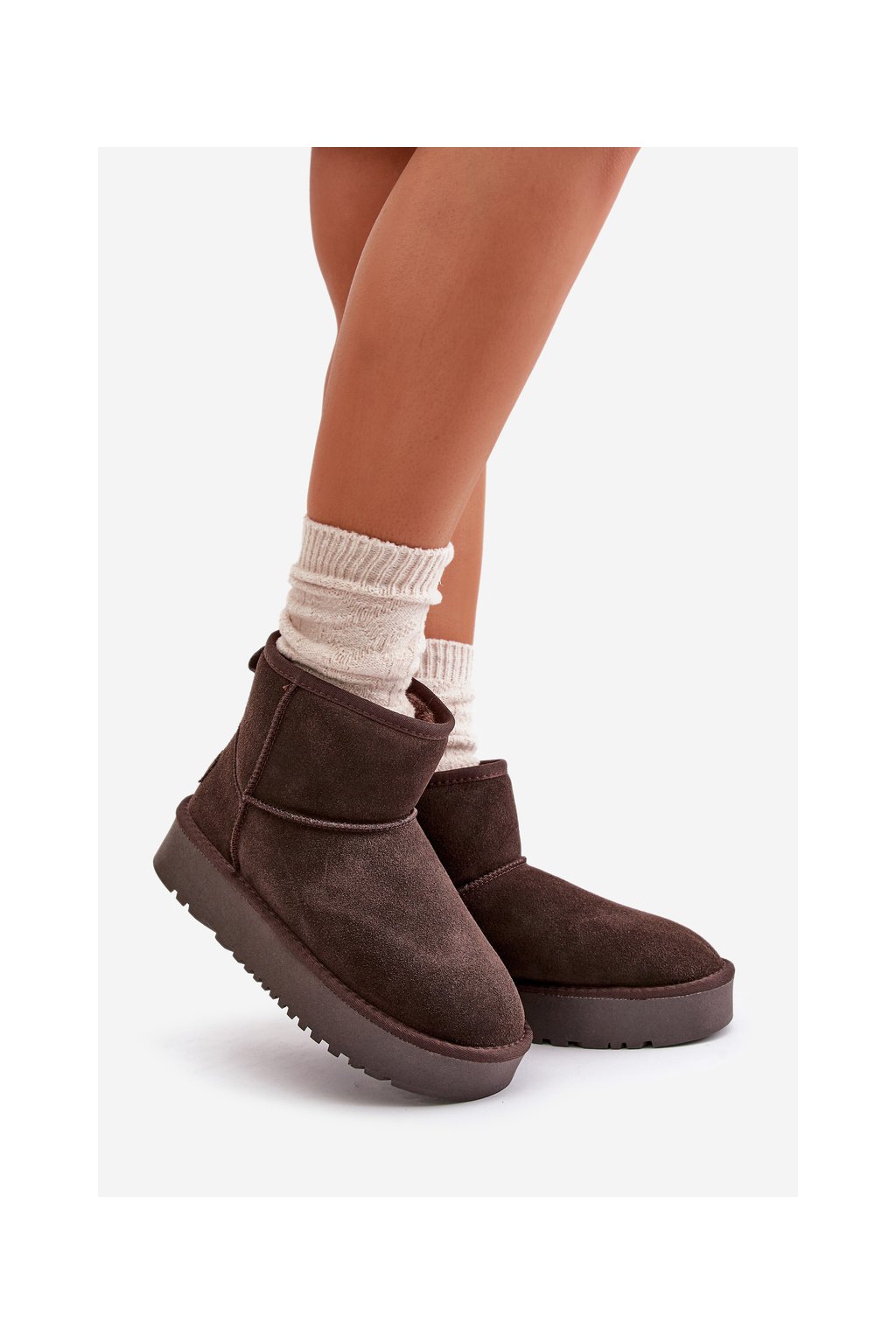 Hnedé dámske semišové snehule s hrubou podrážkou a zateplením NN605 BROWN