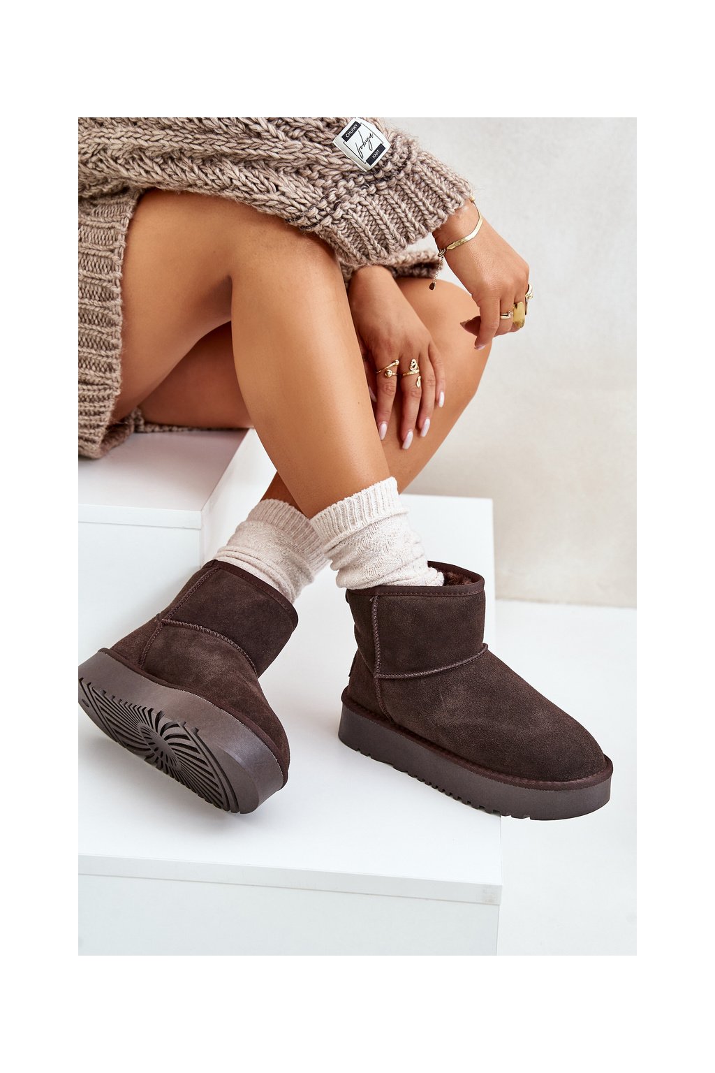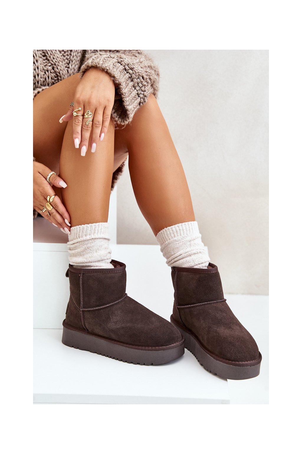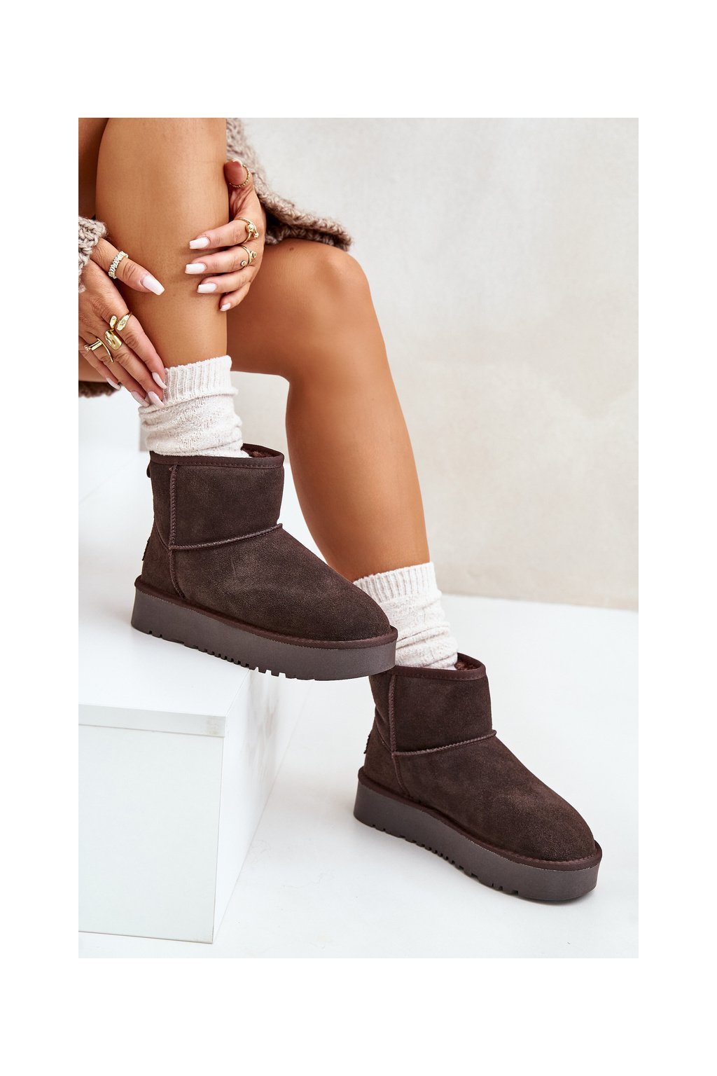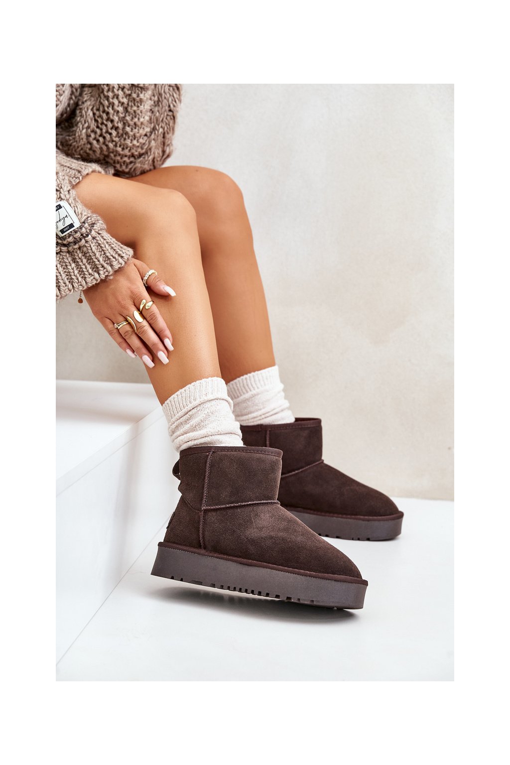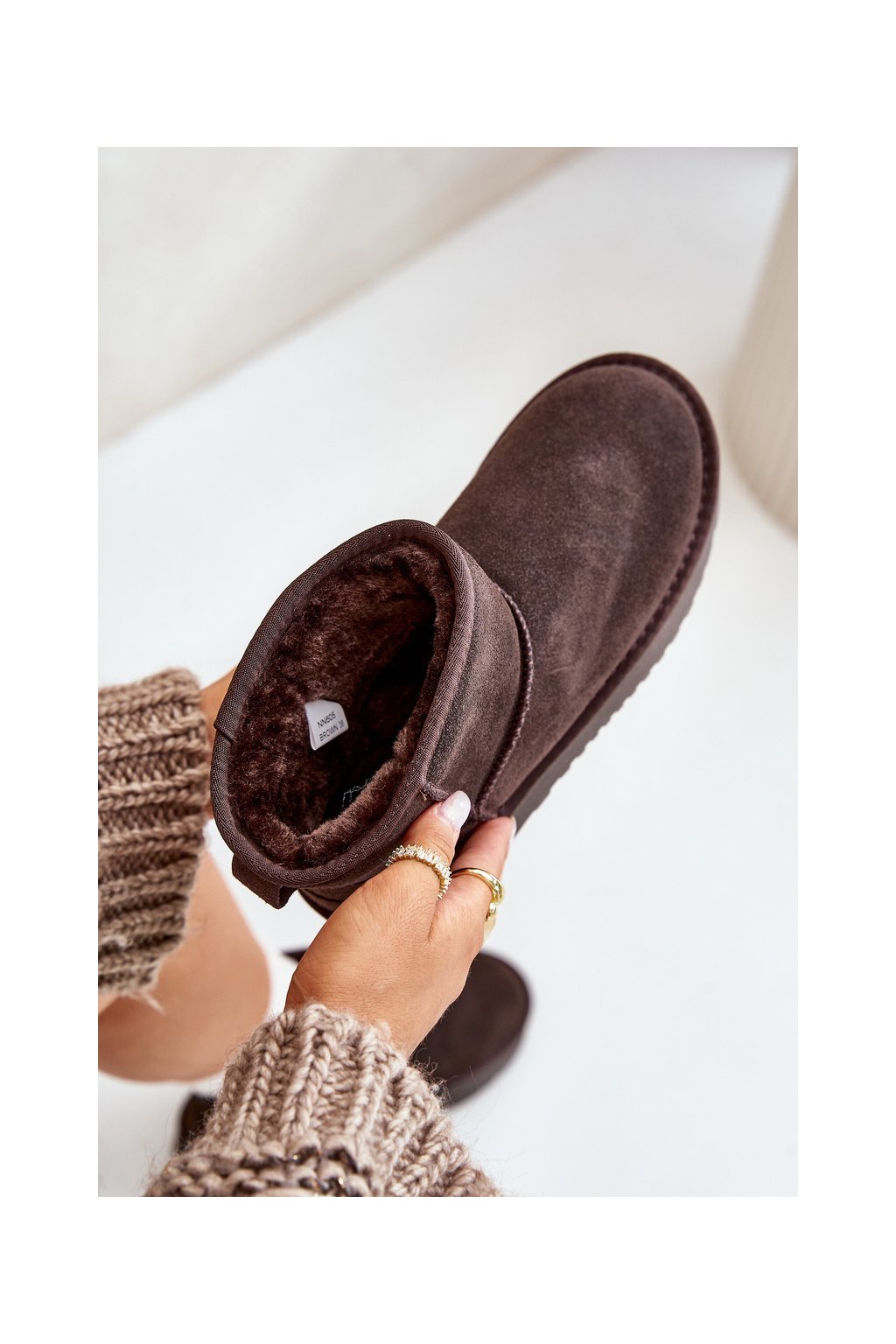 Hnedé dámske semišové snehule s hrubou podrážkou a zateplením NN605 BROWN