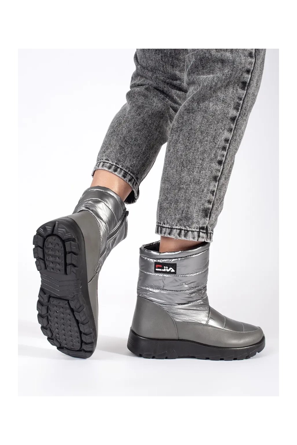 Sivé dámske snehule na platforme s vyberateľnou zateplenou vložkou, Tekstylné, kód produktu JS1-A02GR
