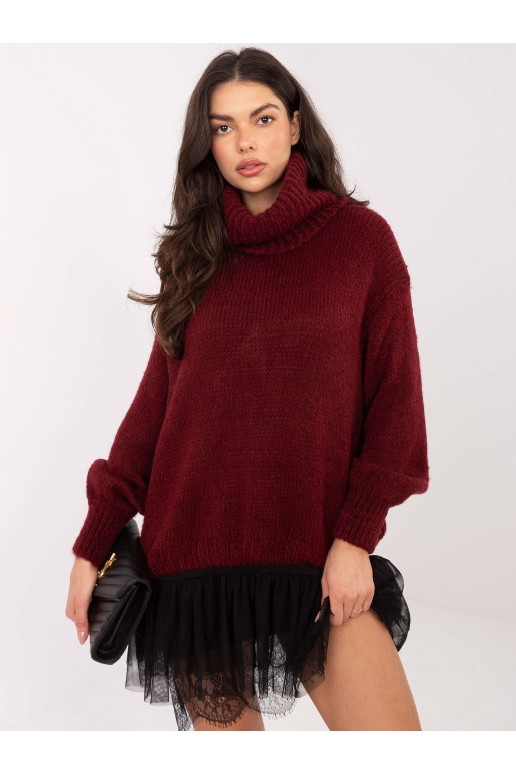 Wymiary swetra w rozmiarze one size: szerokość pod pachami - 64 cm, długość całkowita - 61 cm, długość rękawa - 57 cm (od szwu), szerokość w biodrach - 54 cm.