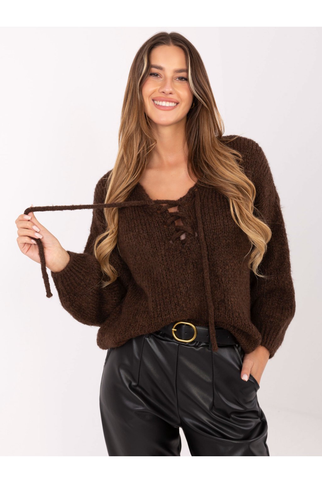 Modelka má na sebe veľkosť one size.