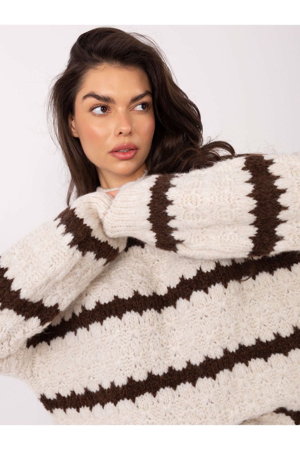 Wymiary swetra w rozmiarze one size mierzone na płasko: szerokość pod pachami - 65 cm, szerokość w biodrach - 52 cm, długość rękawa - 48 cm (od szwu), długość całkowita - 60 cm.