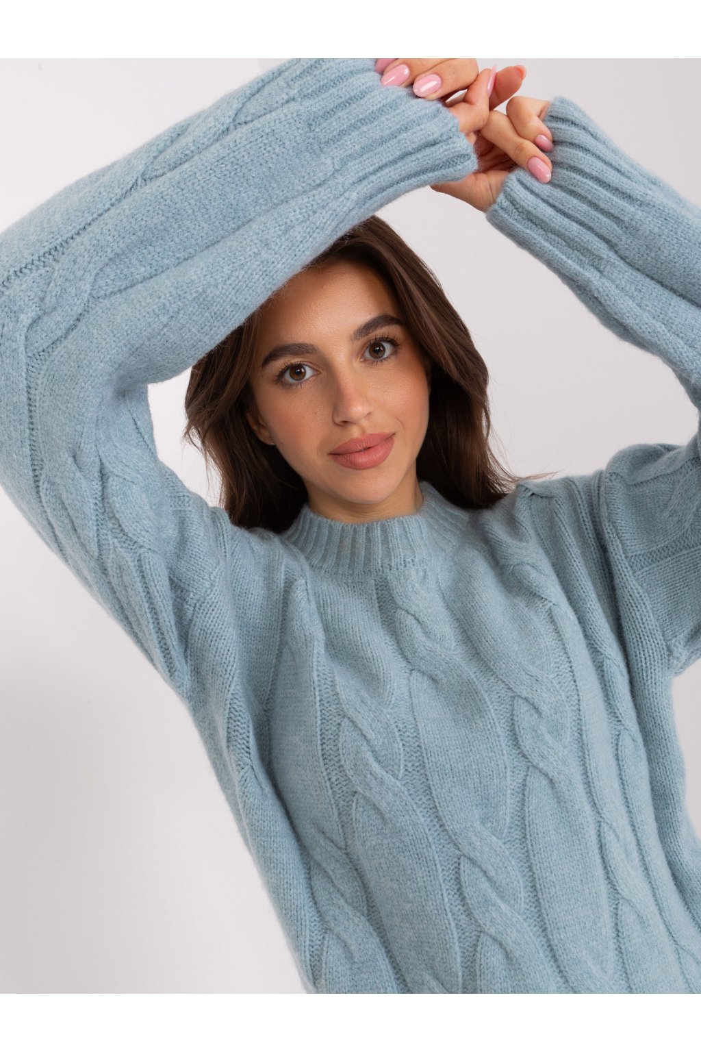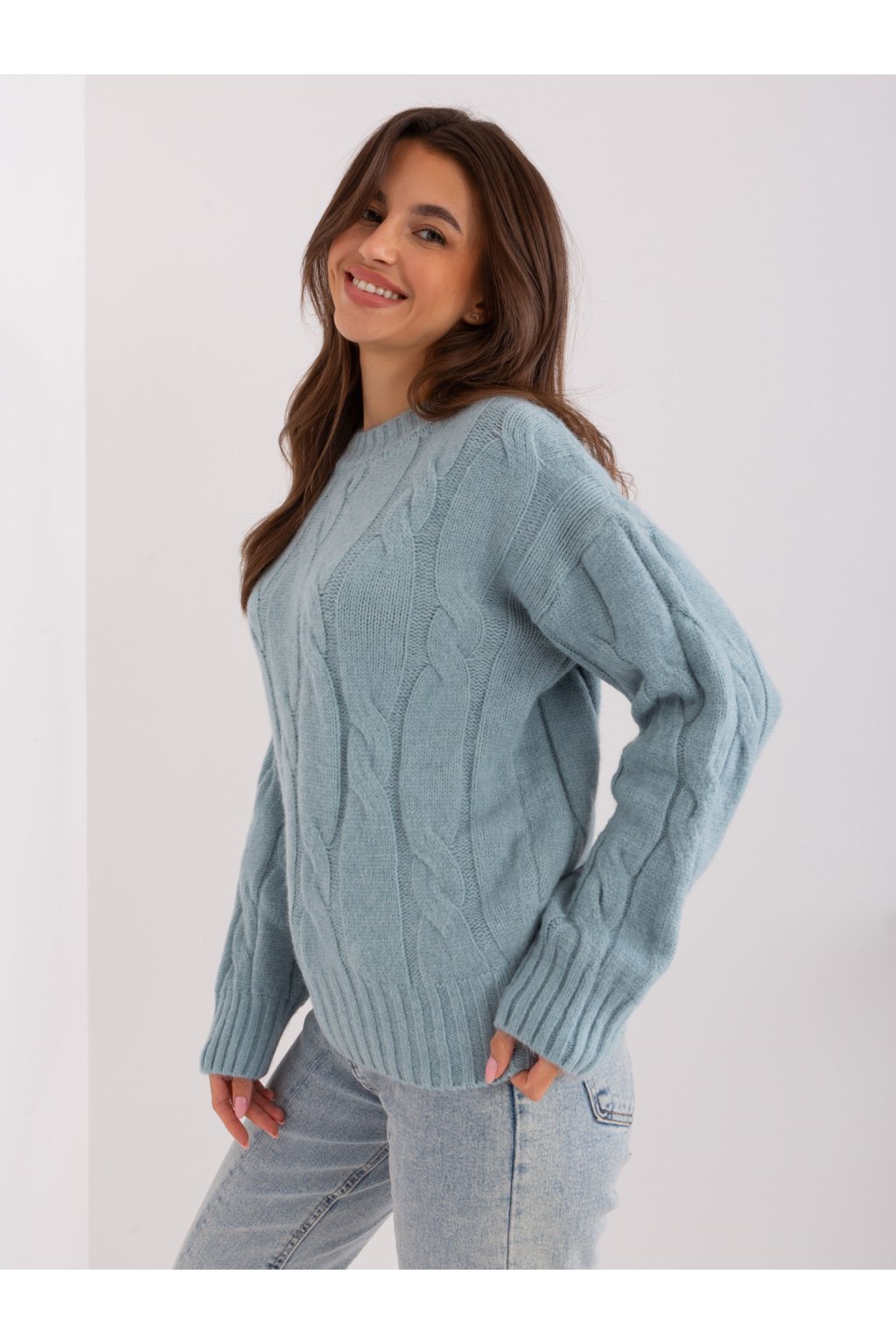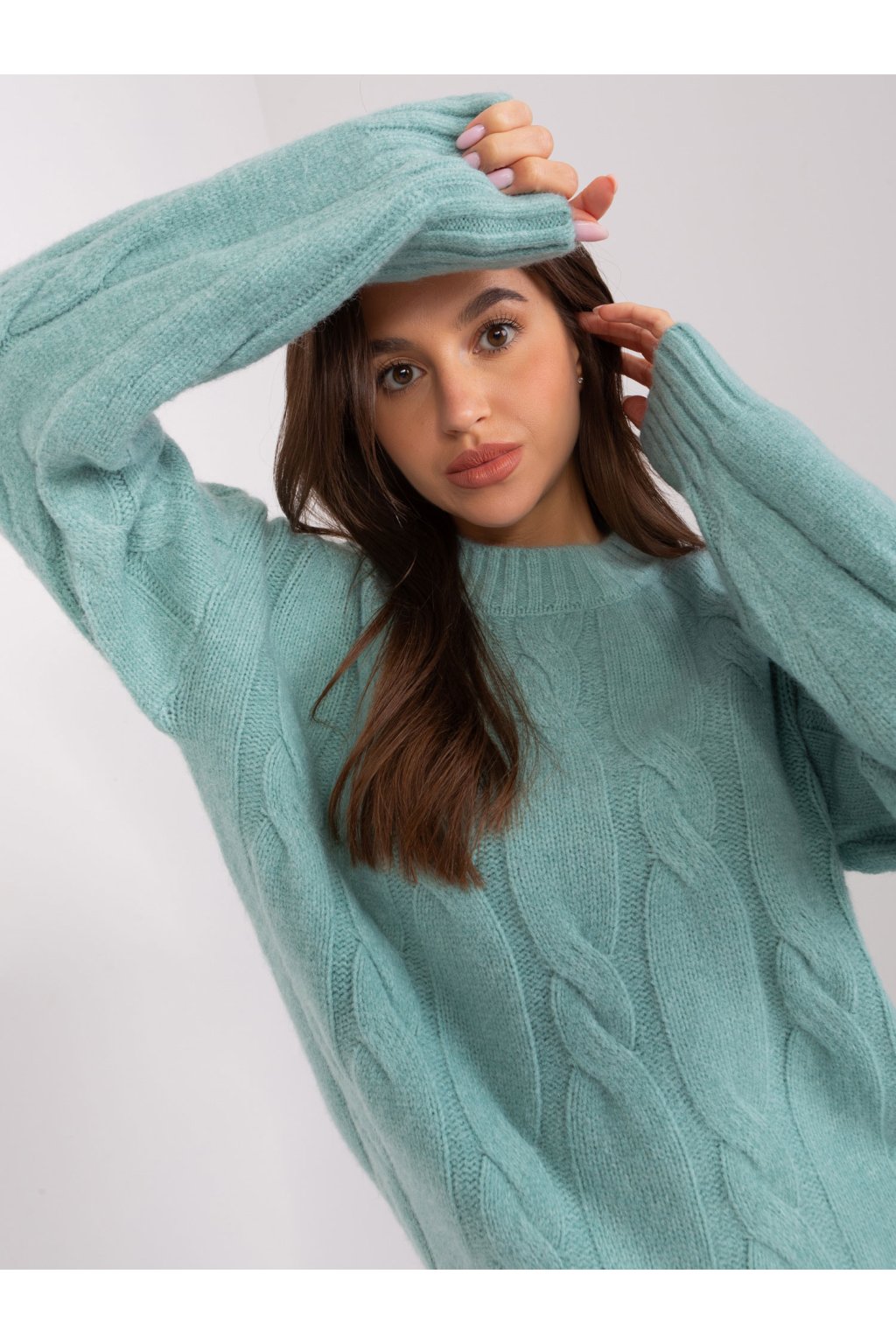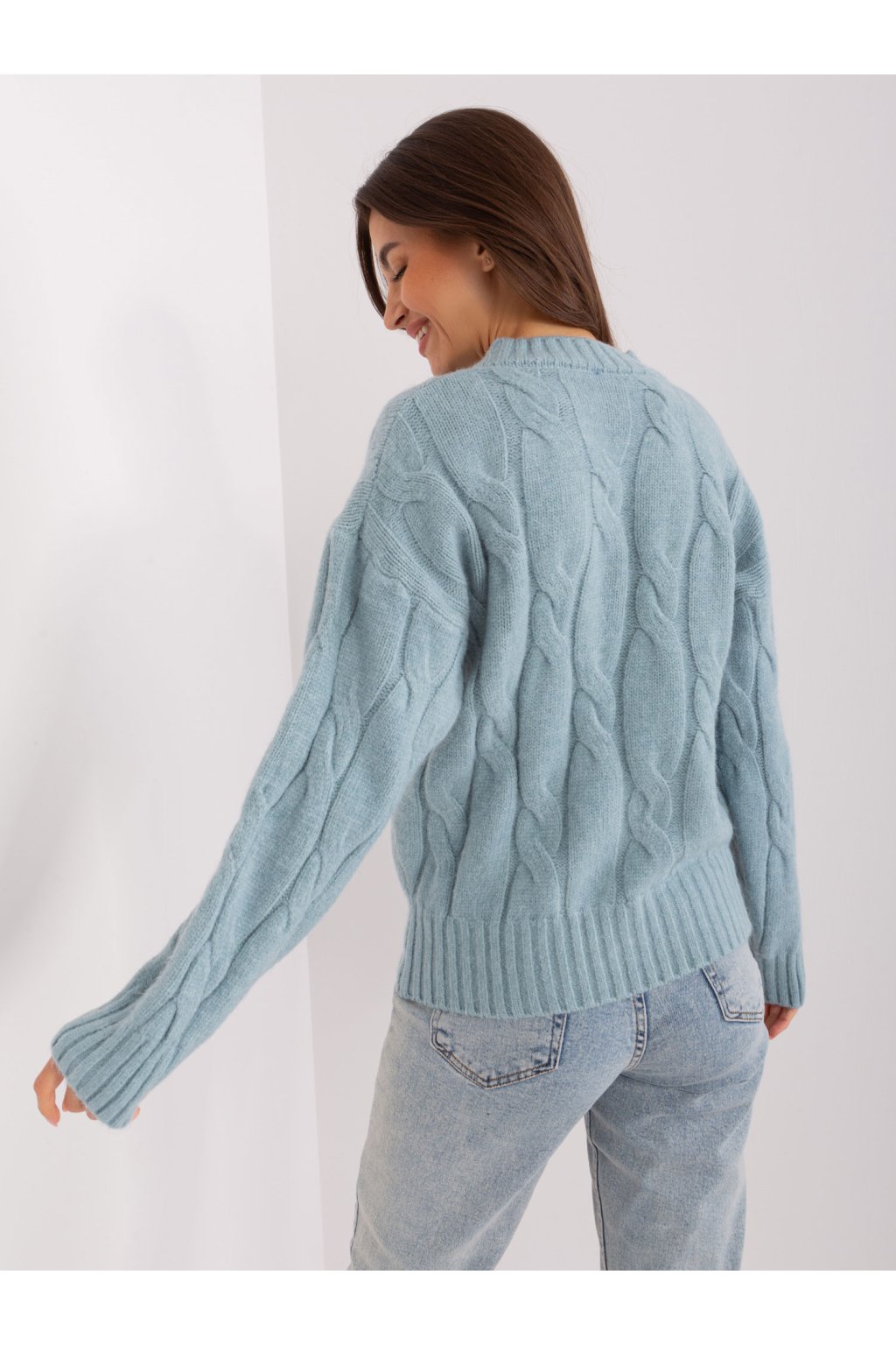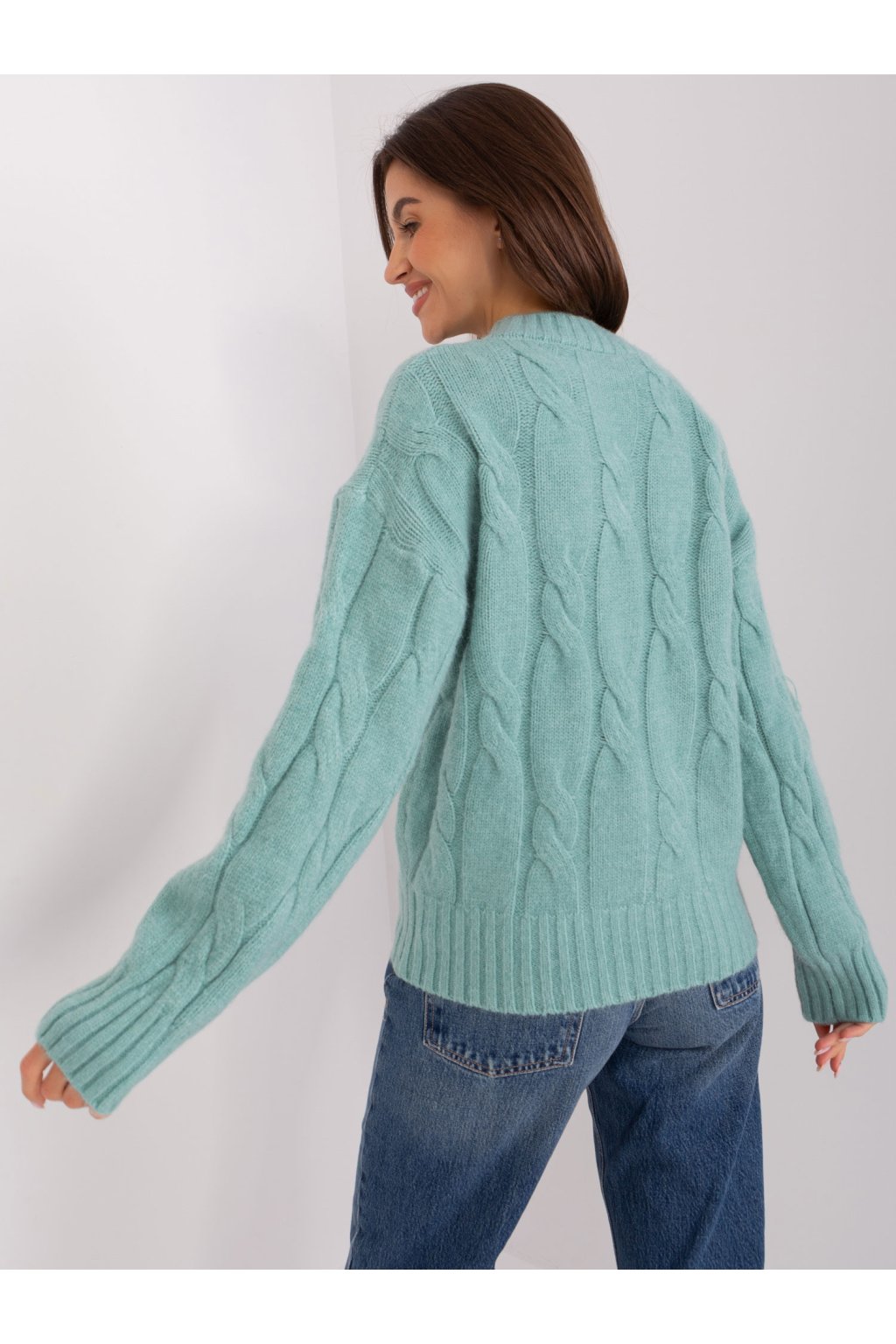 Rozmery svetra v jednej veľkosti merané na plocho: šírka v podpazuší - 65 cm, dĺžka rukáva - 64 cm, celková dĺžka - 55 cm