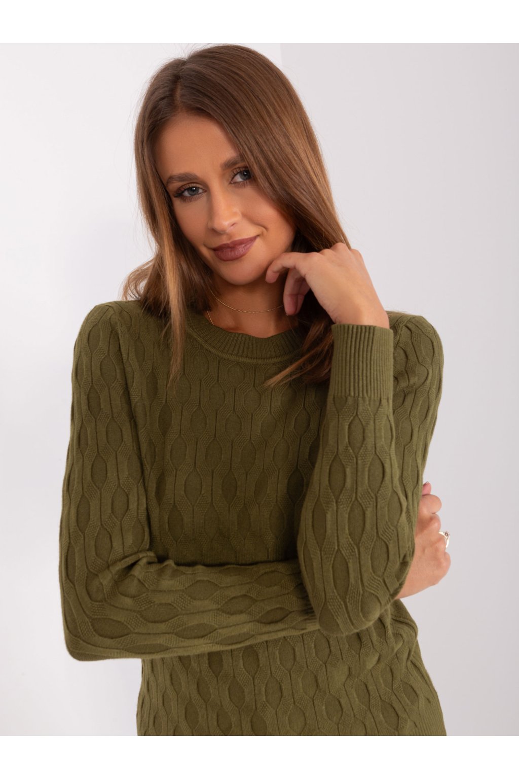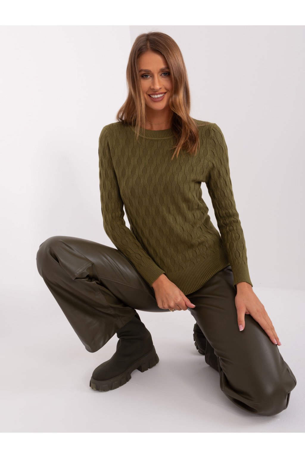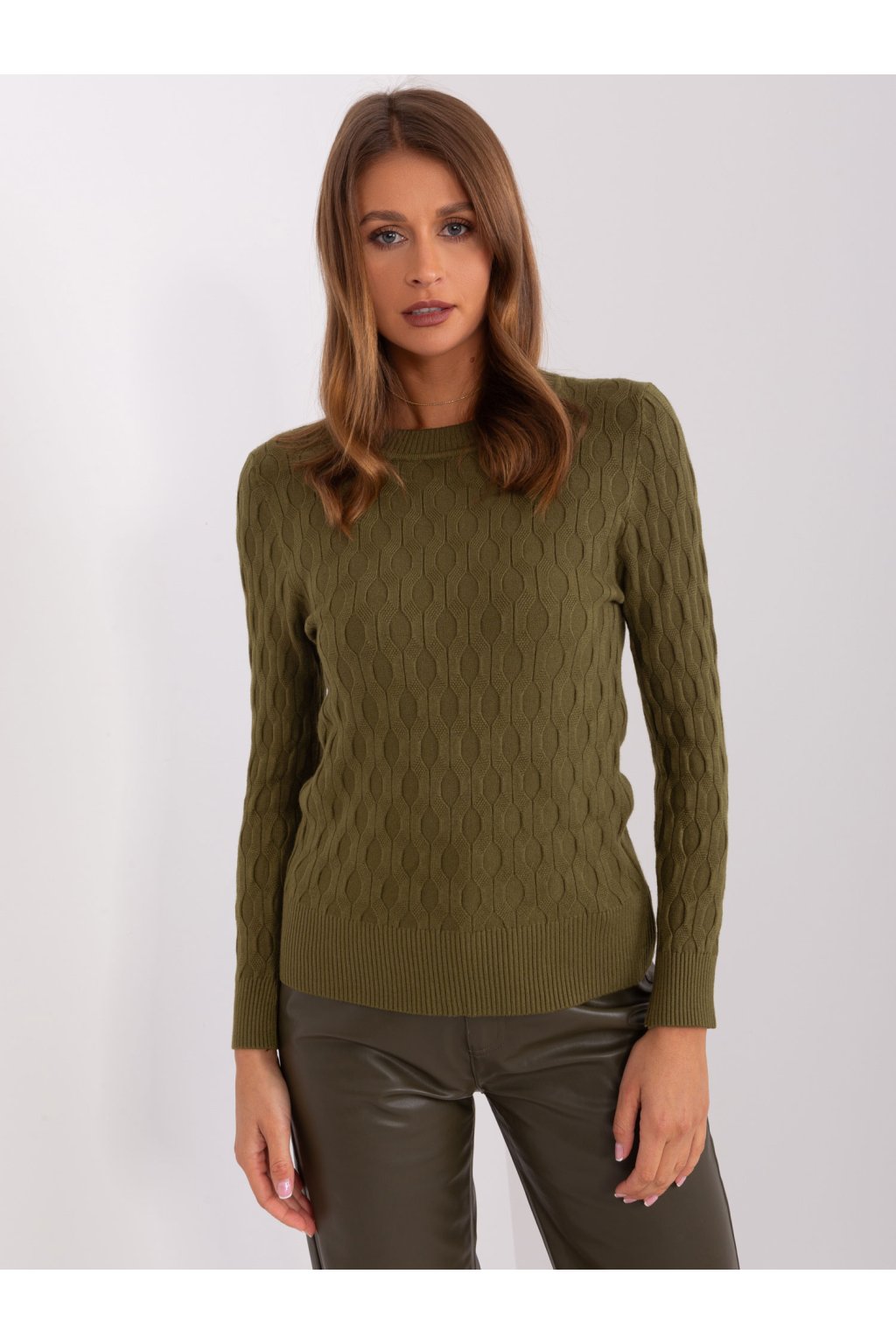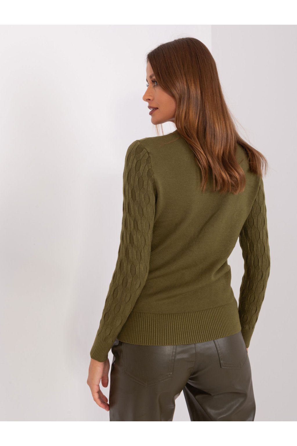 Klasický sveter v khaki farbe s dlhými rukávmi.