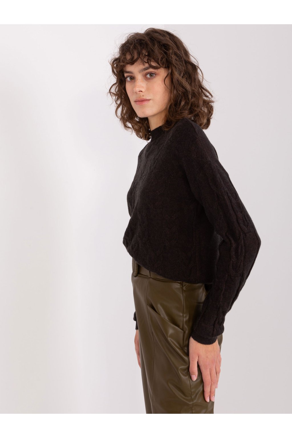 Čierny dámsky kockovaný sveter s dlhým rukávom.