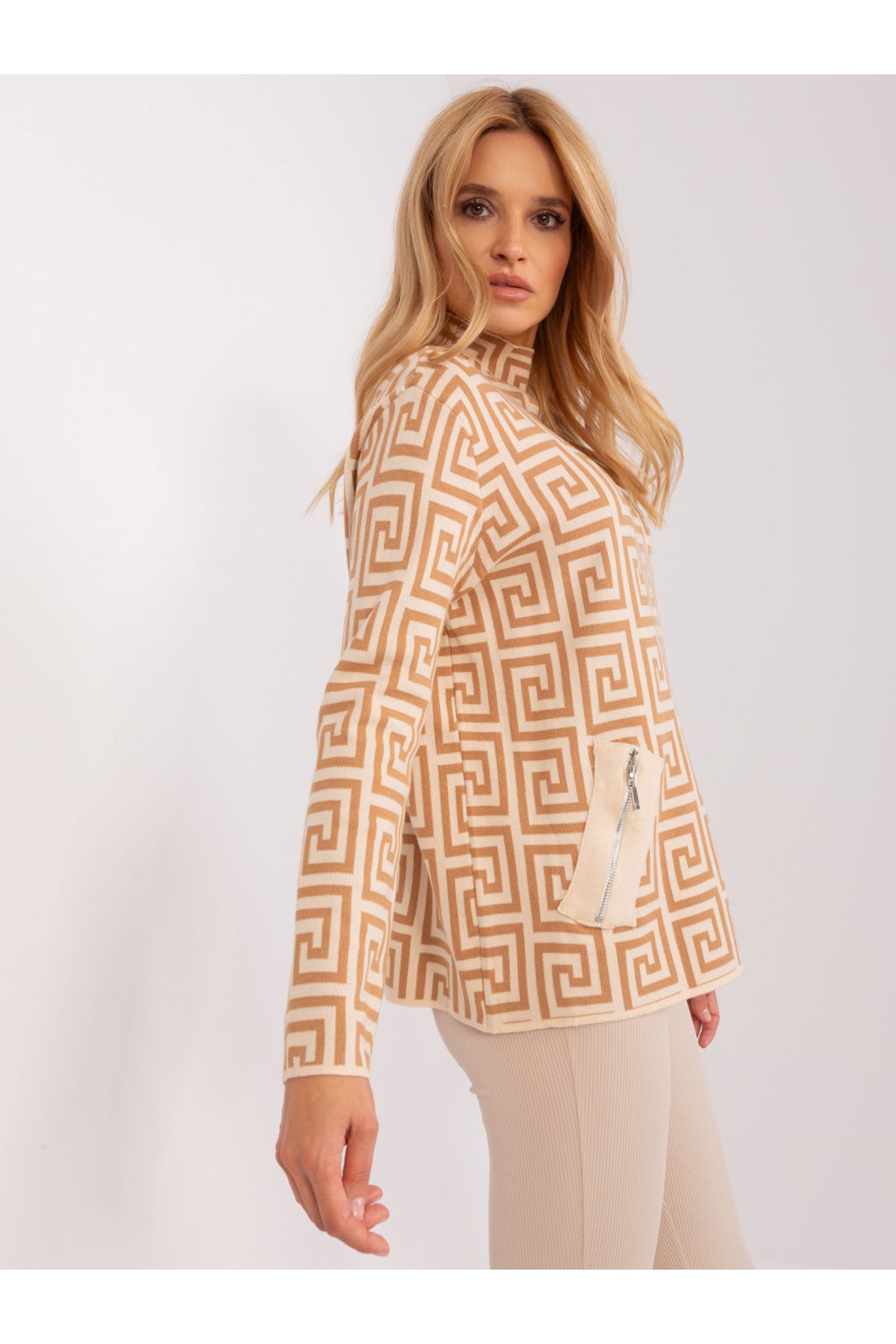 Polovičný svetrík s rolákom v béžovej a ťavej farbe.