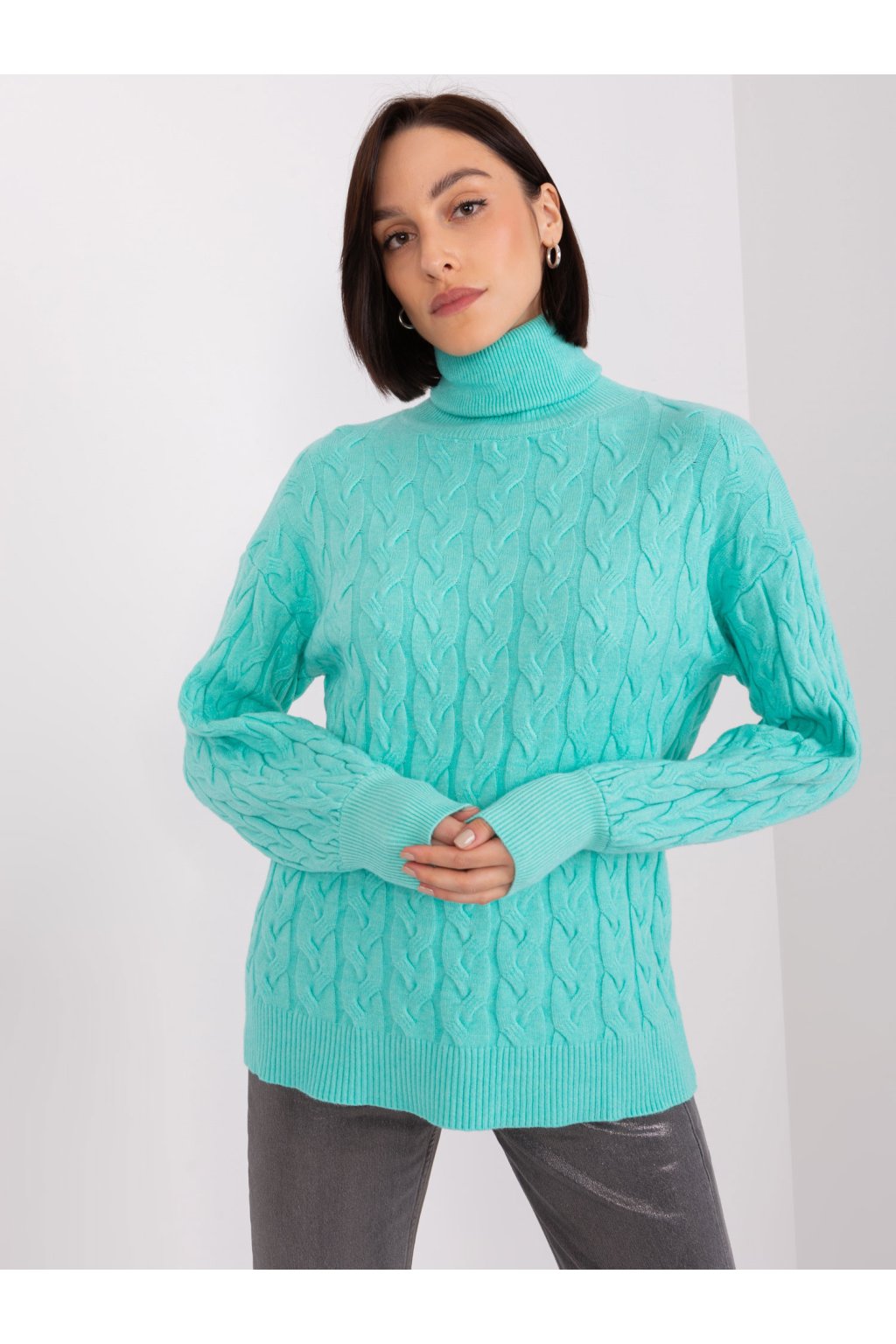 Mätový rolákový sveter z mäkkej pleteniny.