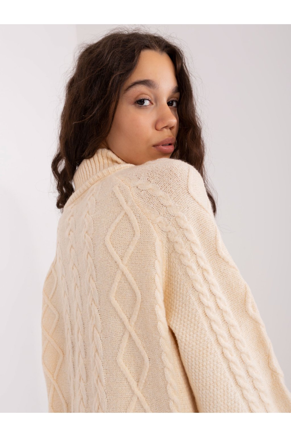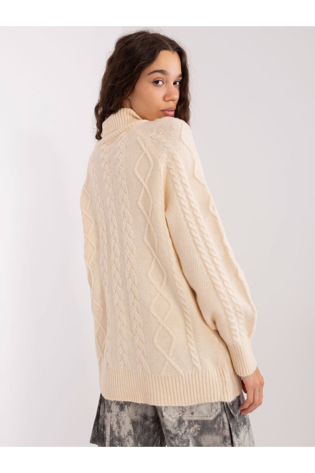 Svetlý béžový sveter s plédmi v oversize strihu .