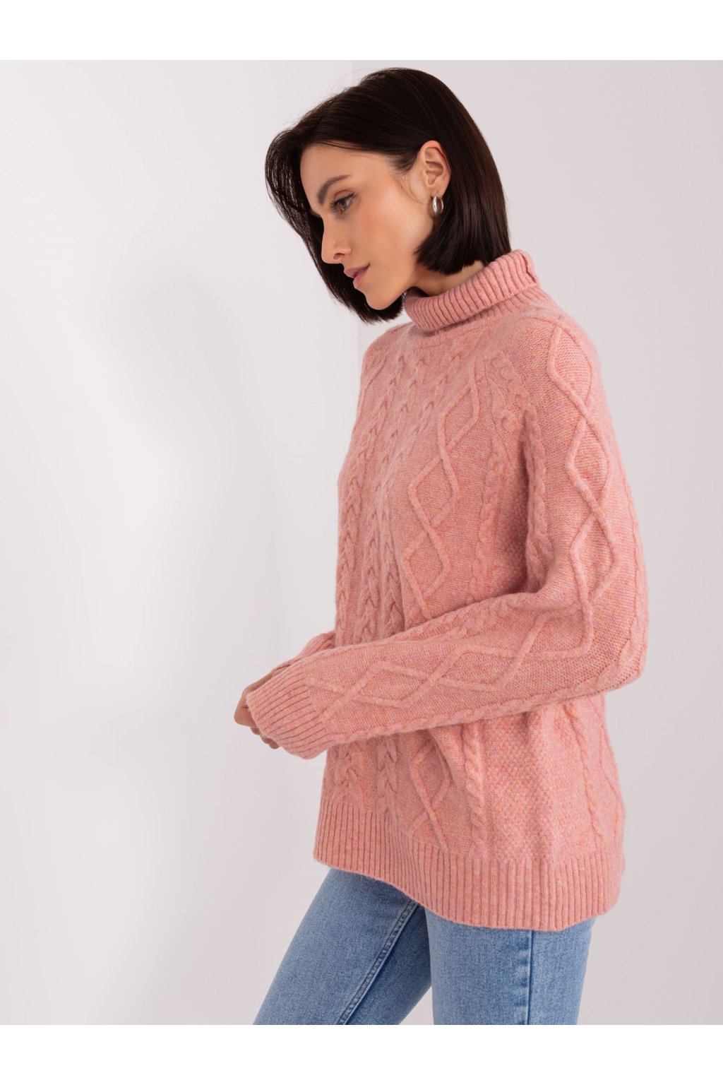 Dámsky špinavo ružový kockovaný sveter .