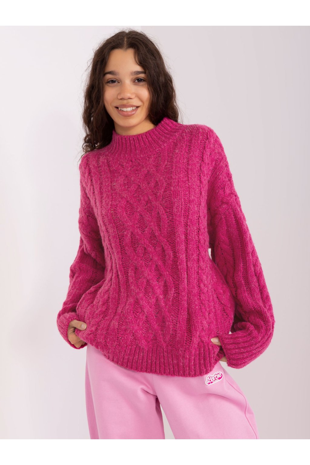 Fuksiový sveter s plédmi a rebrovaným .