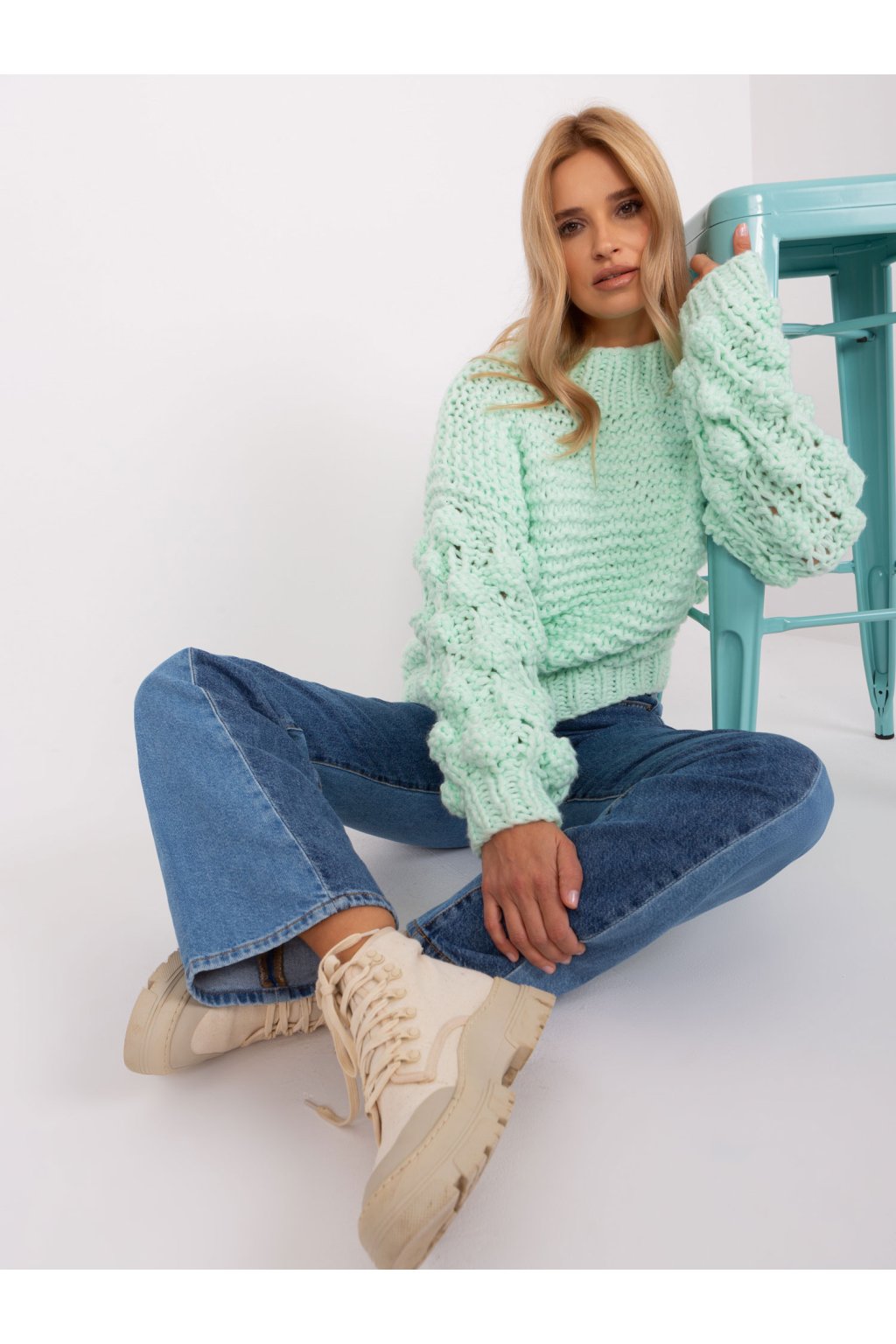 Mätový oversize sveter s hustou väzbou .