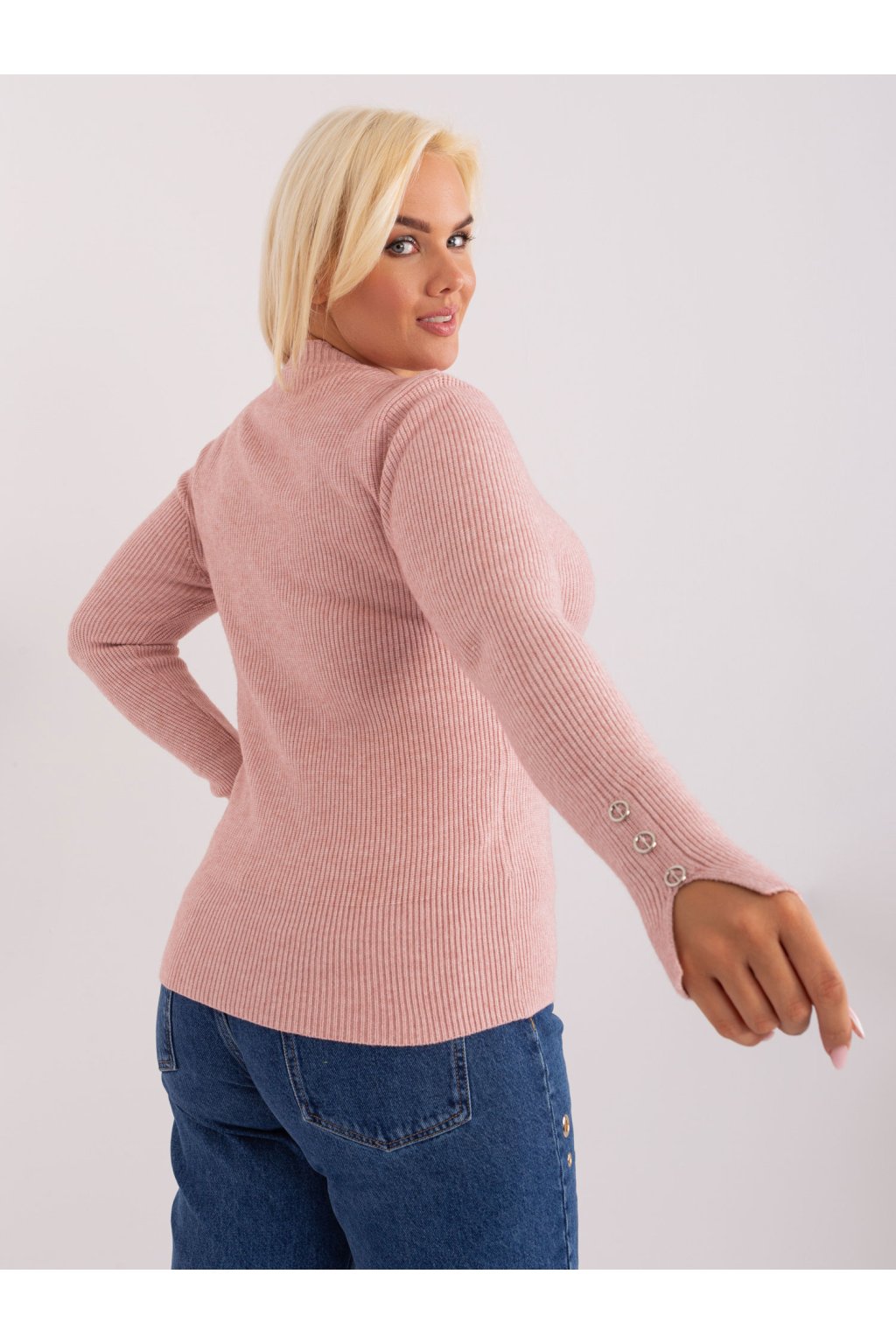 Svetloružový dámsky plus size sveter s viskózou .
