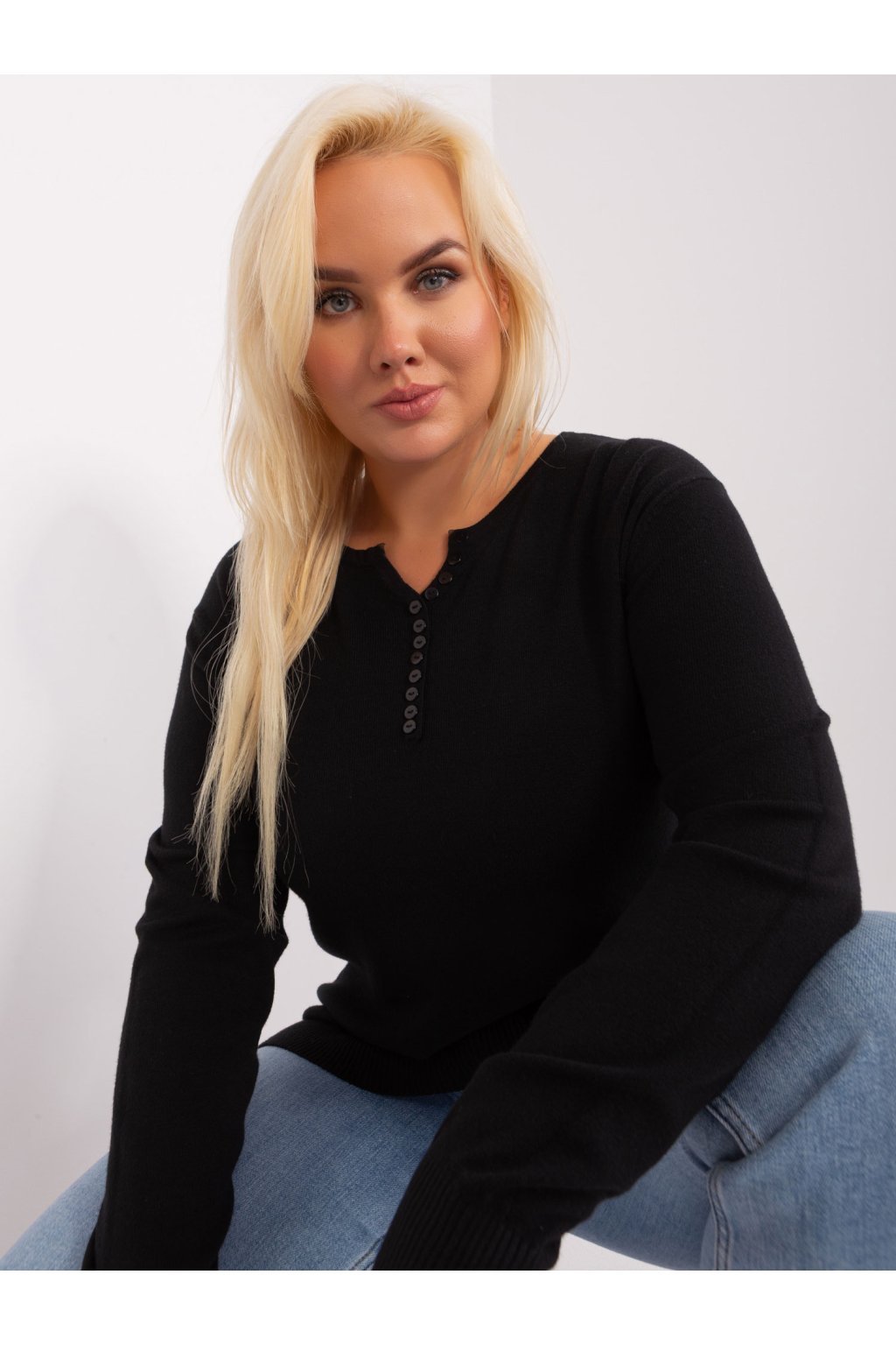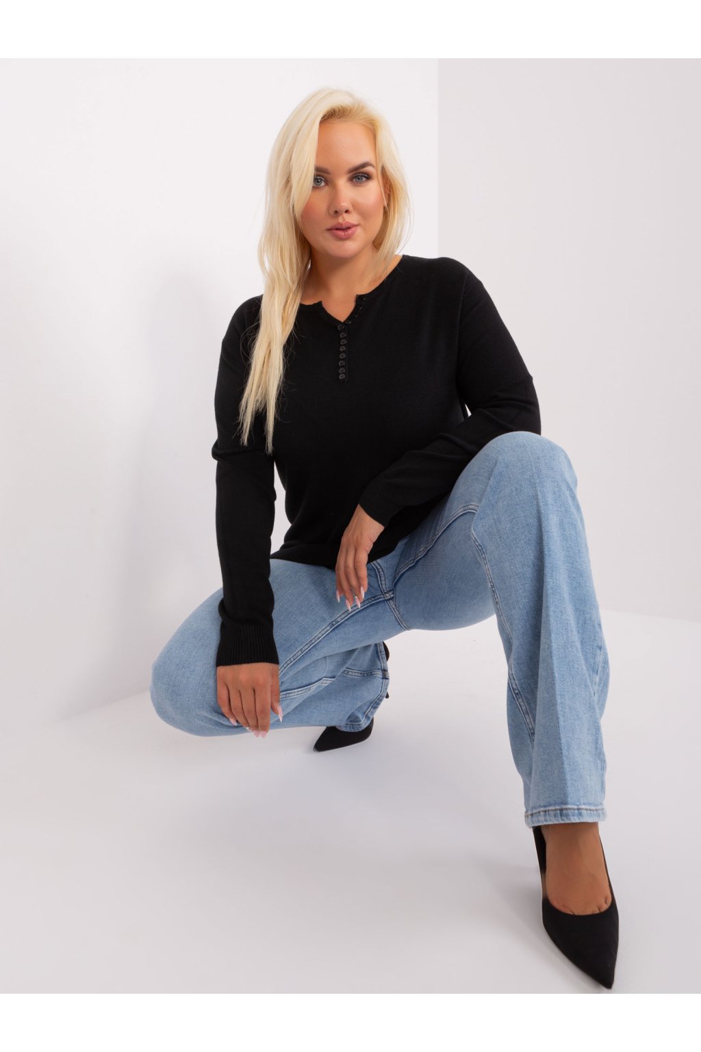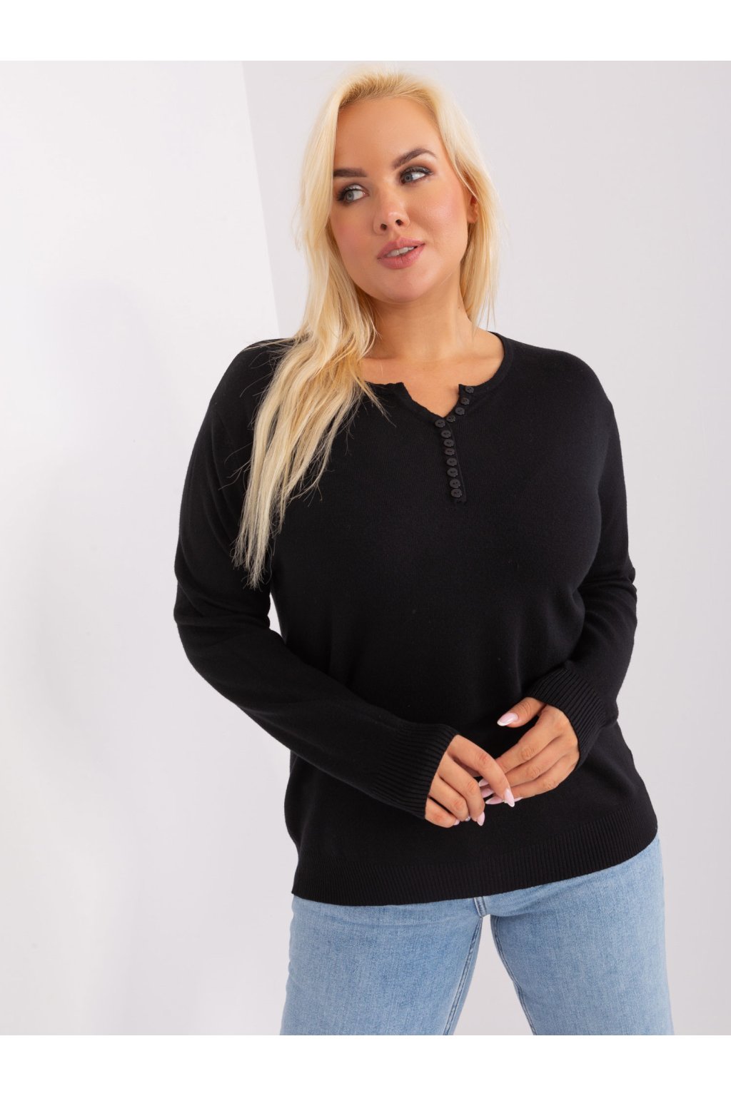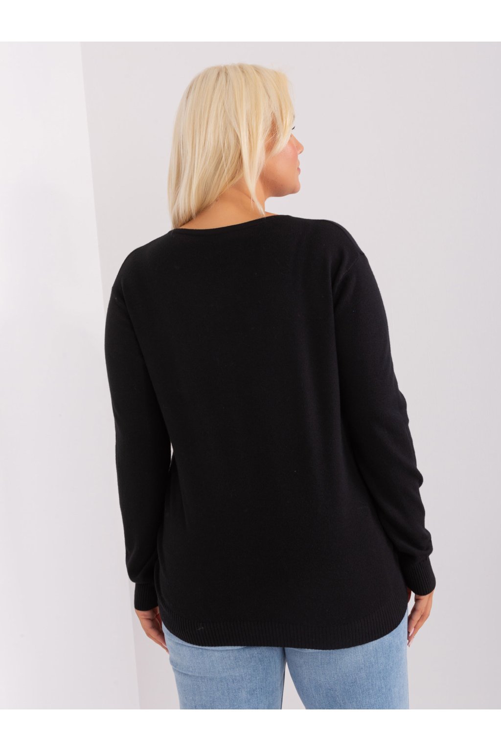 Čierny dámsky plus size sveter s viskózou .