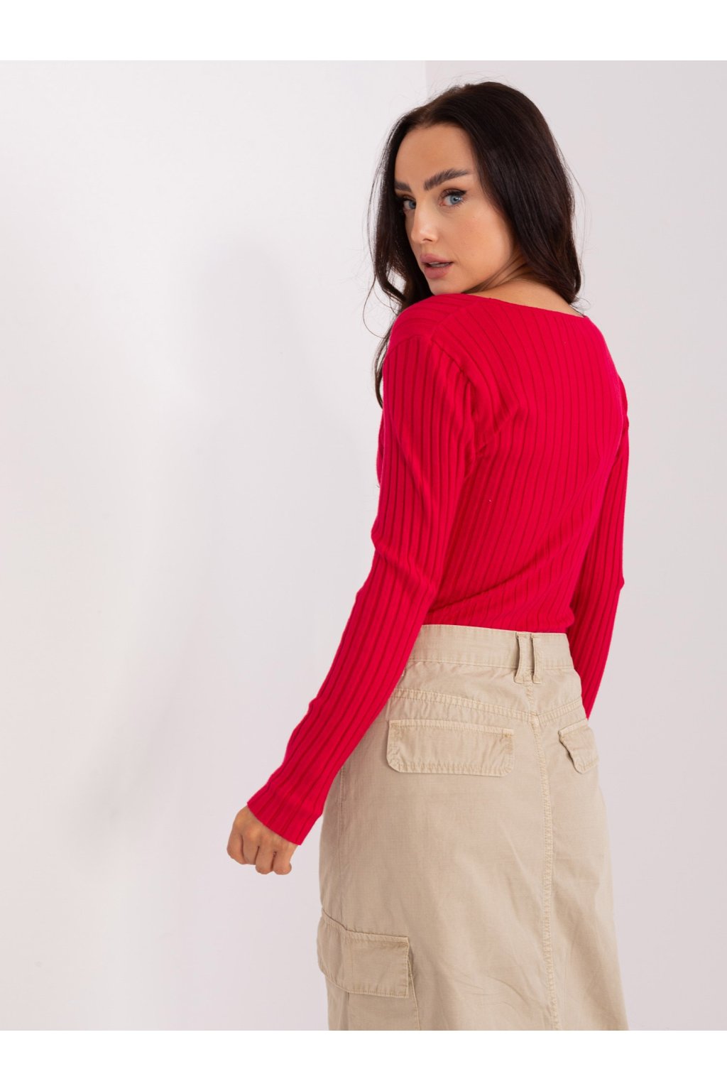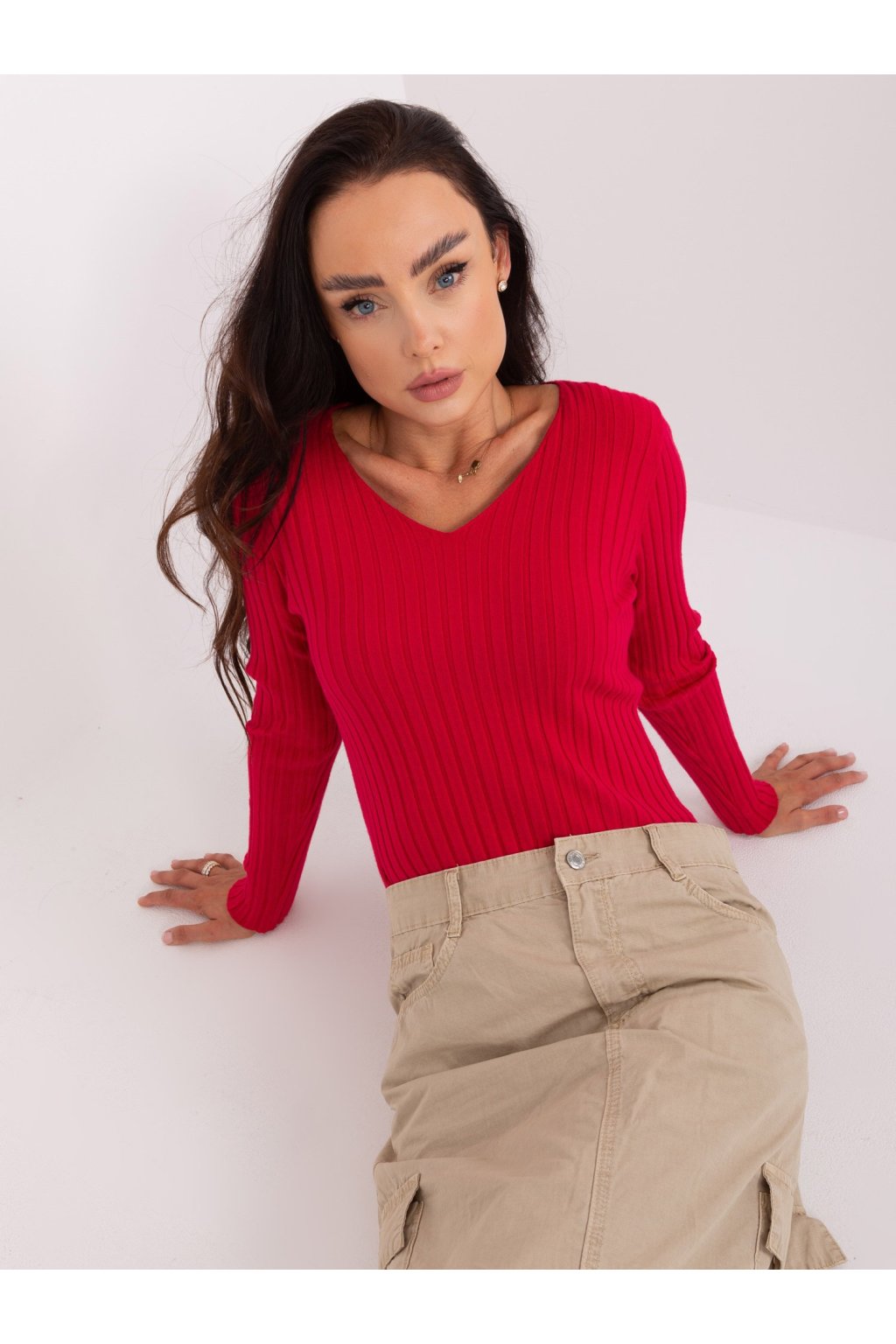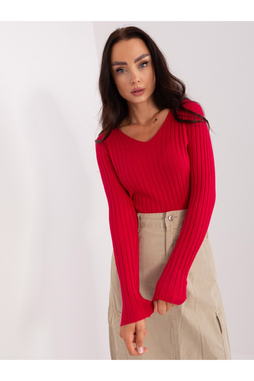 Červený klasický rebrovaný sveter.
