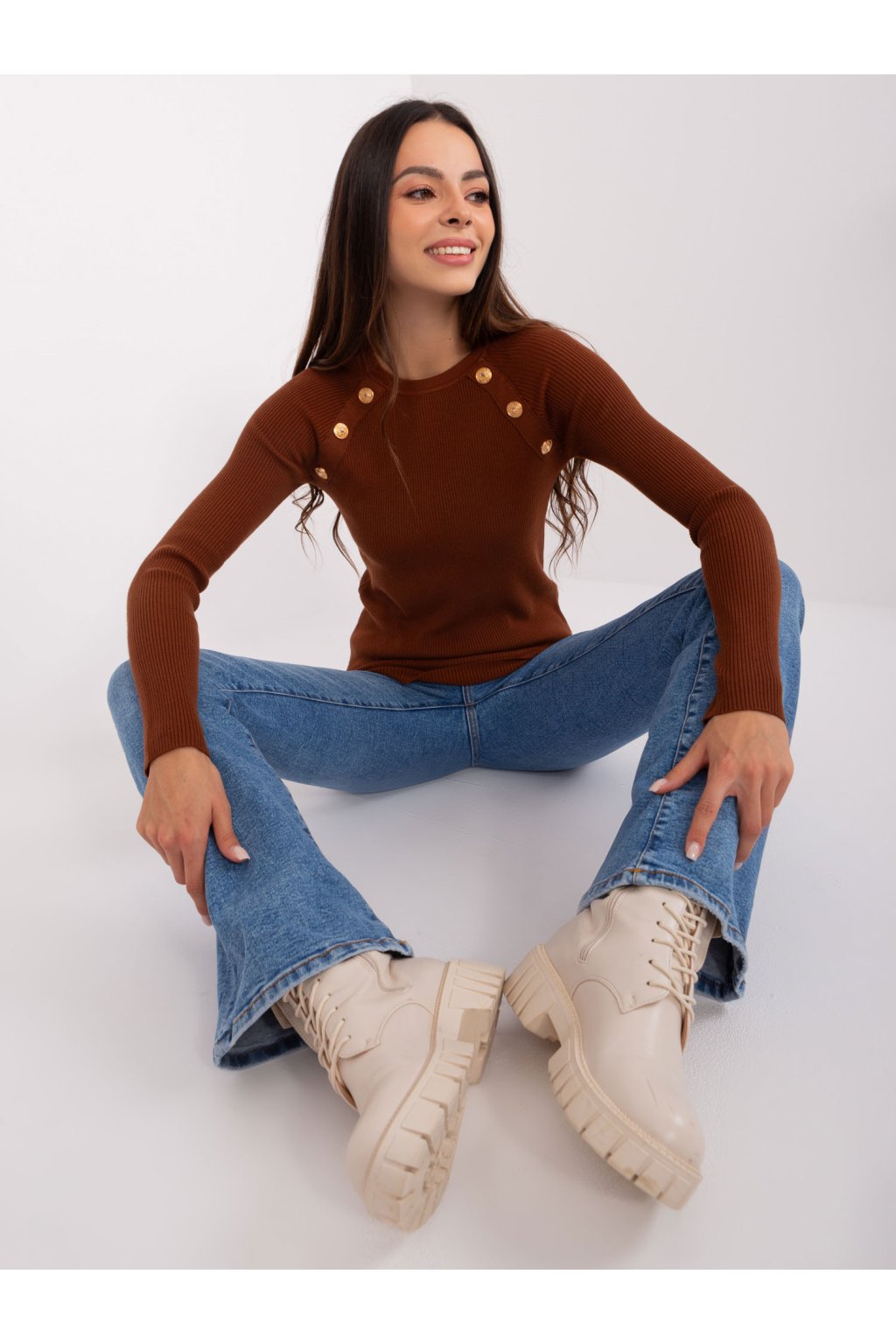 Dámsky sveter farba Tmavo-hnedá kód PM-SW-PM9750.08P